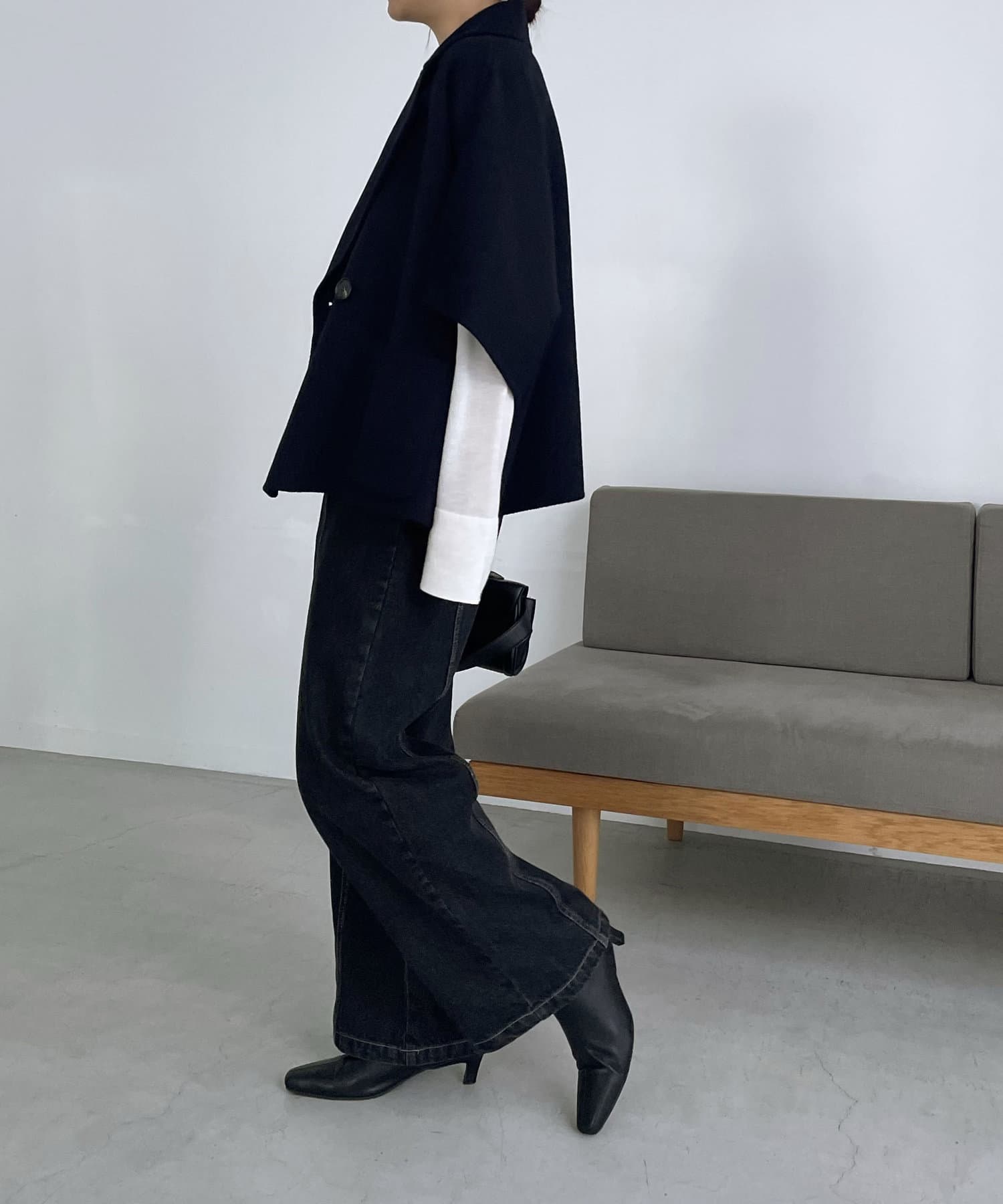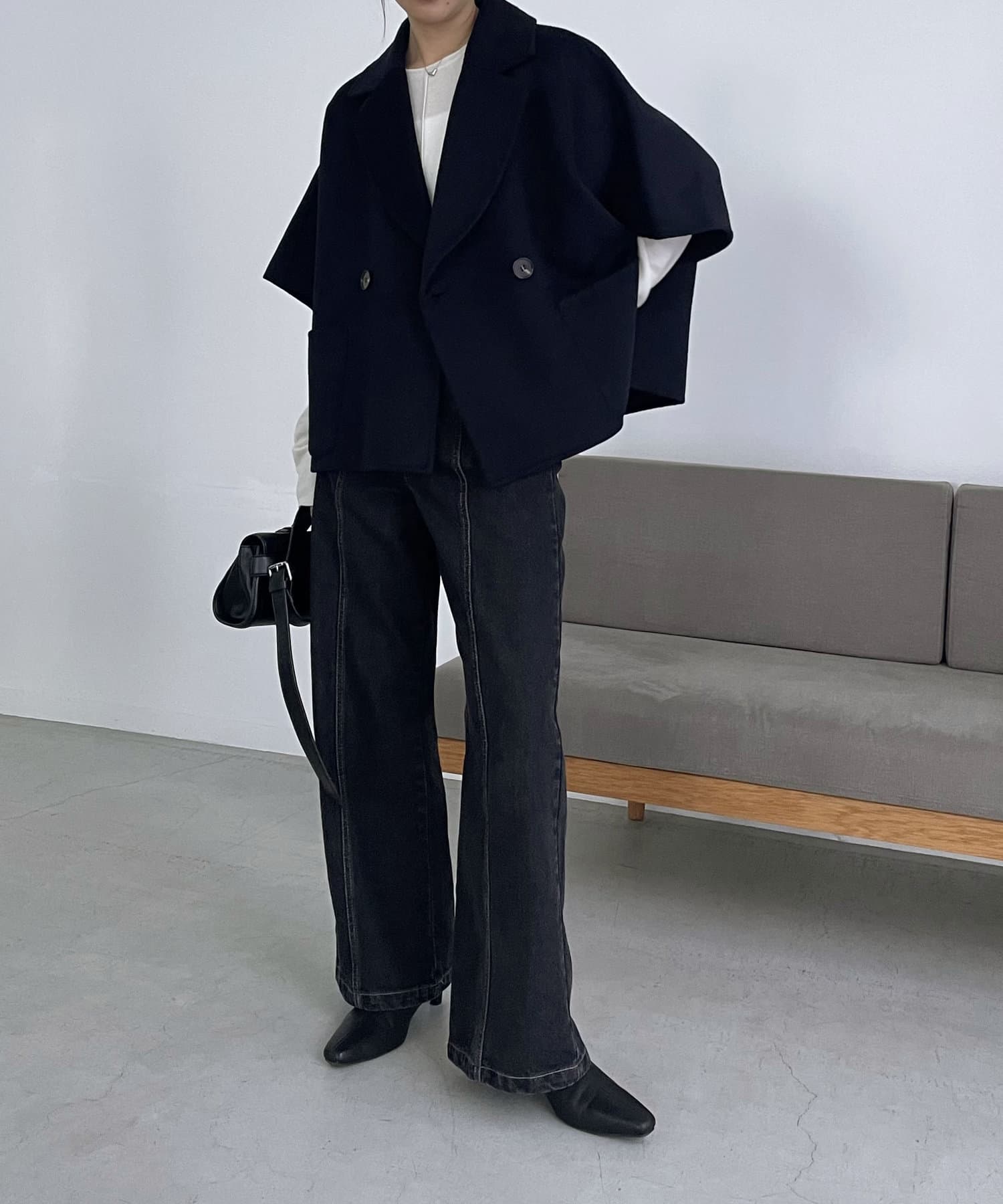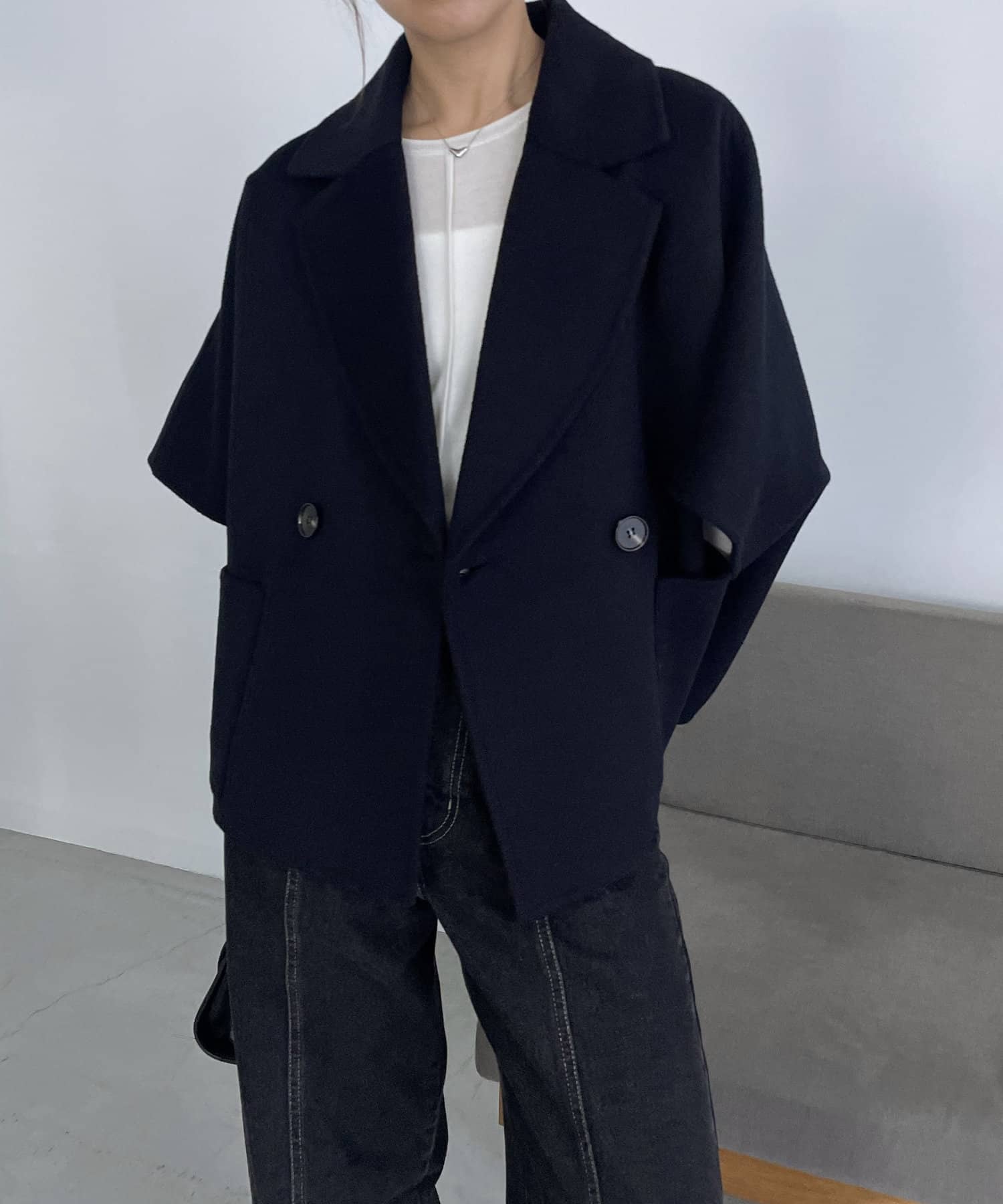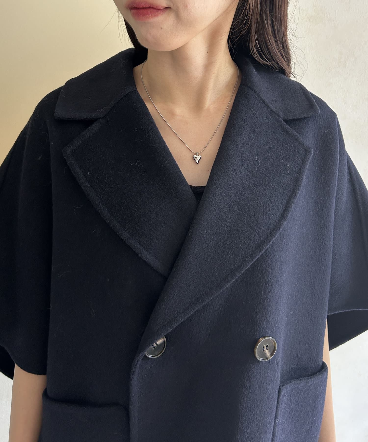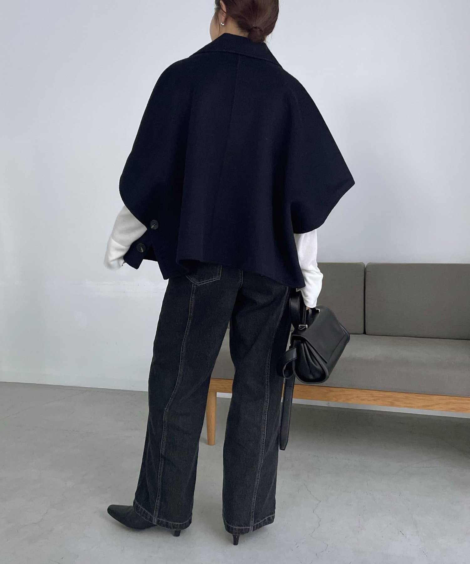ダブルフェイス生地を使用したケープ型ジャケット