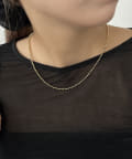 細く華奢なボールチェーンネックレスとネックカフの2本セットデザイン。