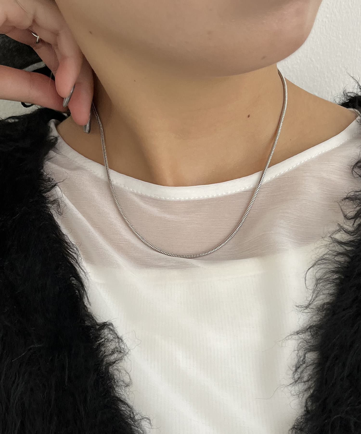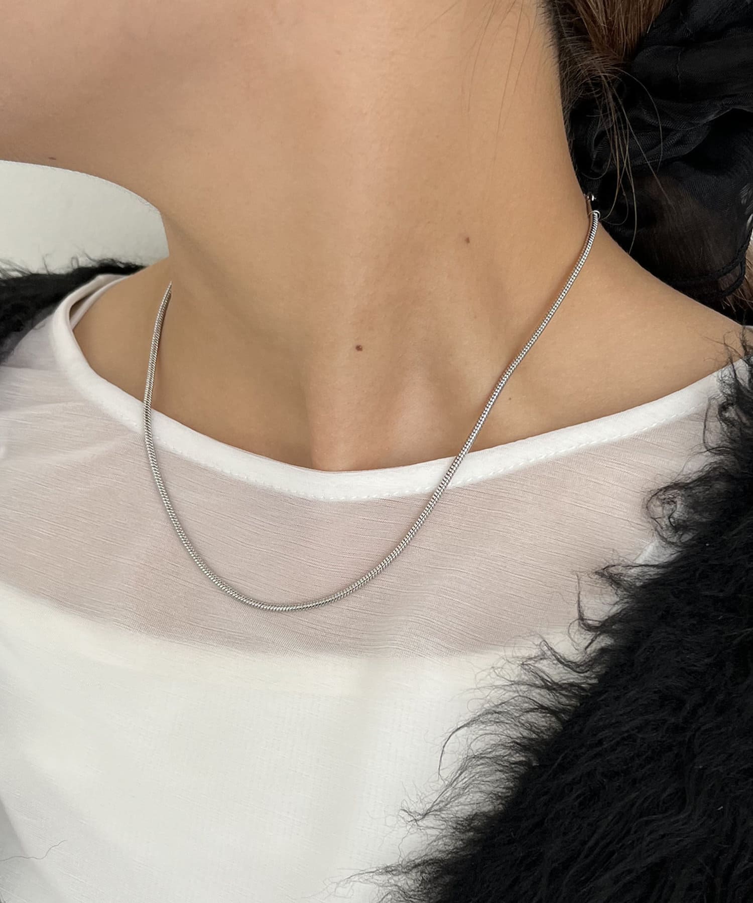 シンプルでどんなスタイルにも馴染むスネークチェーンネックレス