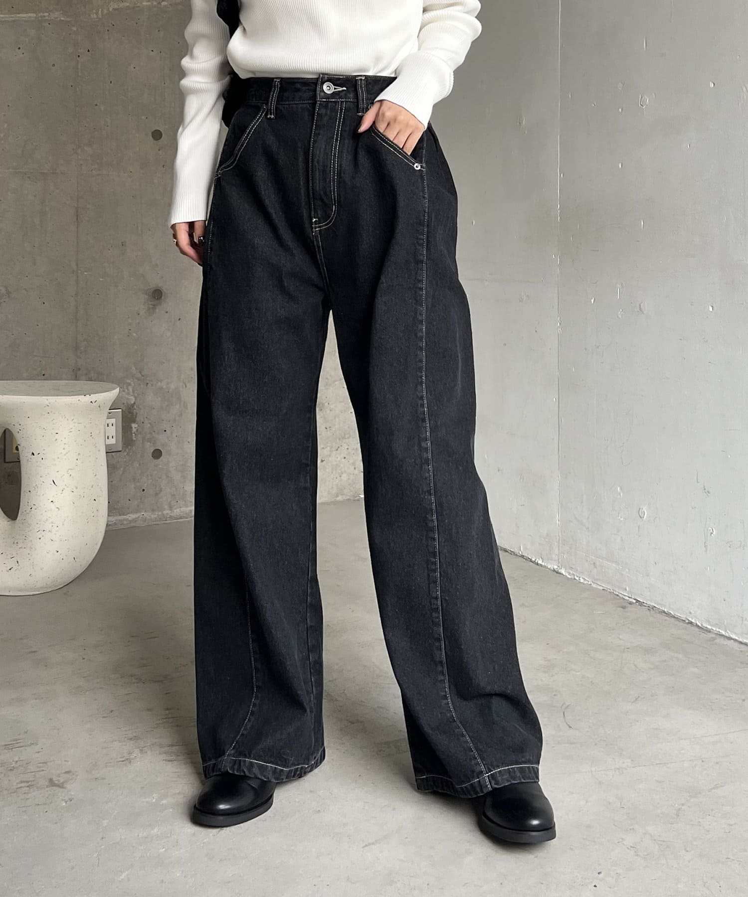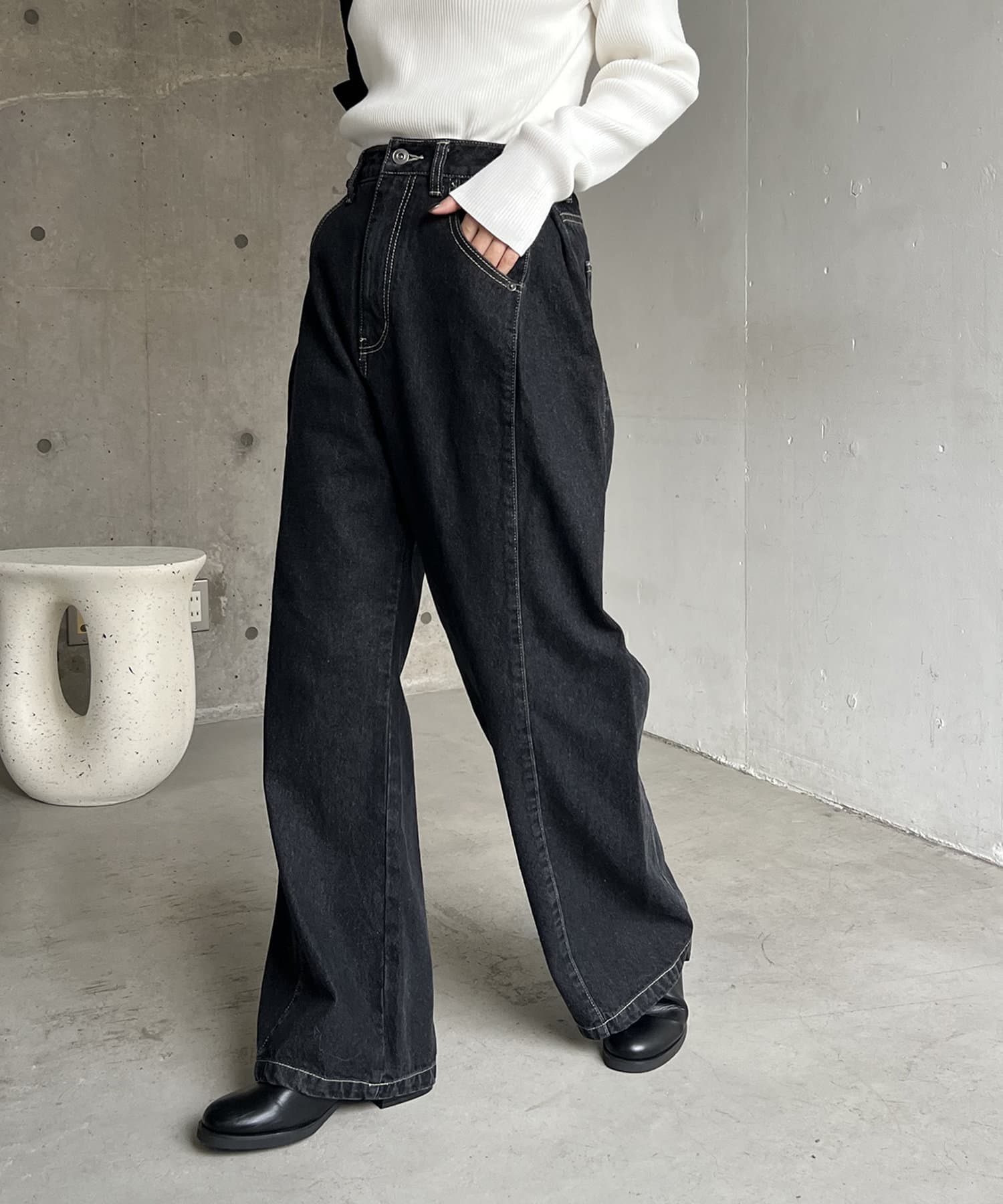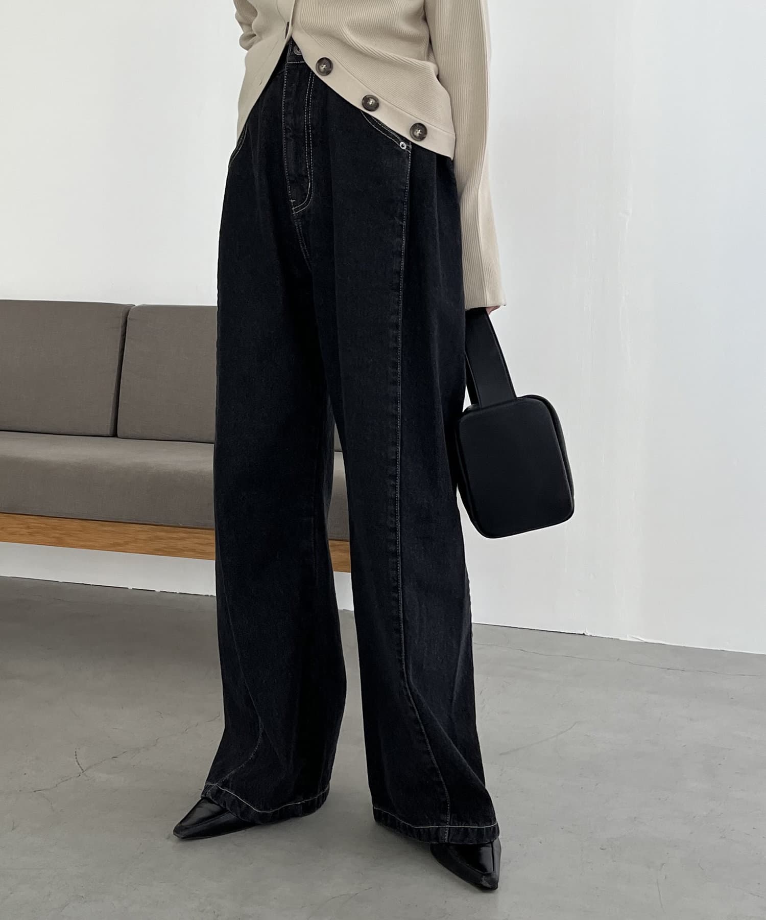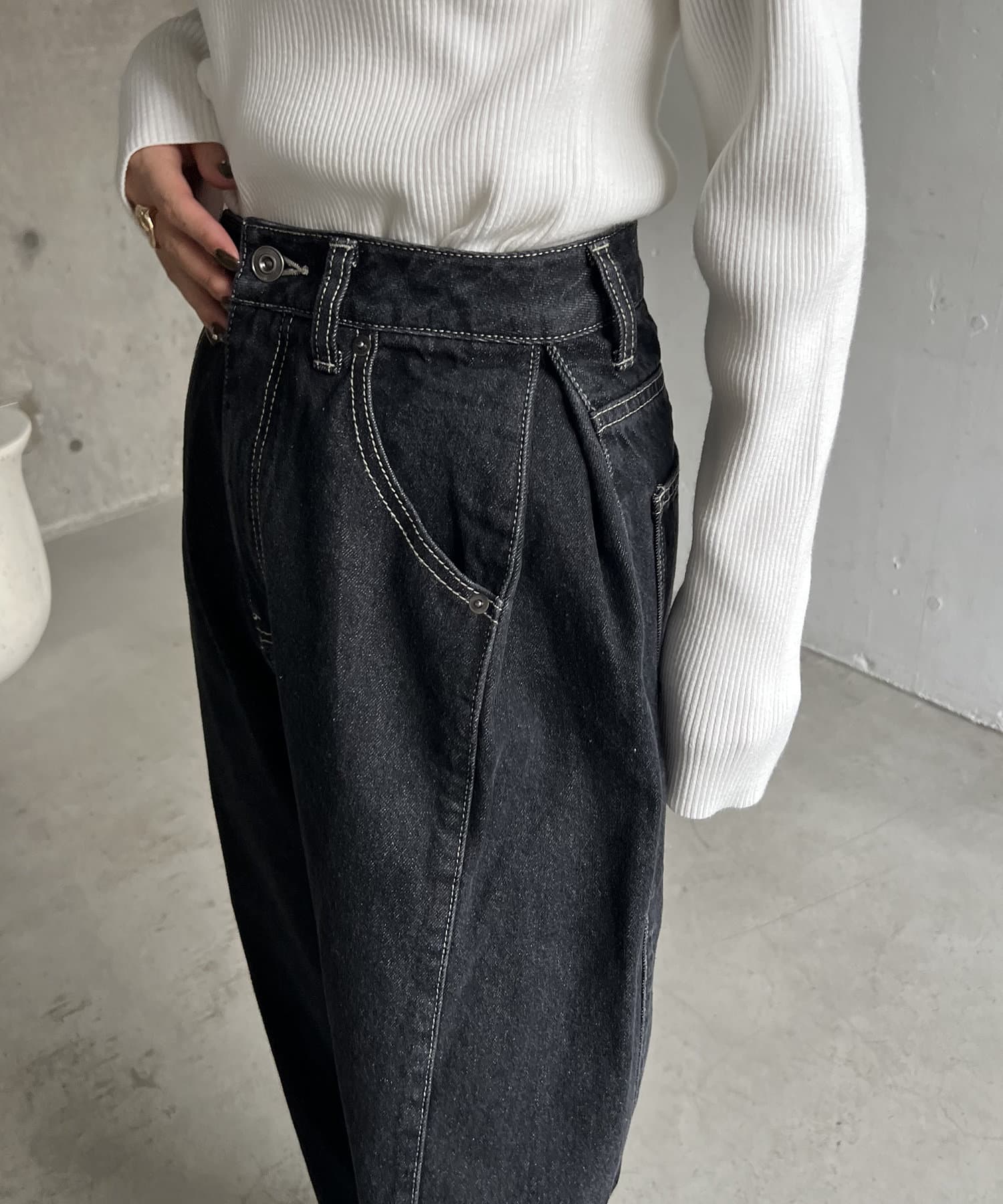 サイドにタックが入ったデザイン性のあるワイドデニム