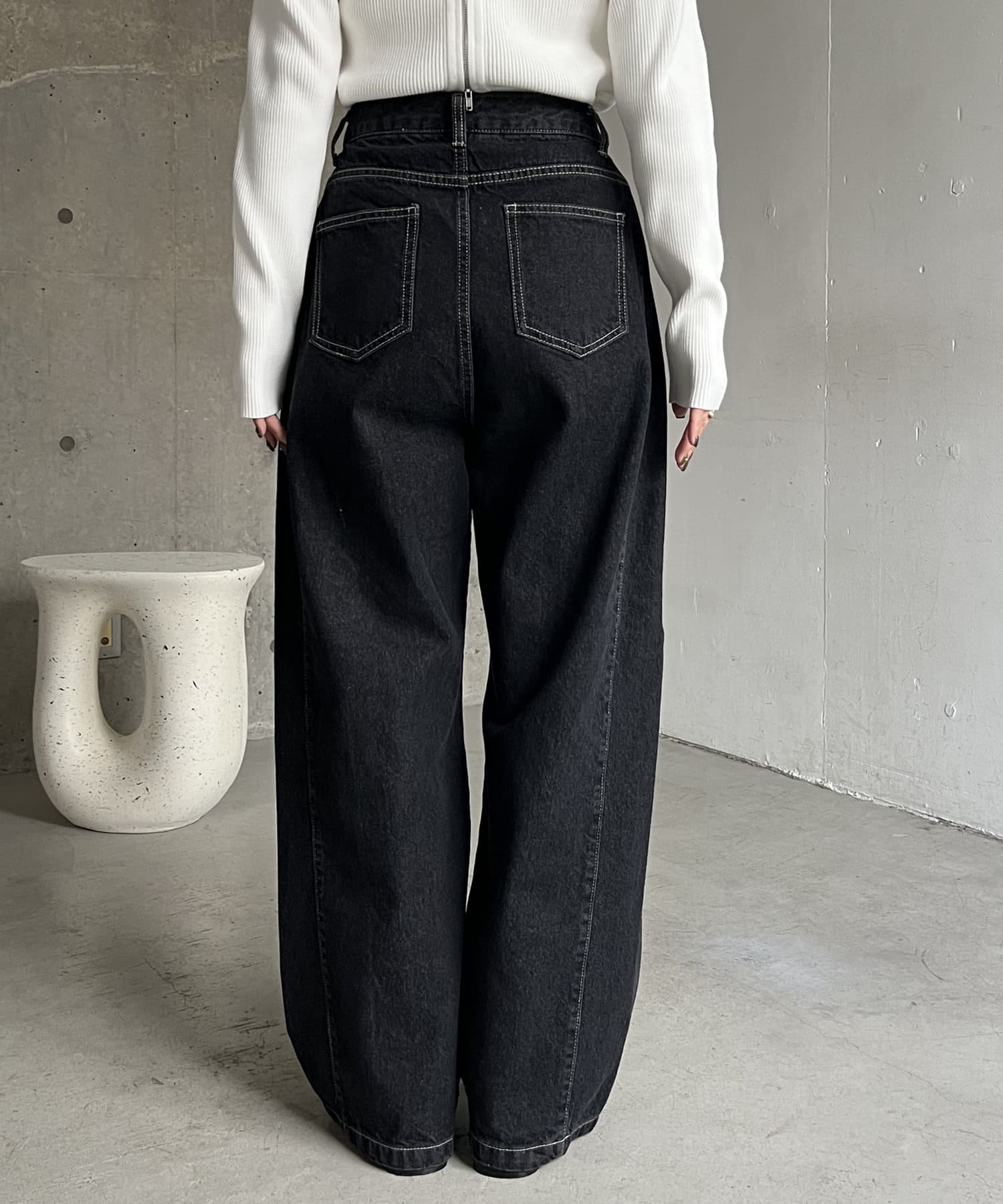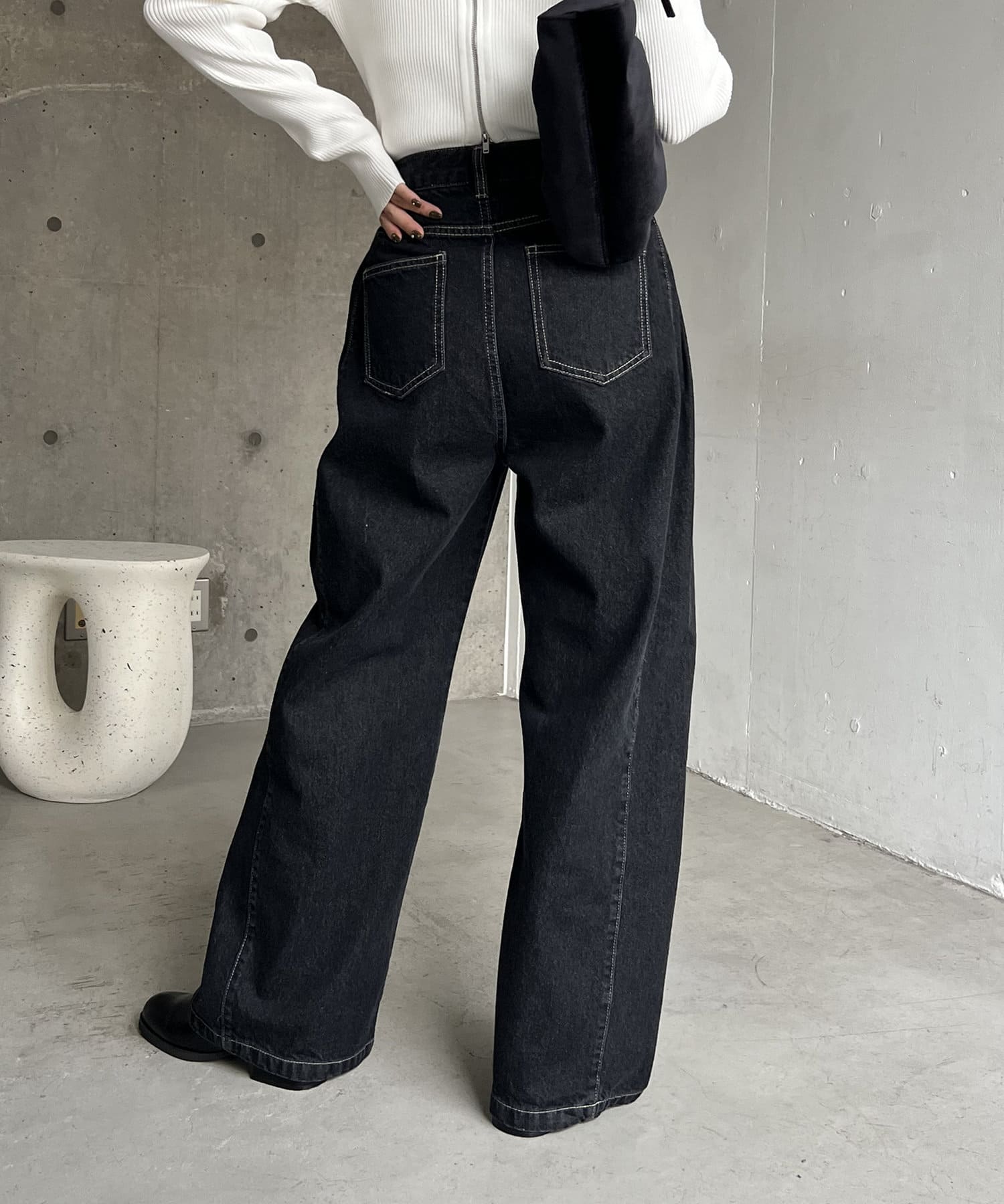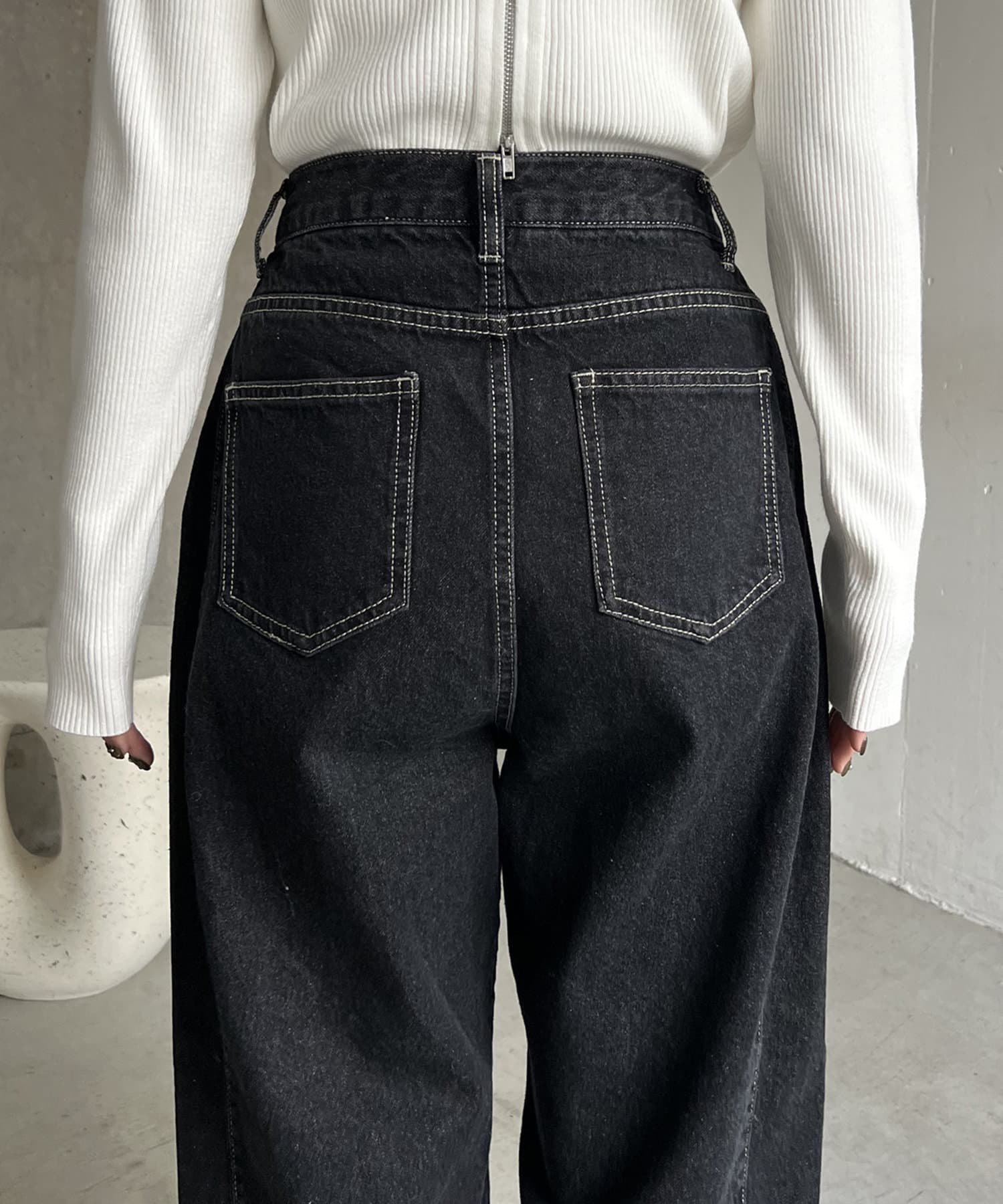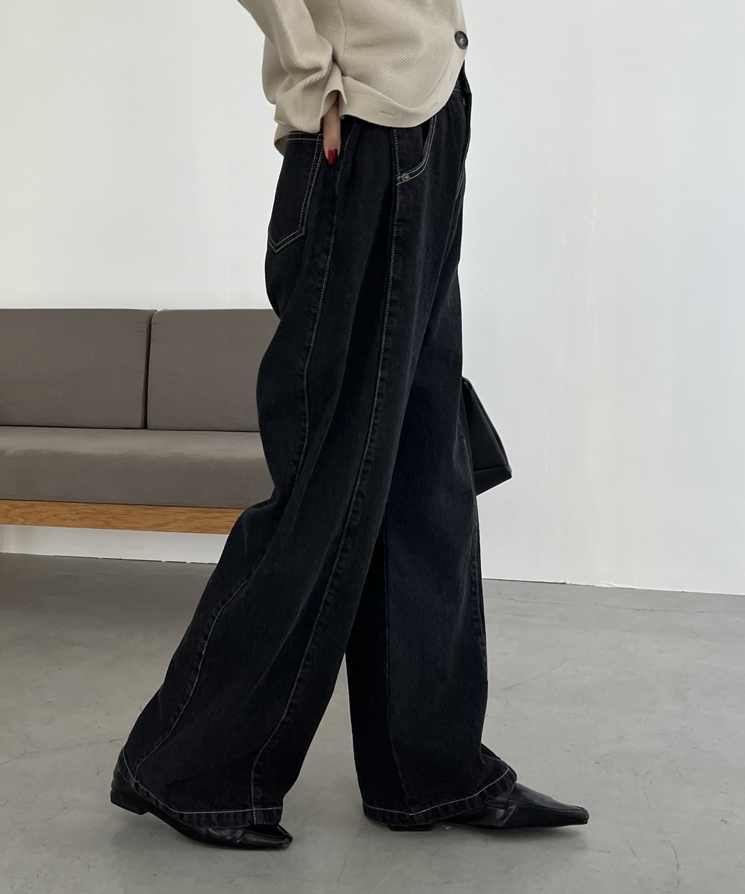 サイドにタックが入ったデザイン性のあるワイドデニム