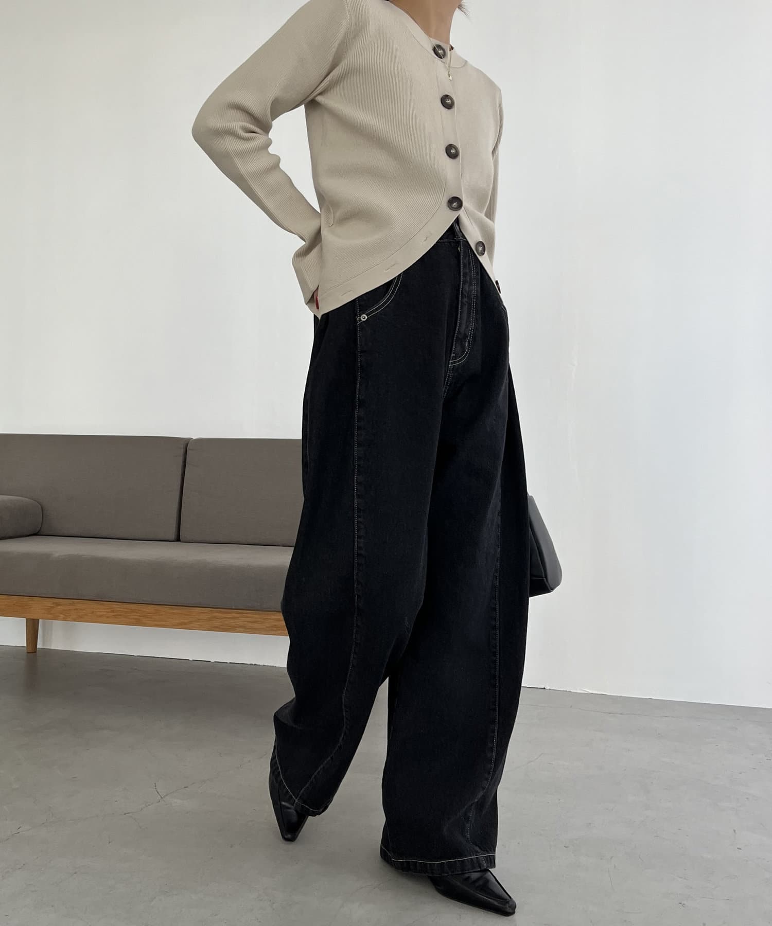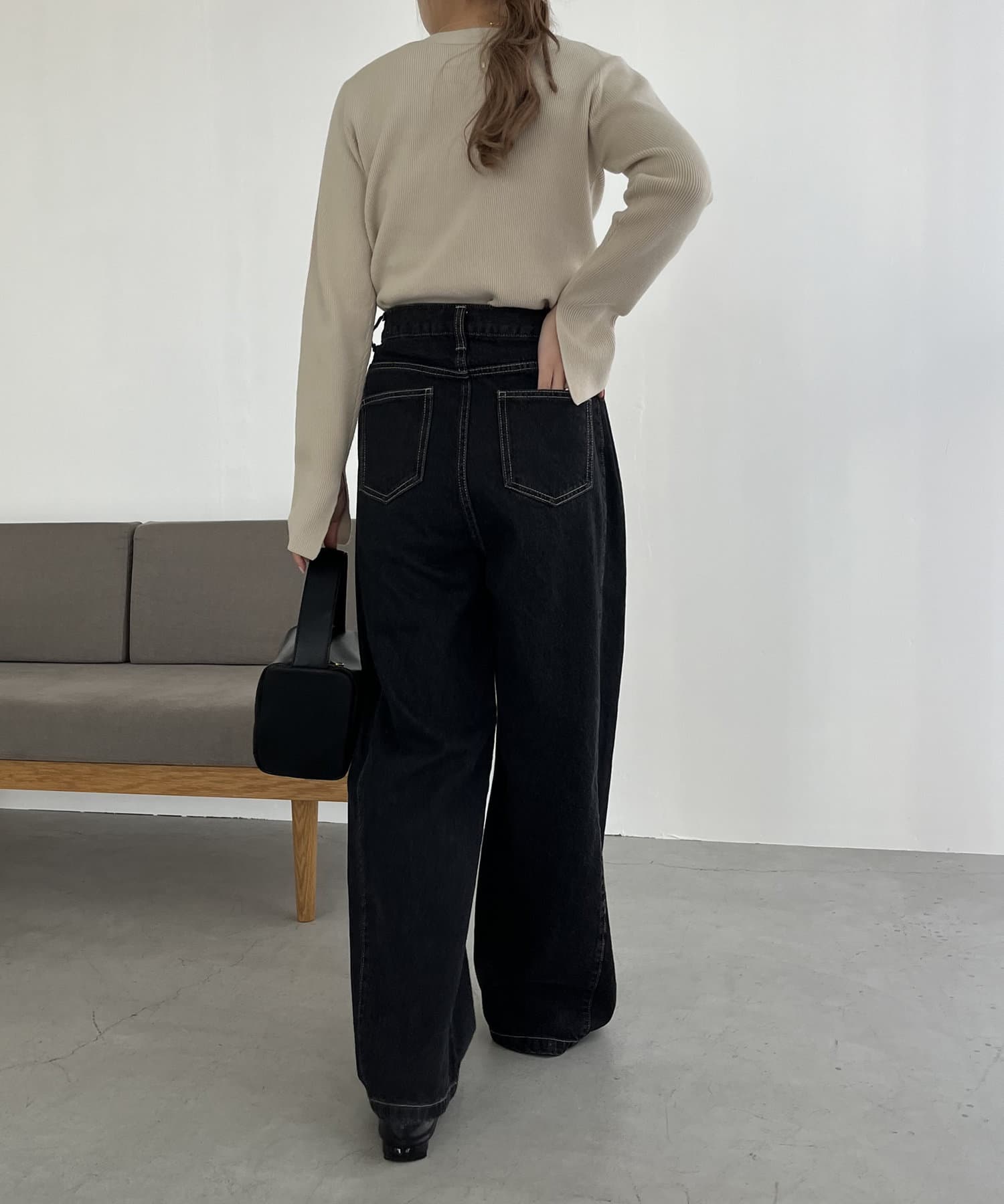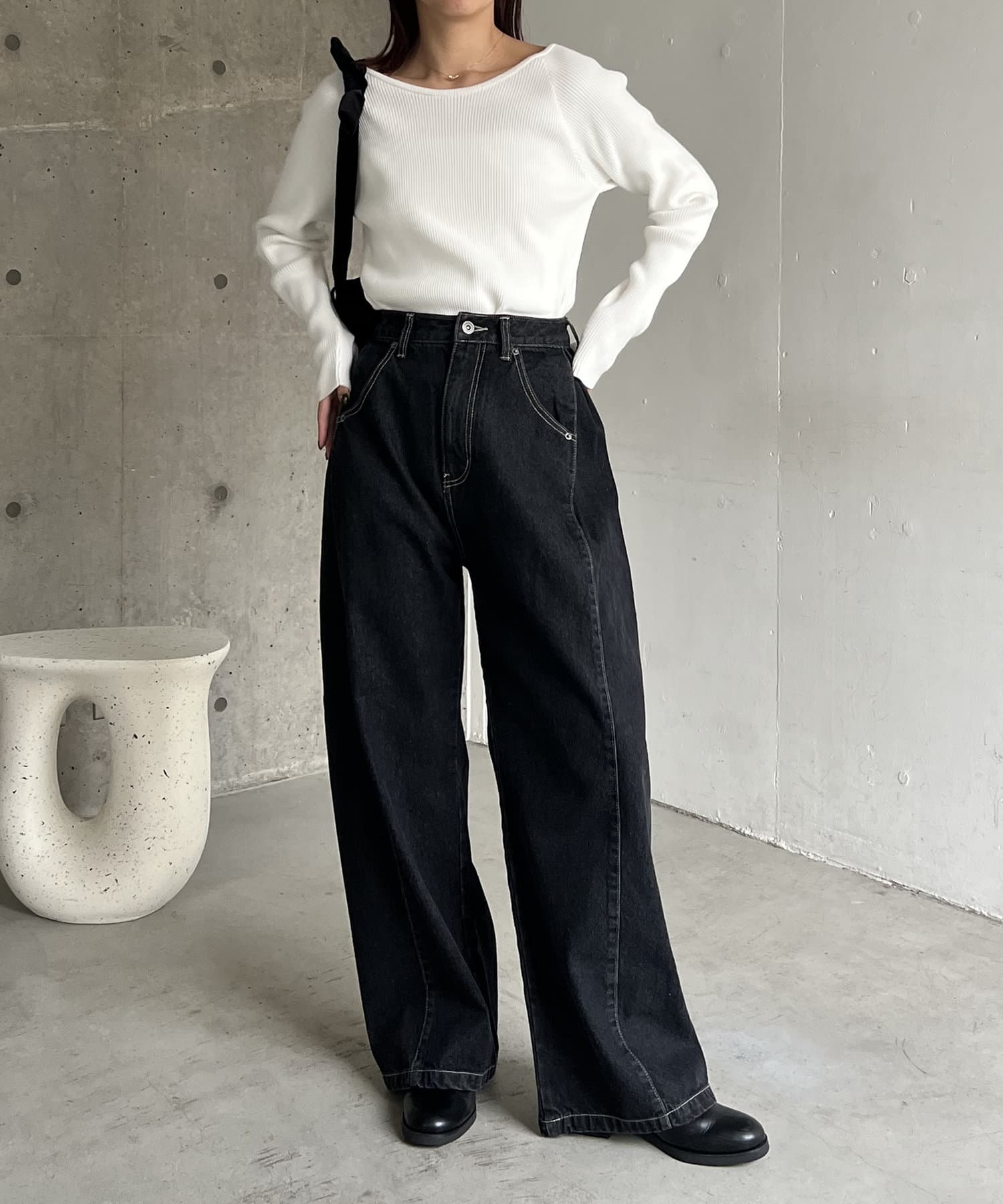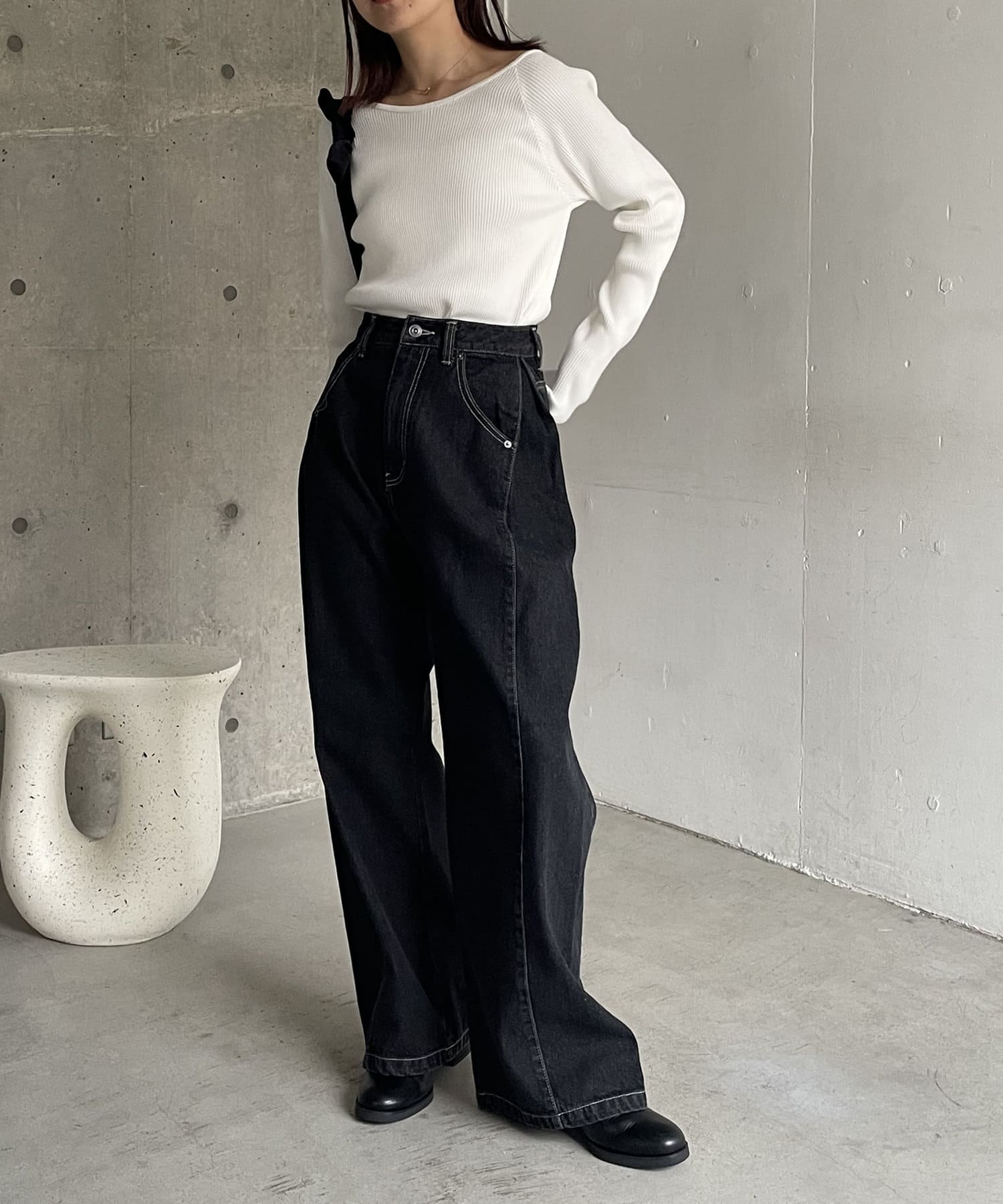 サイドにタックが入ったデザイン性のあるワイドデニム