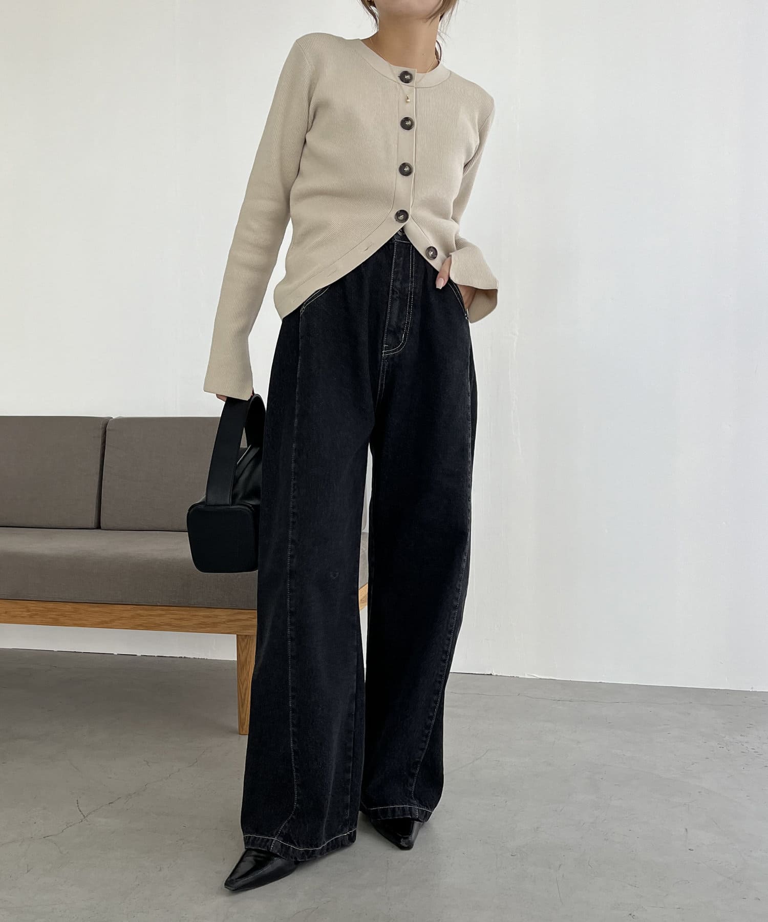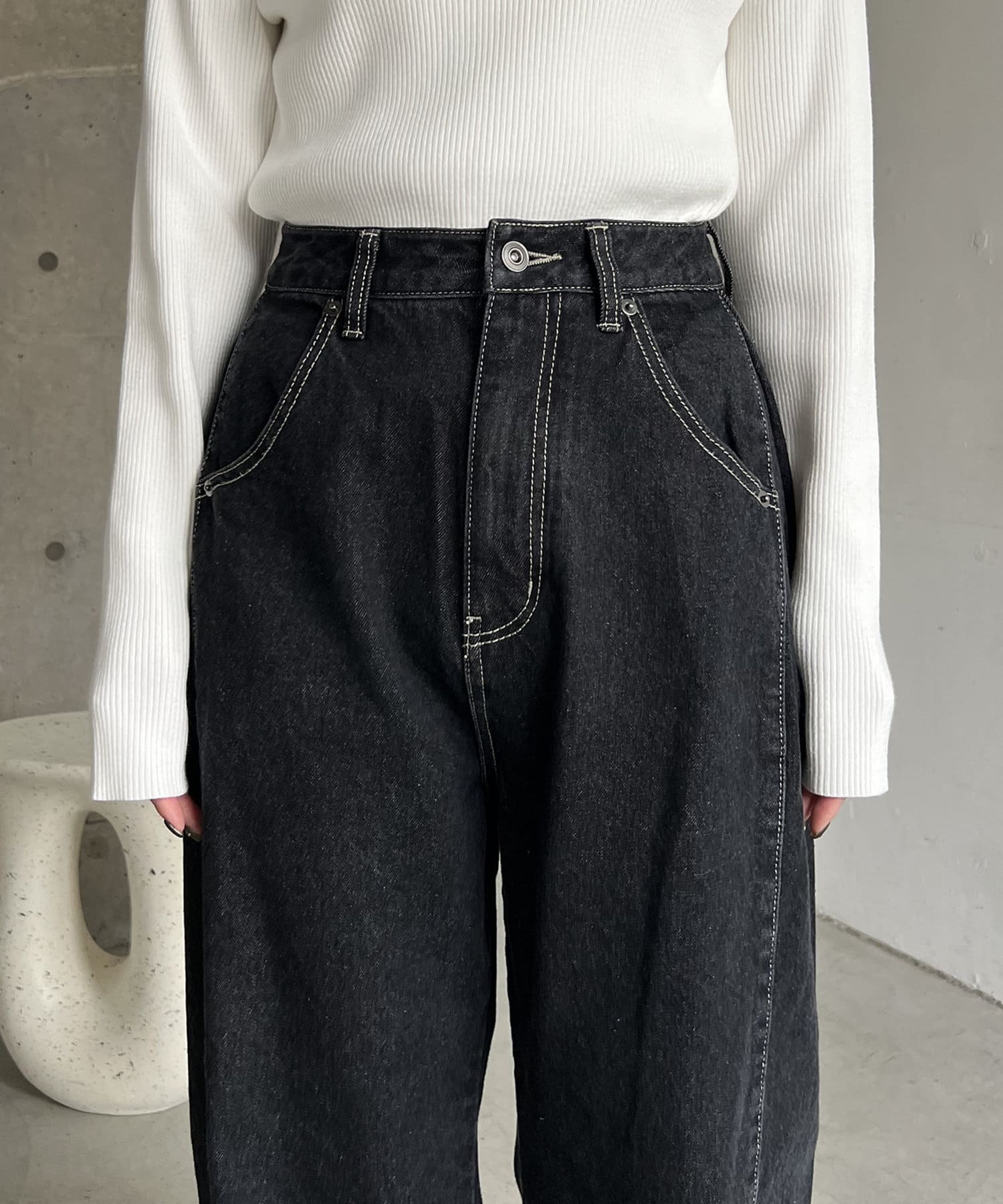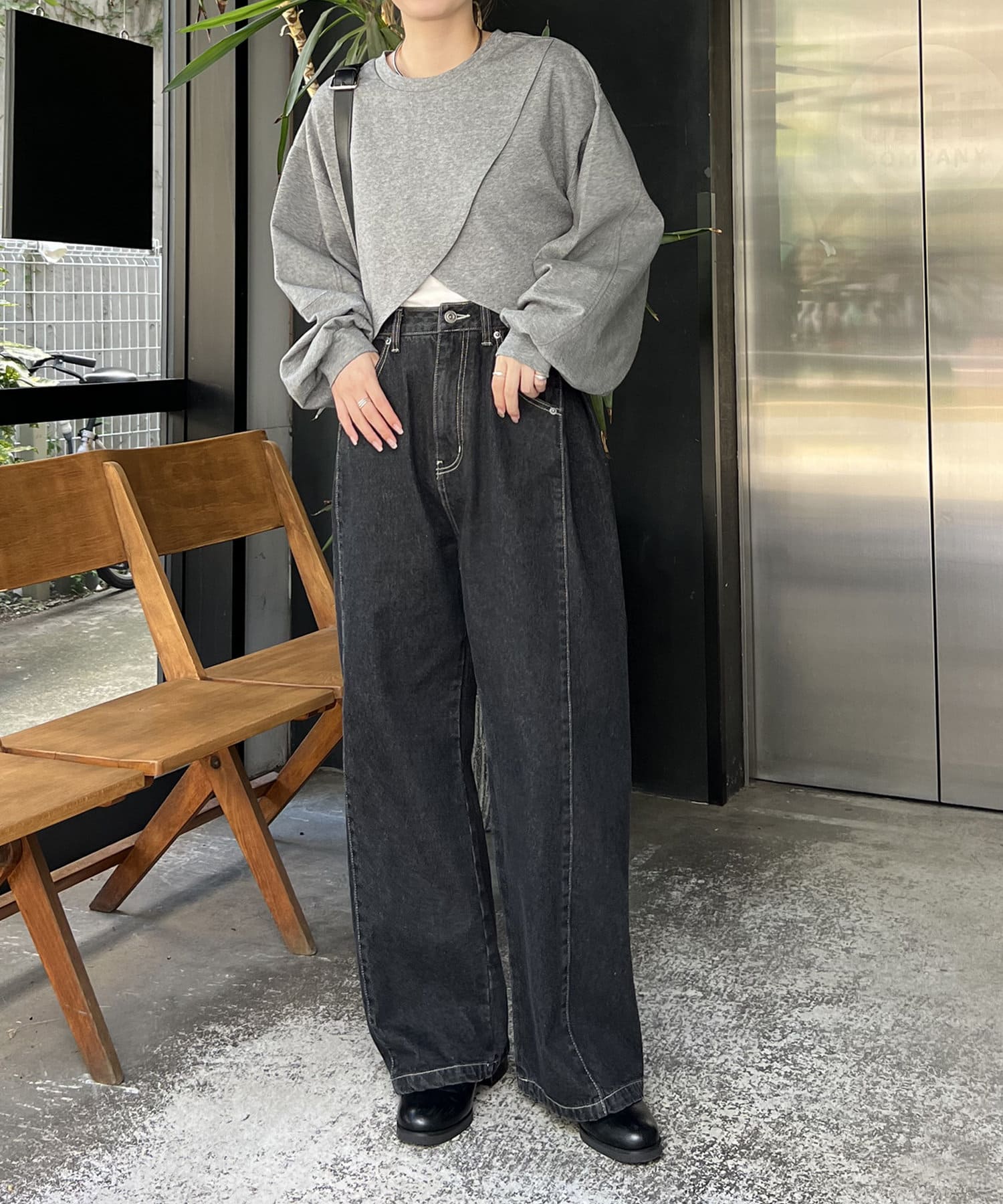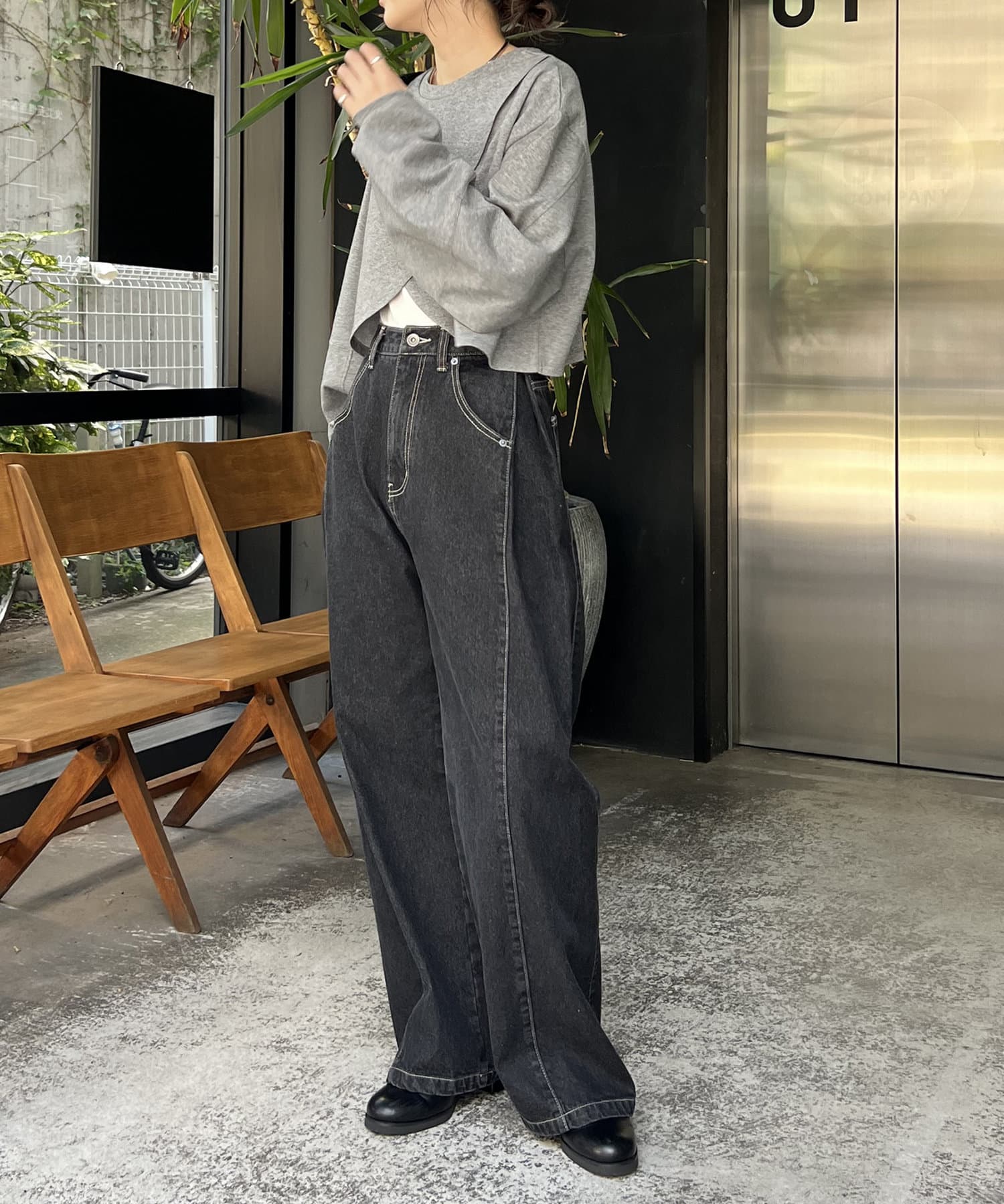 サイドにタックが入ったデザイン性のあるワイドデニム