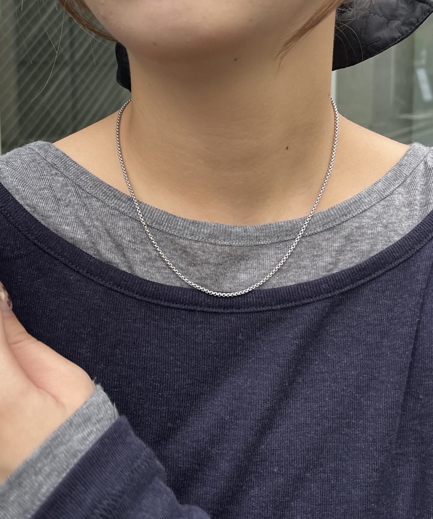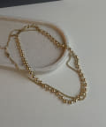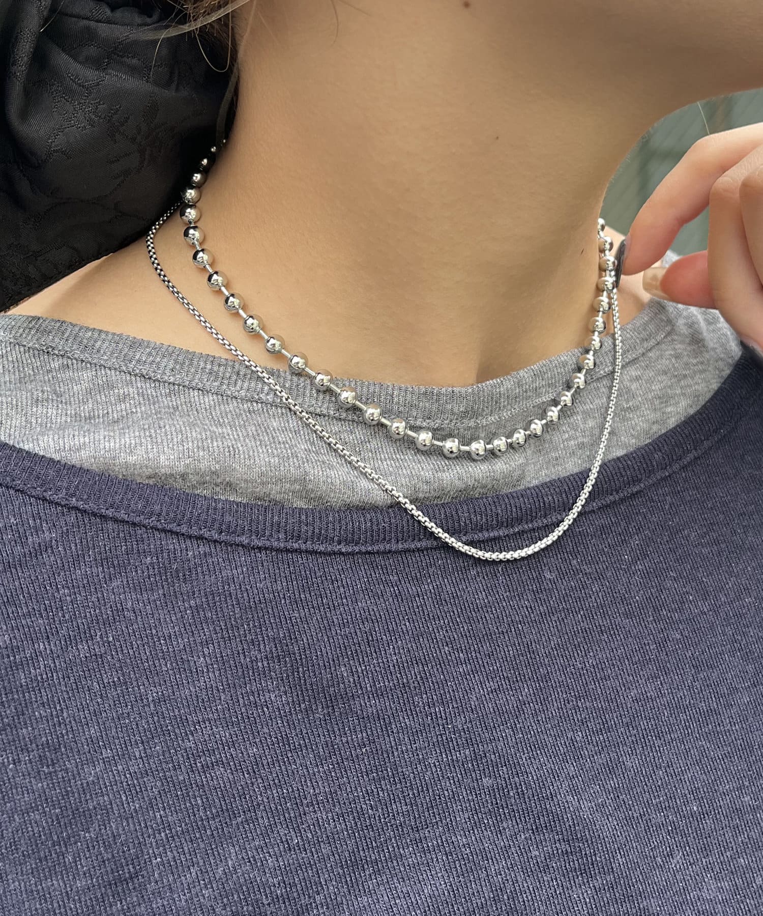 存在感のあるボールチェーンと華奢なボックスチェーンの2本セットデザイン。