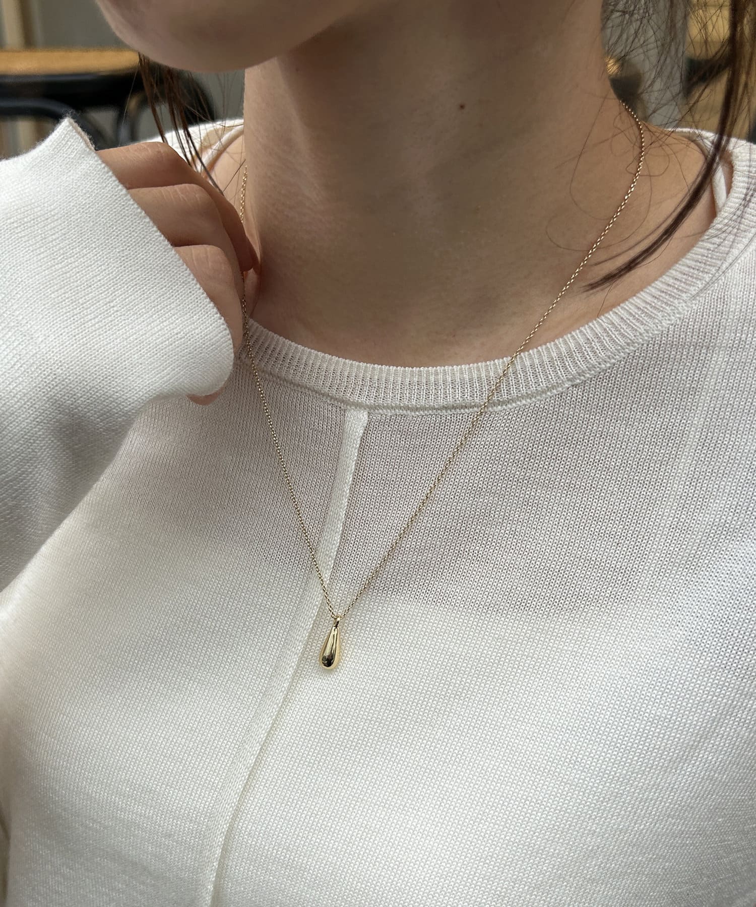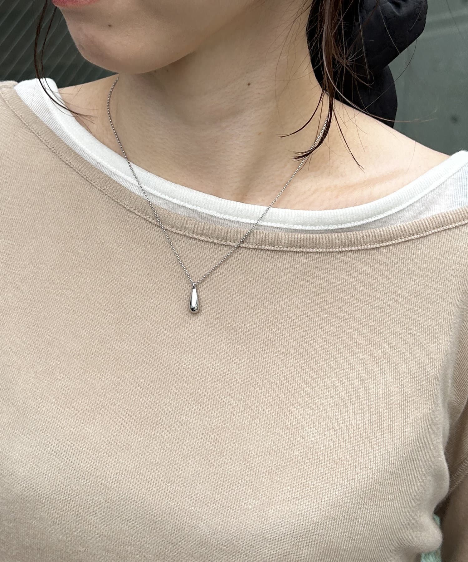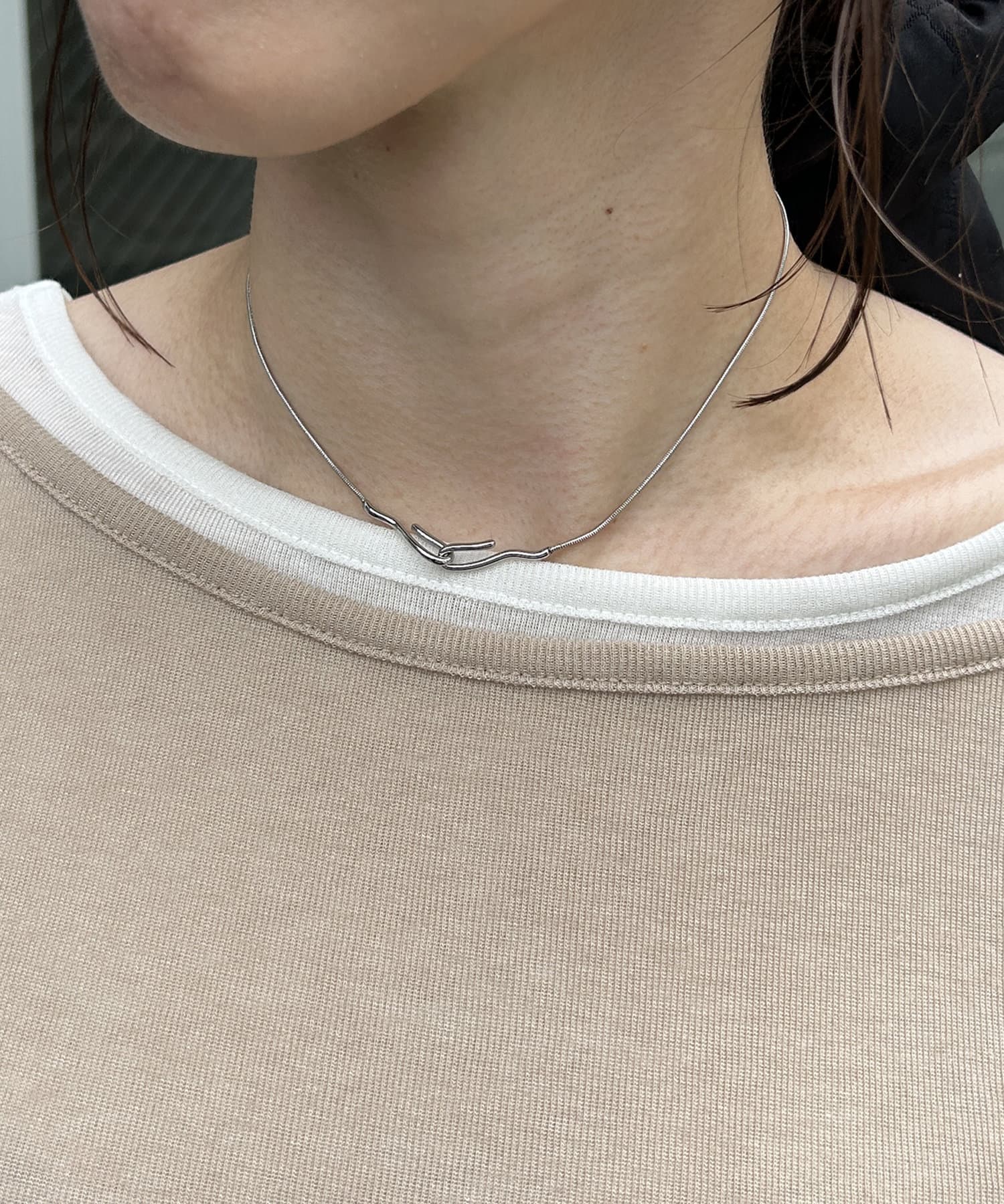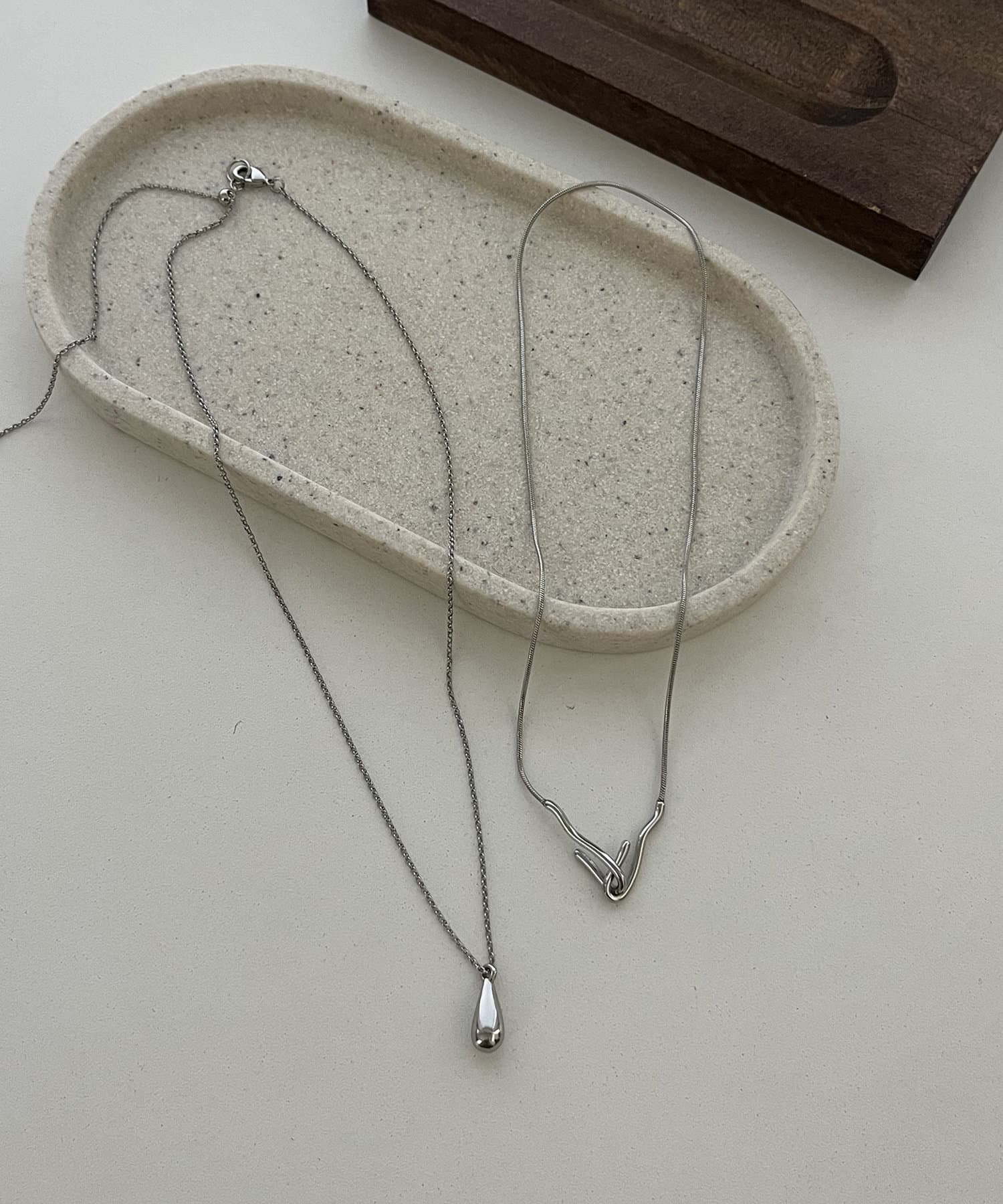 ドロップチャームとフックチャームのネックレスがセットになったデザイン。