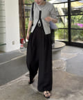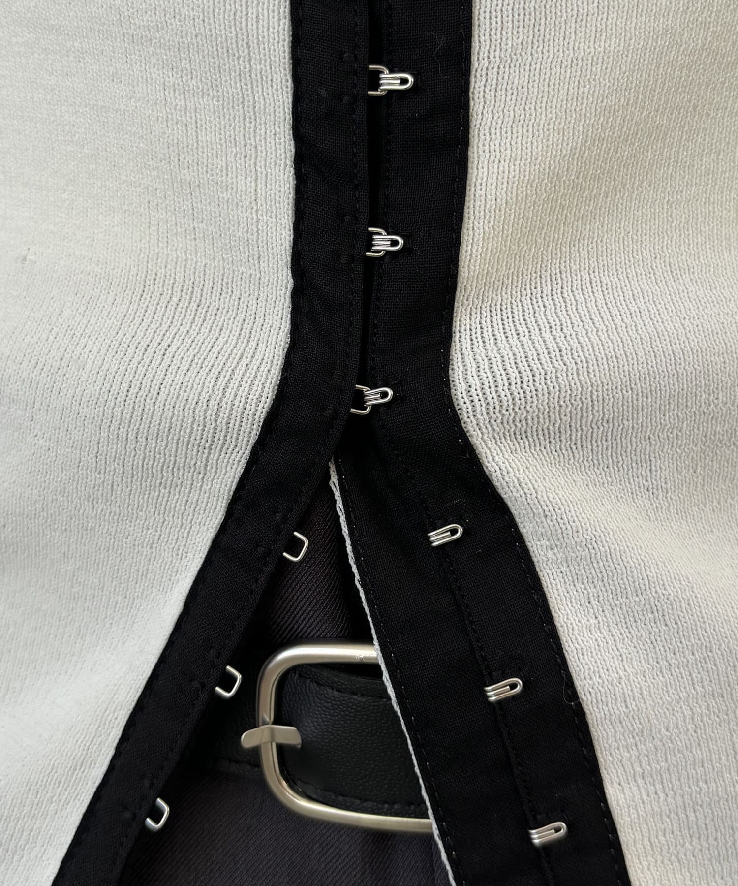 ・セットで着て下のホックを数個開け、ウエストをチラ見せさせて着るのがおすすめ