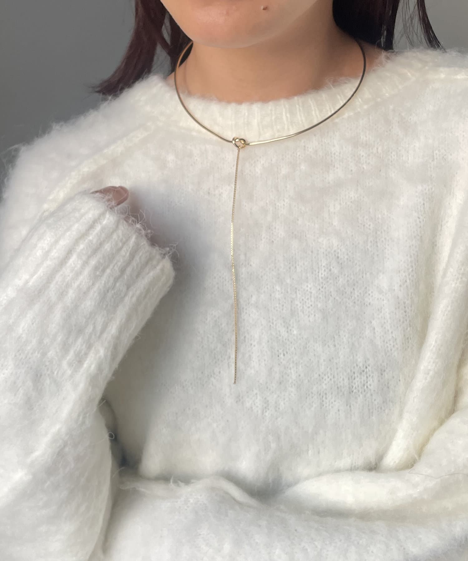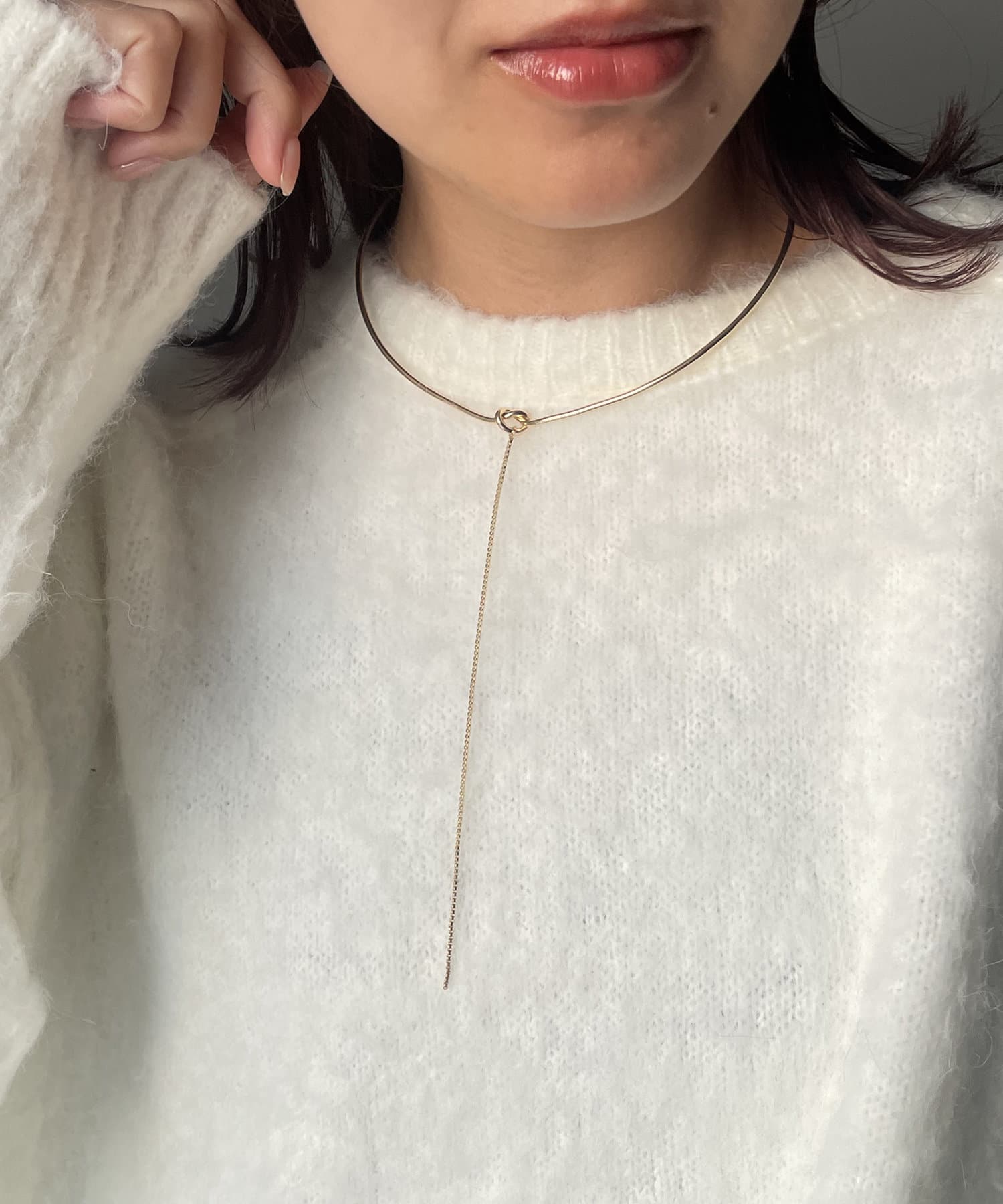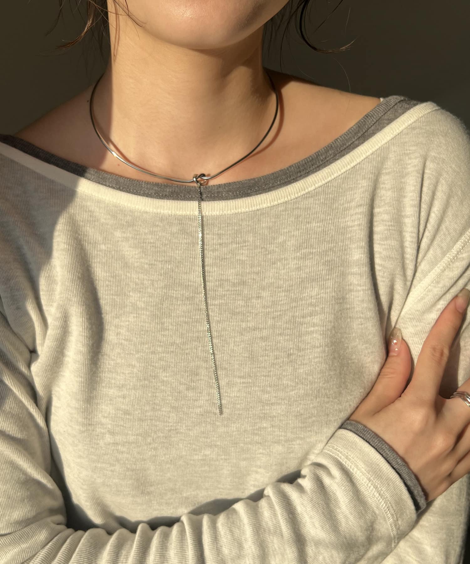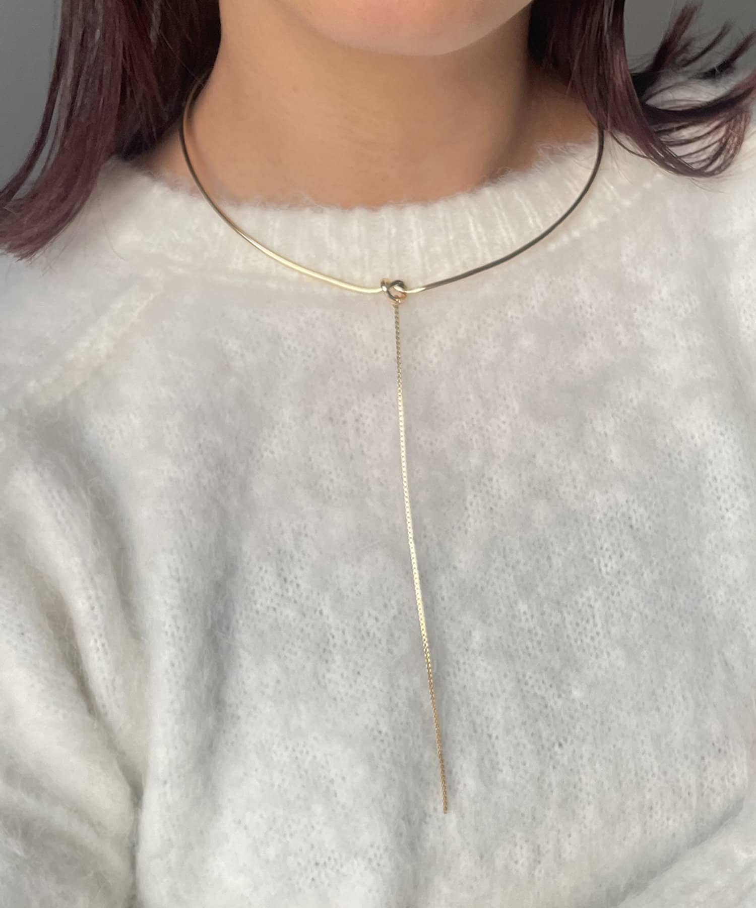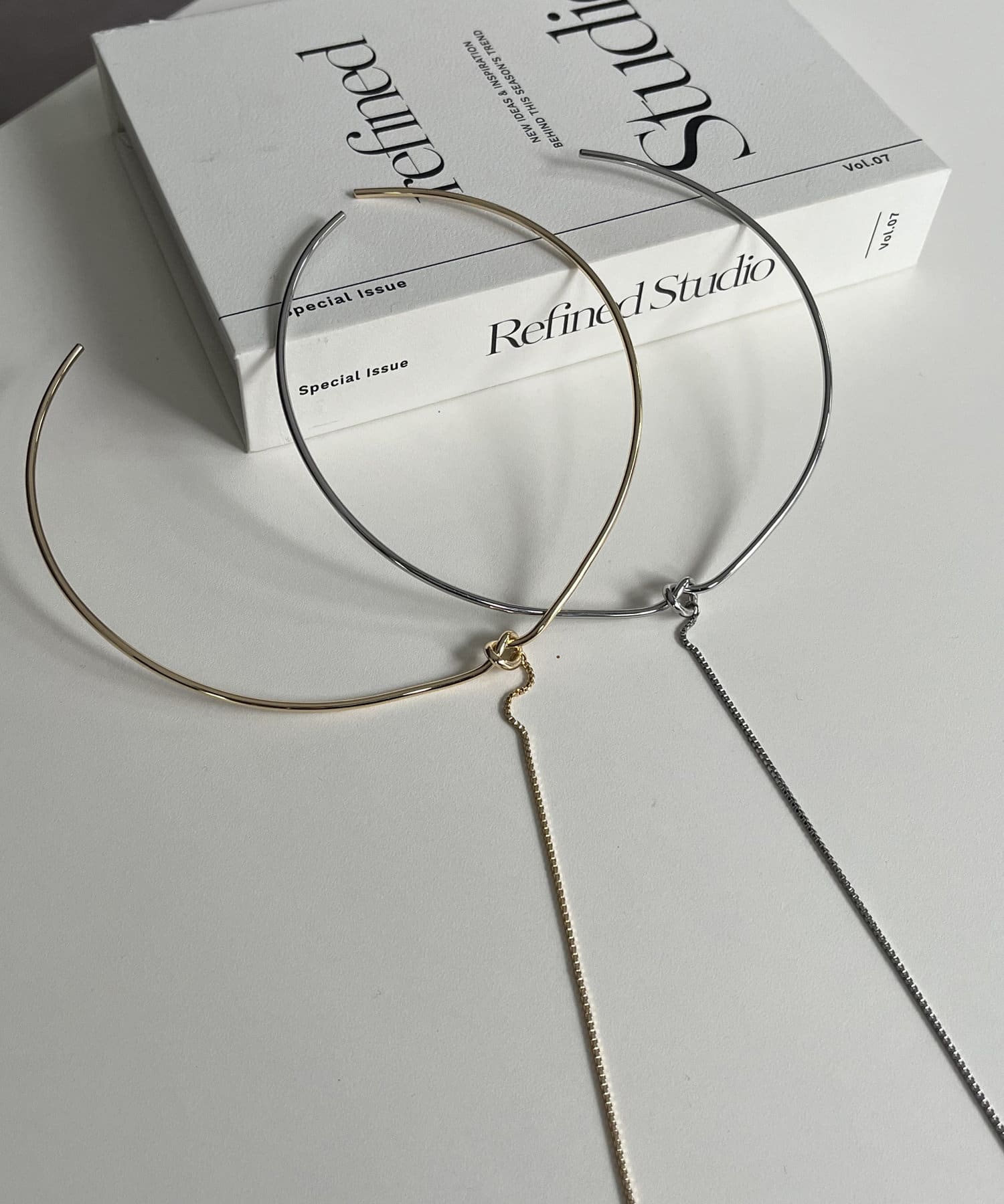 ネックカフにIラインのチェーンをつなげたデザイン。