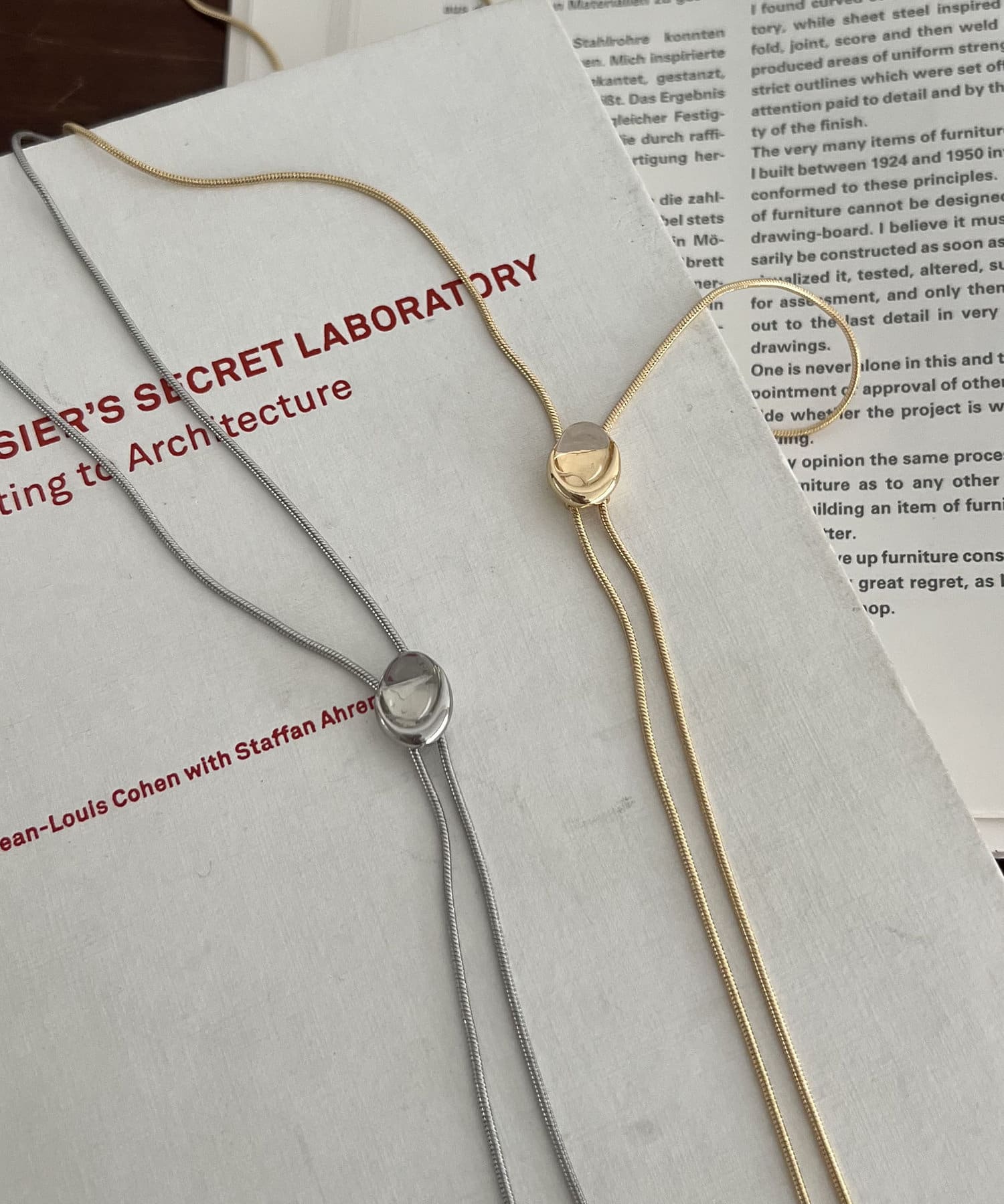 ニュアンス感のあるモチーフと、ループタイ調のY字シルエットが魅力的なデザイン。