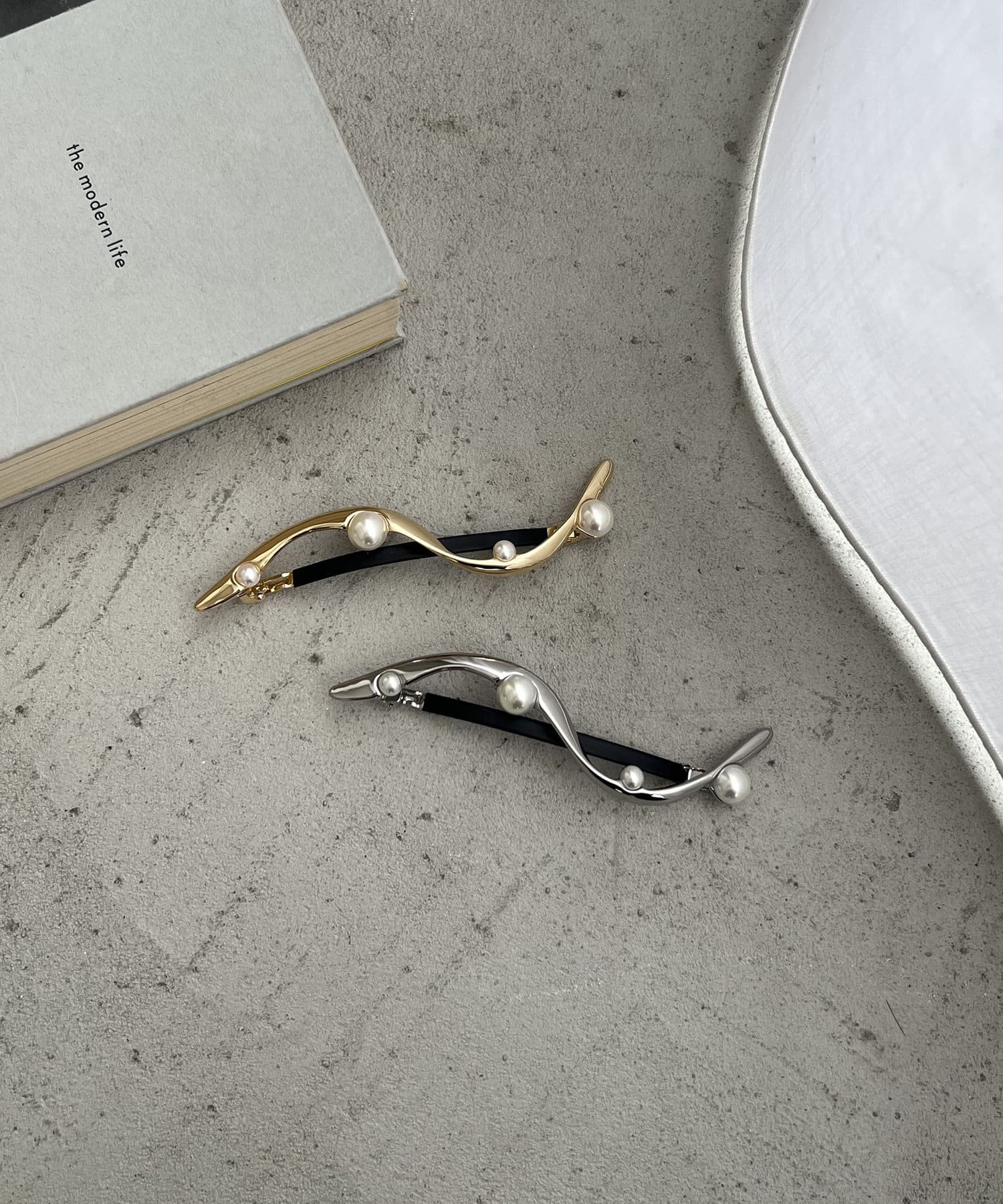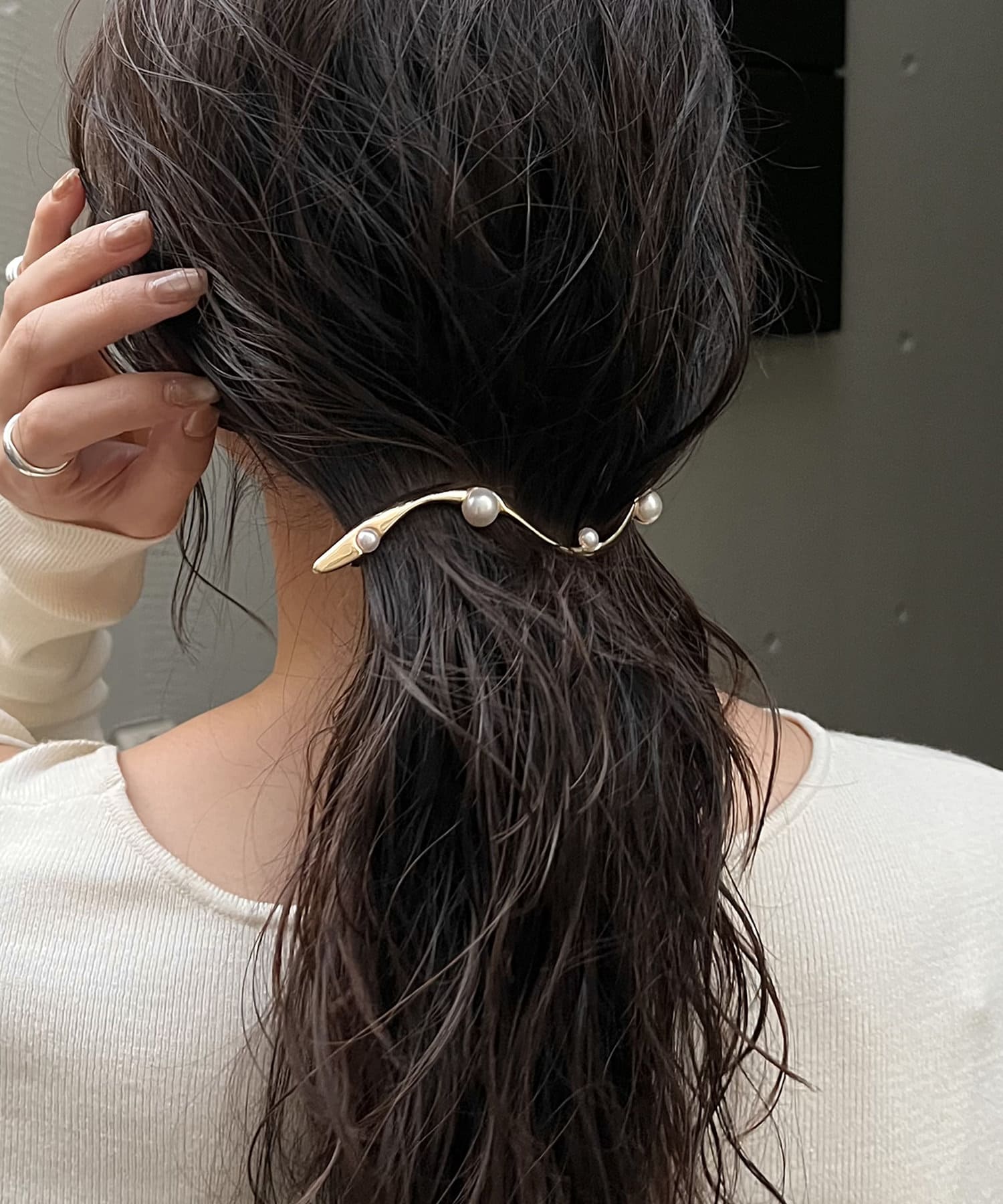 独創的なラインとパールの美しさが目を惹くバレッタ