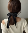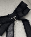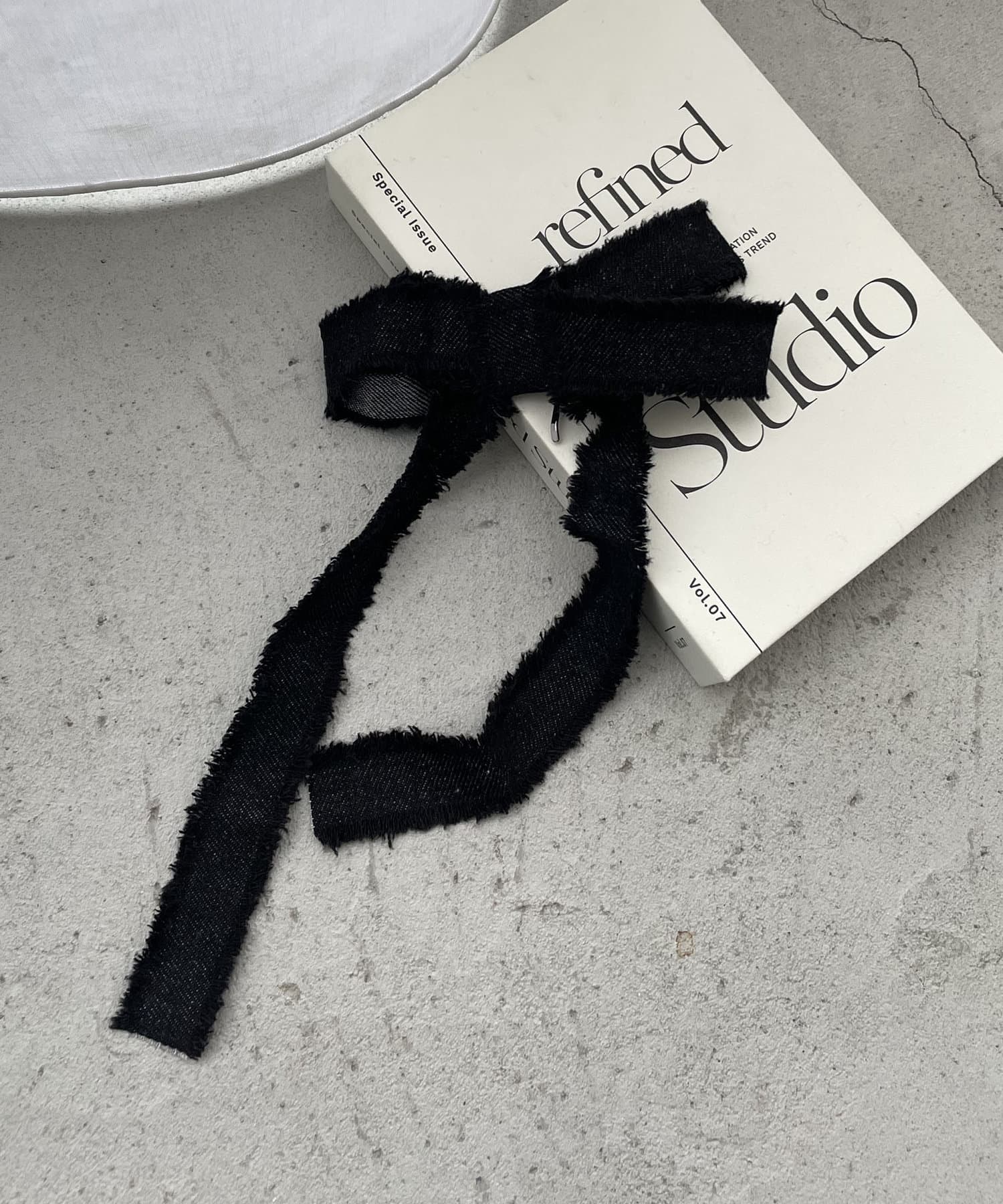 デニム素材のリボンをヘアカフに仕上げたデザイン。