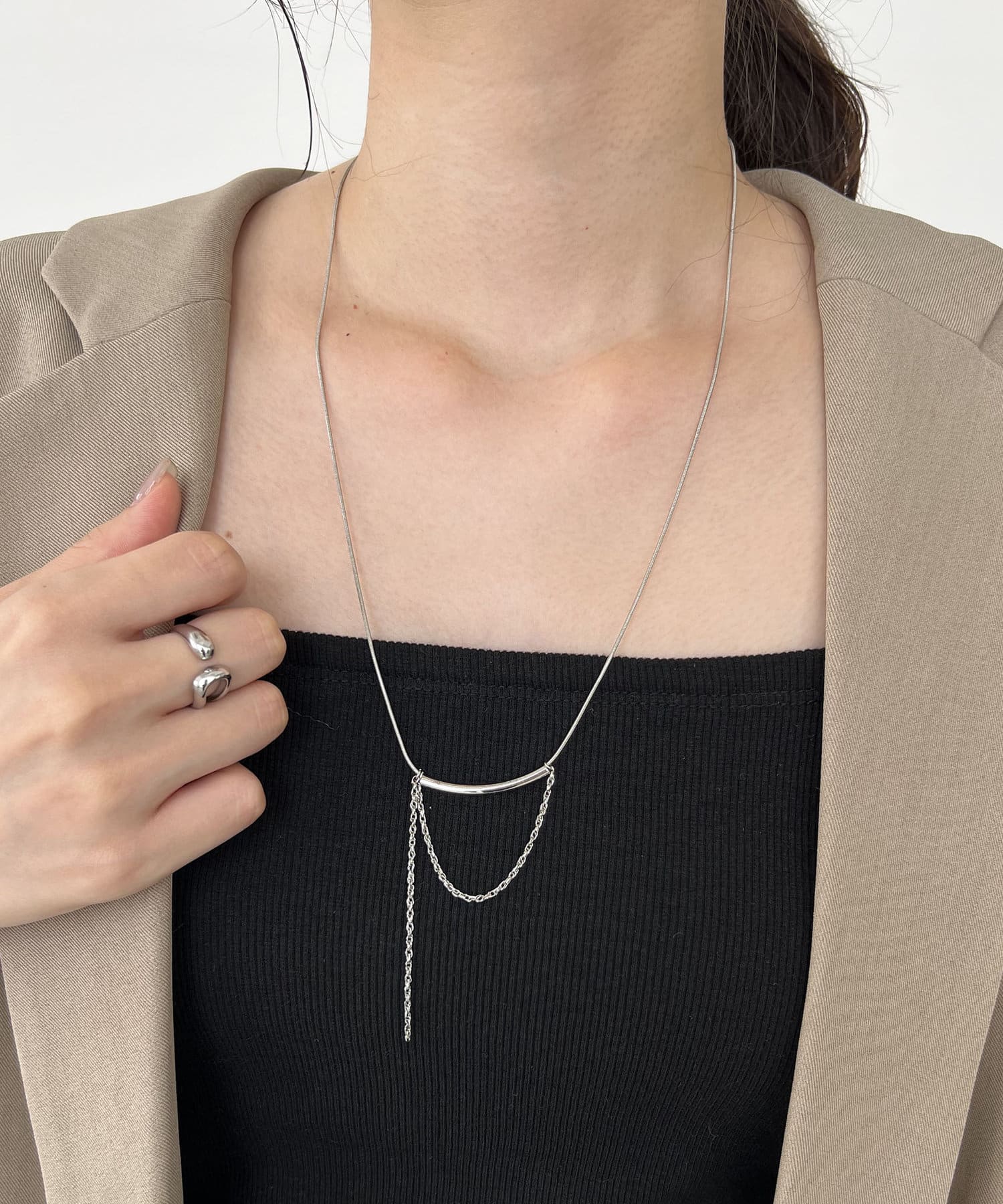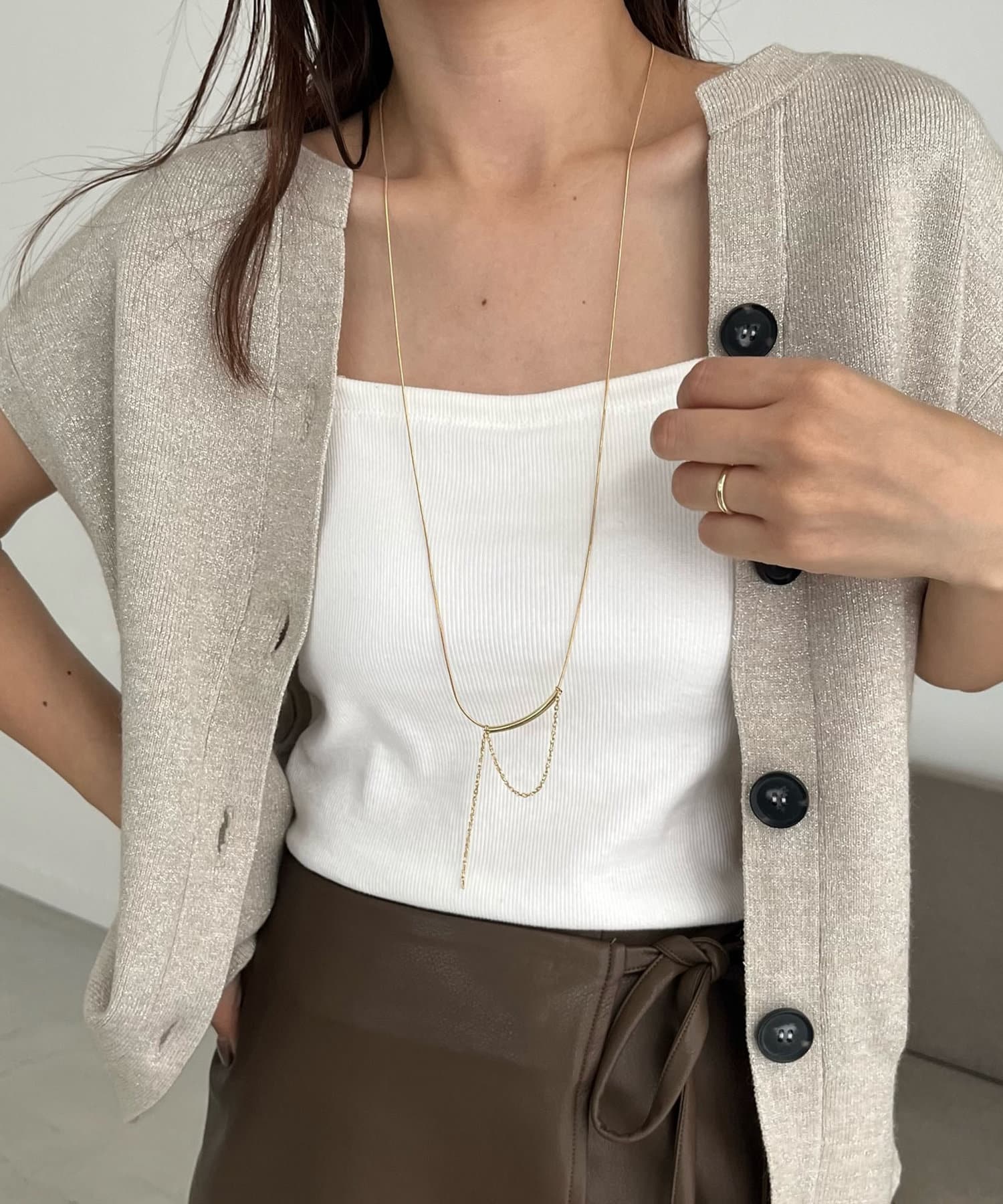 スタイリングに合わせて長さを変えられるネックレス