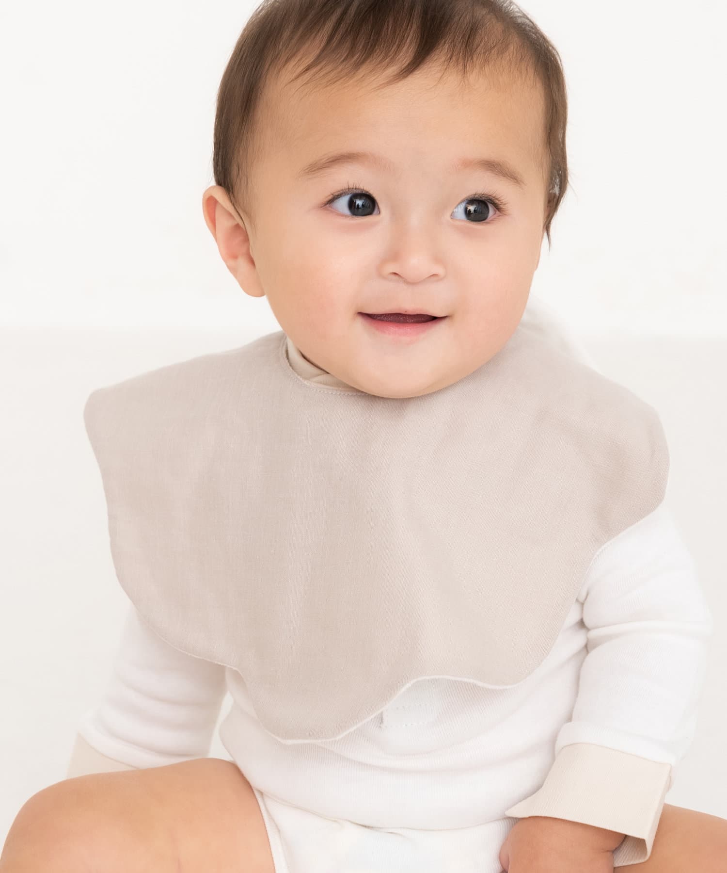 柔らかなガーゼの表地とパイルの裏地で、食べこぼしもしっかりキャッチします。