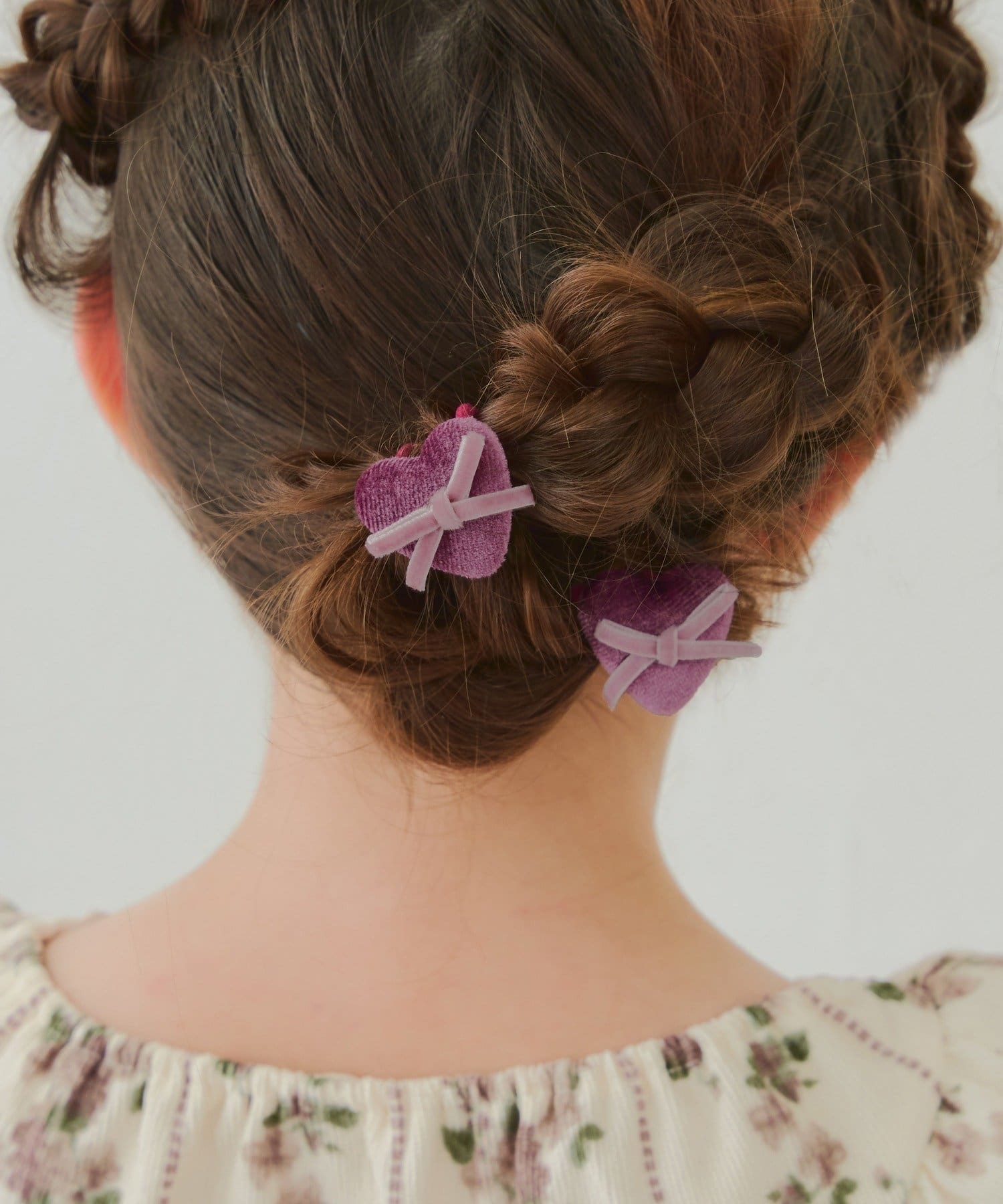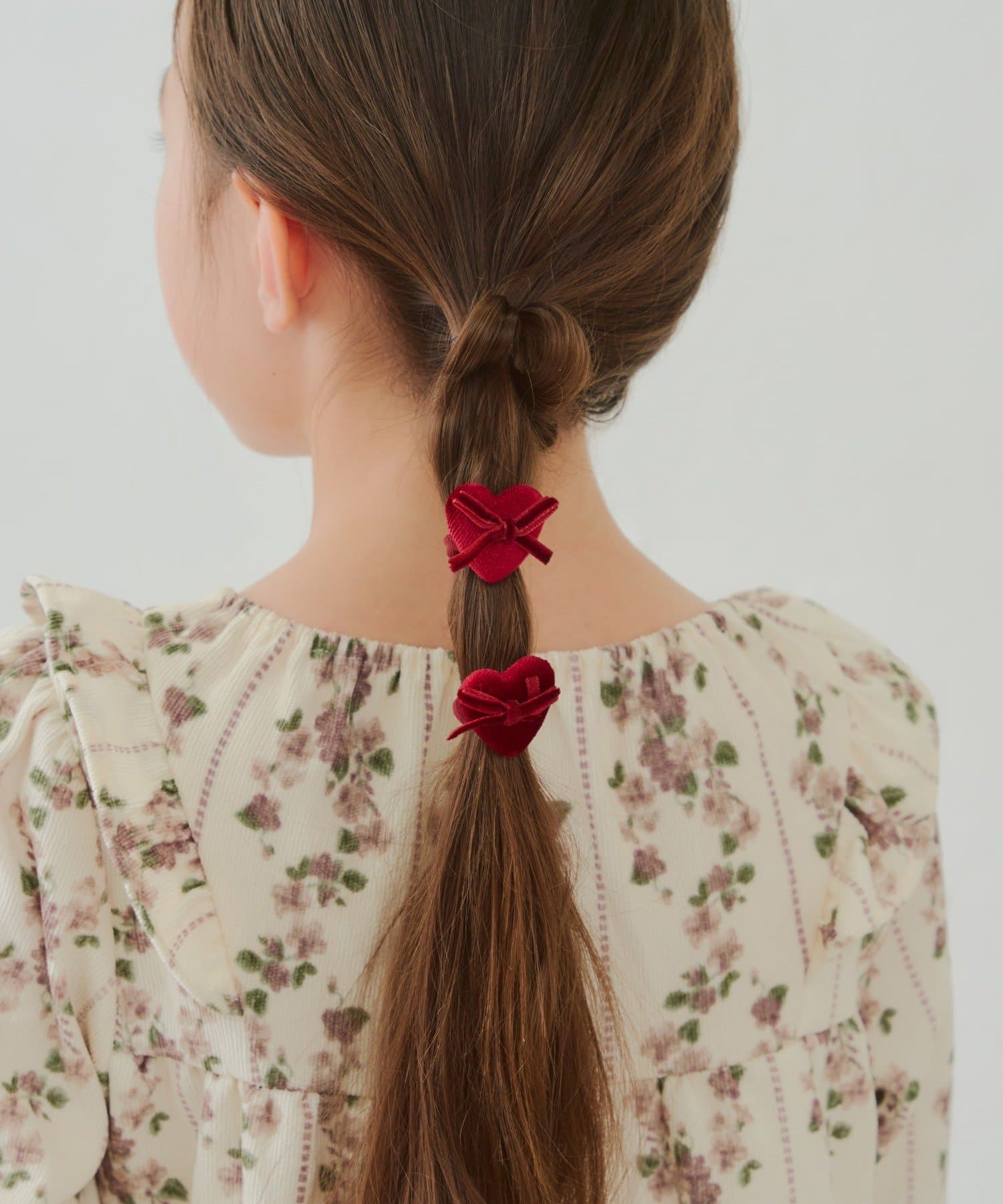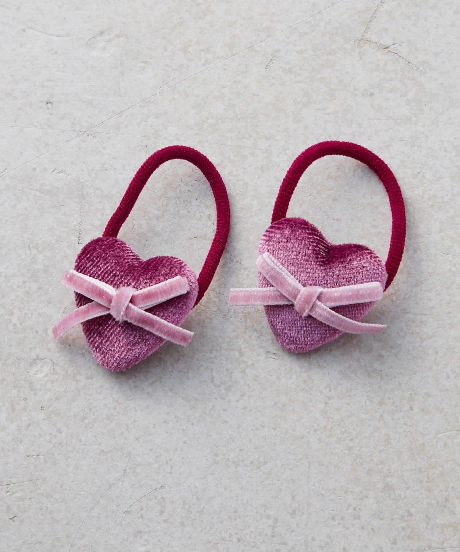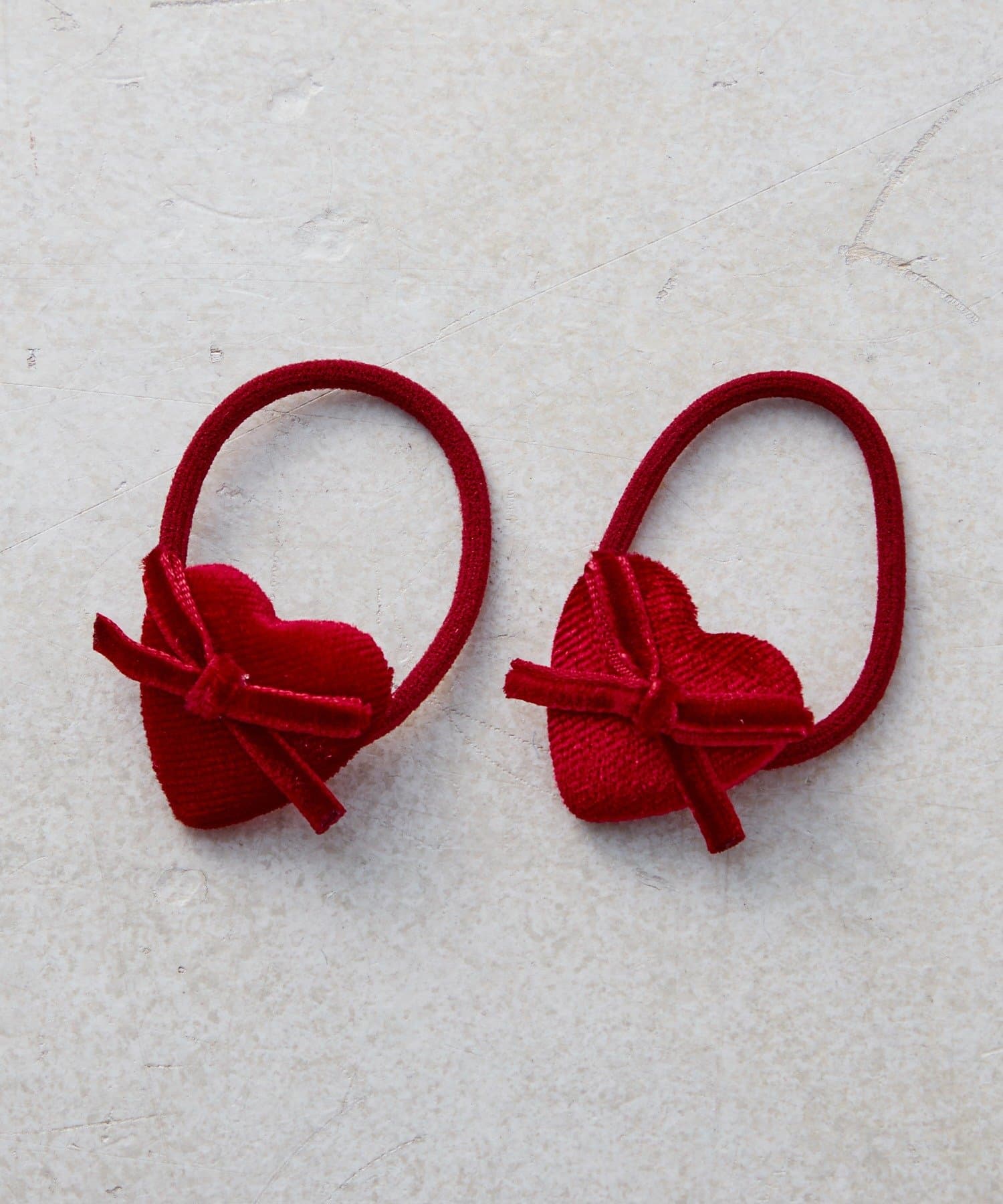 【KIDS/クリスマス】ベロアハートヘアゴムセット(2P)