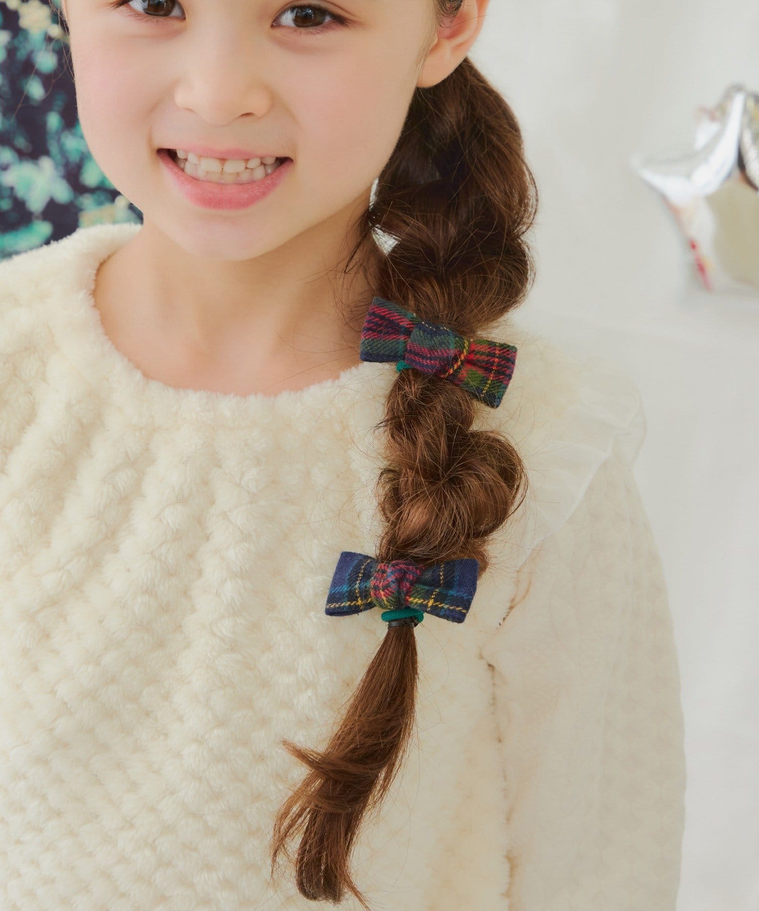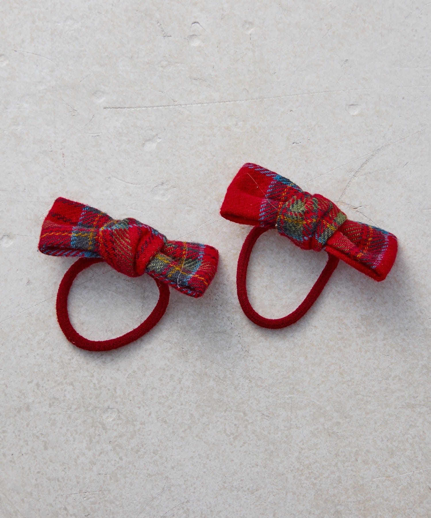 TOP > Lattice > レディース > ヘアアクセサリー > ヘアゴム/ポニー > 【KIDS/クリスマス】チェックリボンヘアゴムセット(2P)