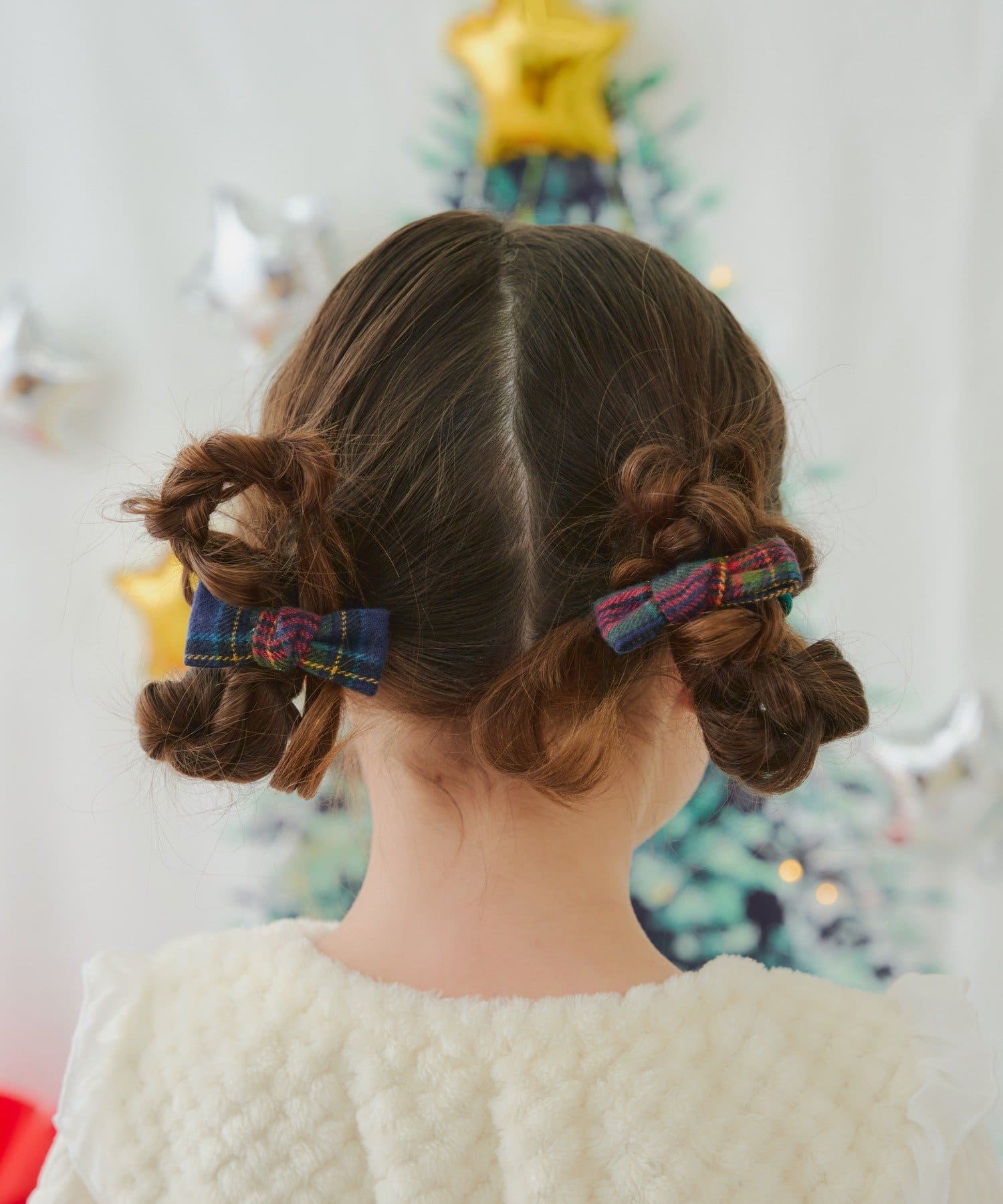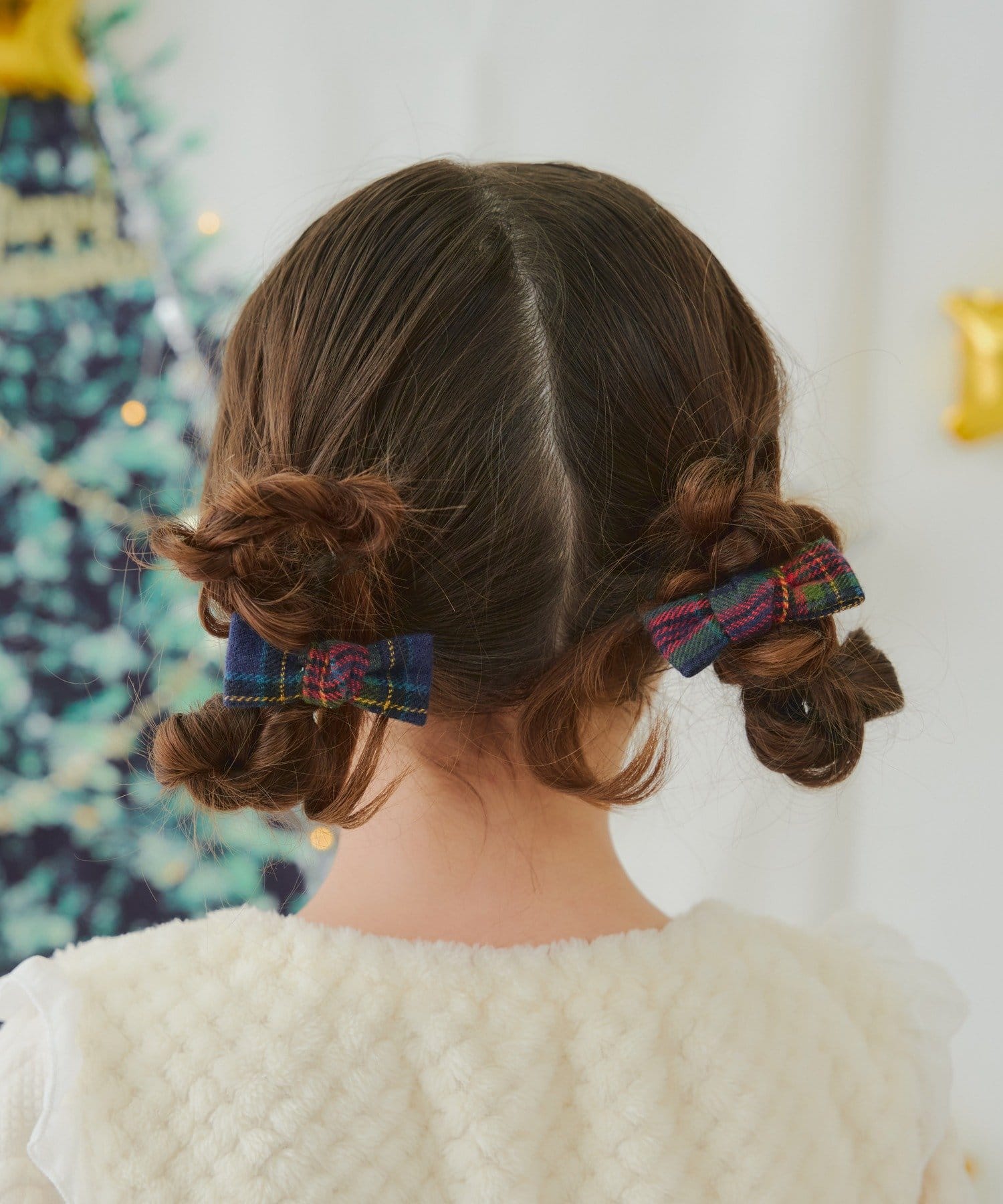 【KIDS/クリスマス】チェックリボンヘアゴムセット(2P)