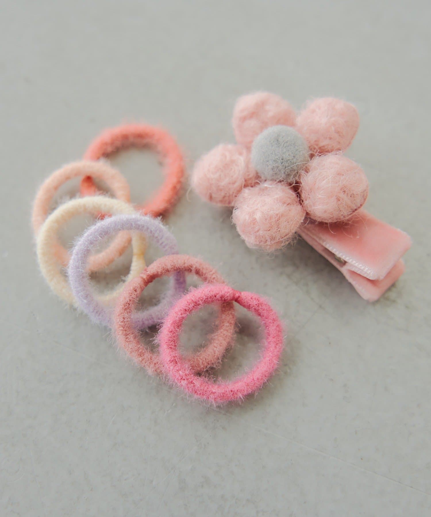秋冬にぴったりのもこもこクリップ/ヘアゴムセット