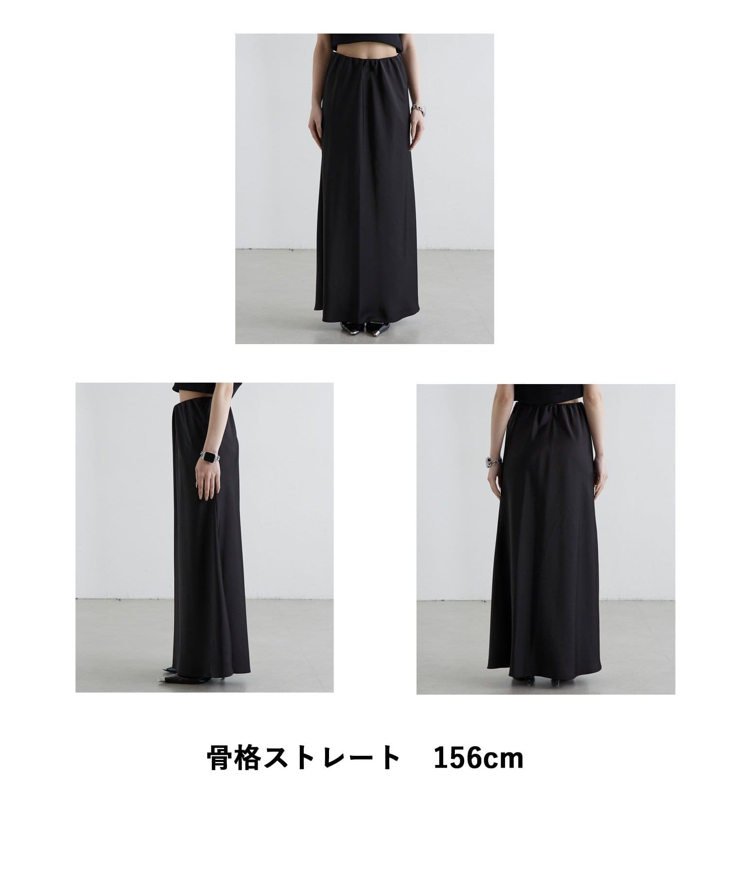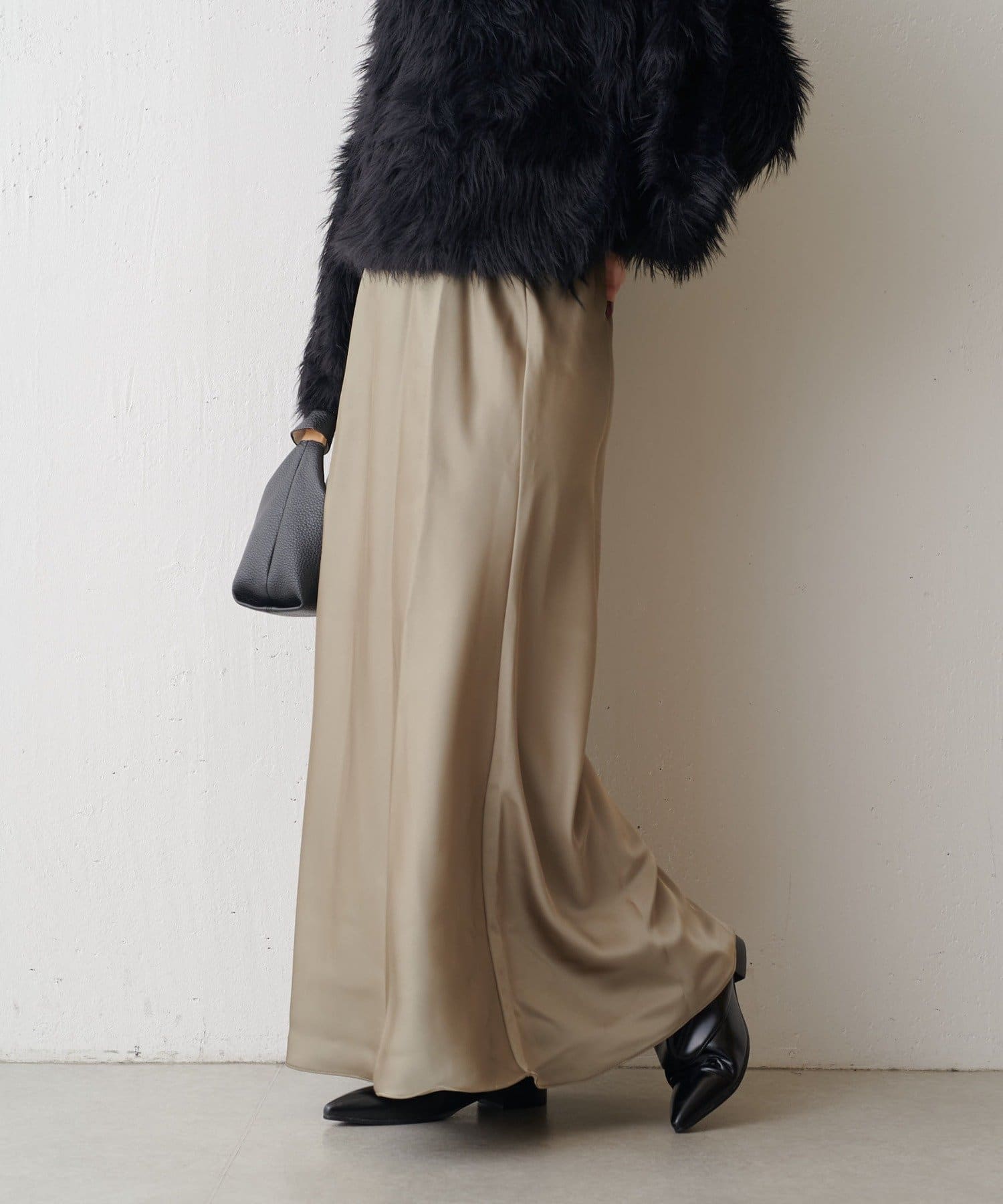 サテンの光沢を引き立てたシンプルなデザインは柔らかな生地で腰回りは適度にフィットし、