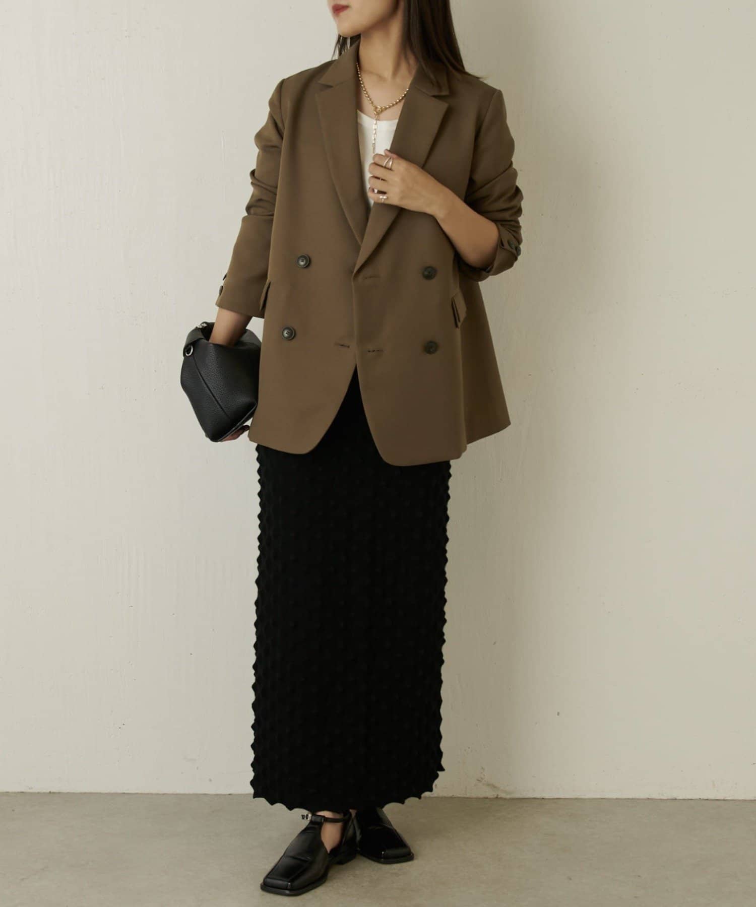 スカートと合わせた女性らしさのあるコーデまでスタイルを選ばず羽織れるジャケット。