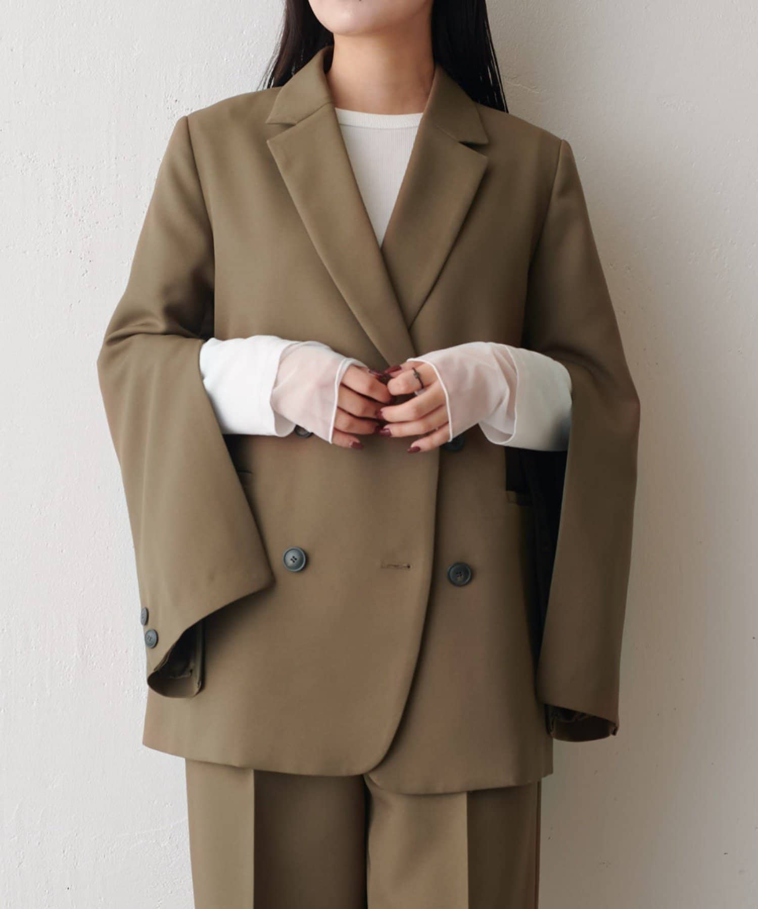 2WAYスリーブストレッチツイルオーバダブルジャケット