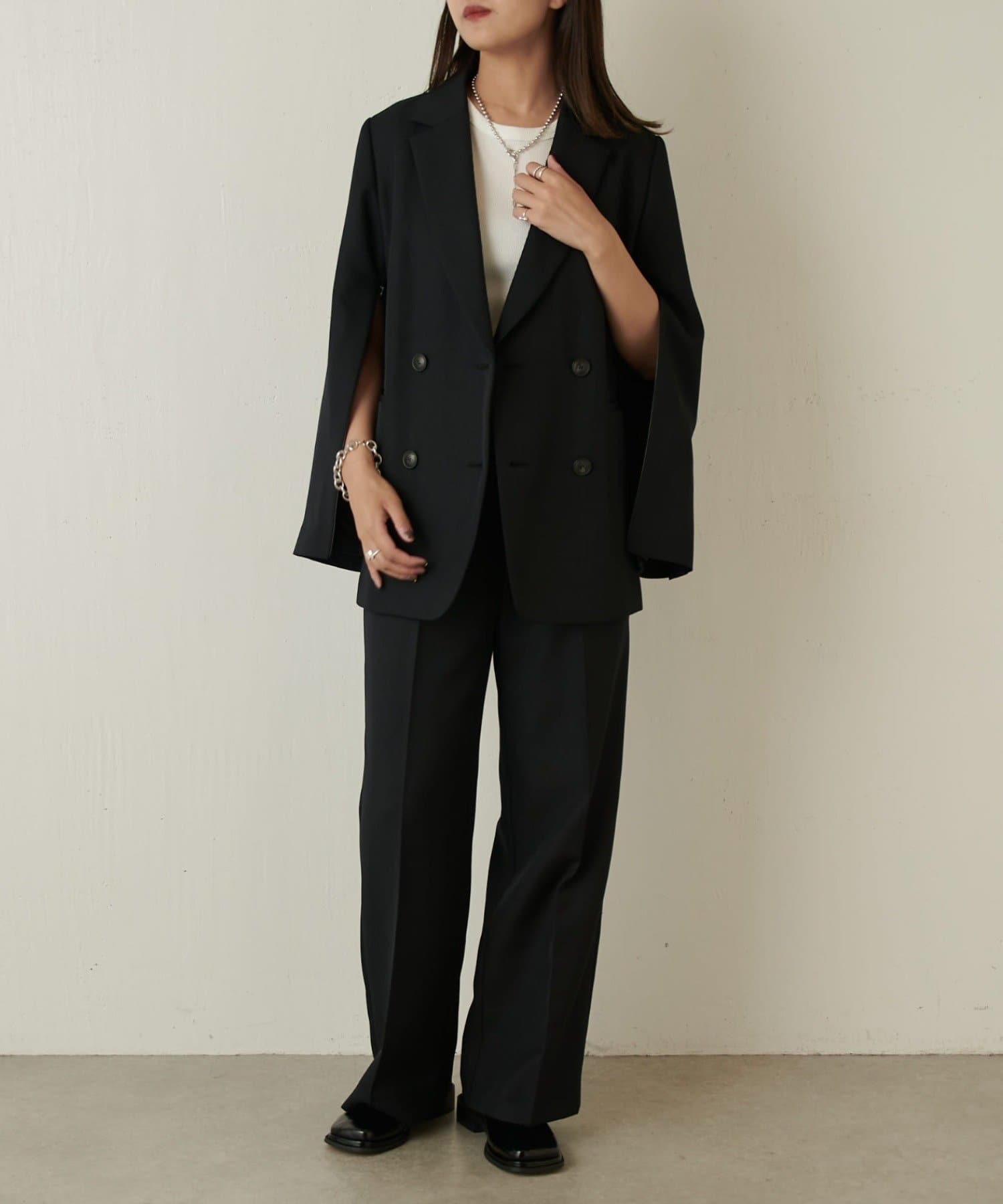 【 オケージョン◎ 】2WAYスリーブストレッチツイルオーバーダブルジャケット