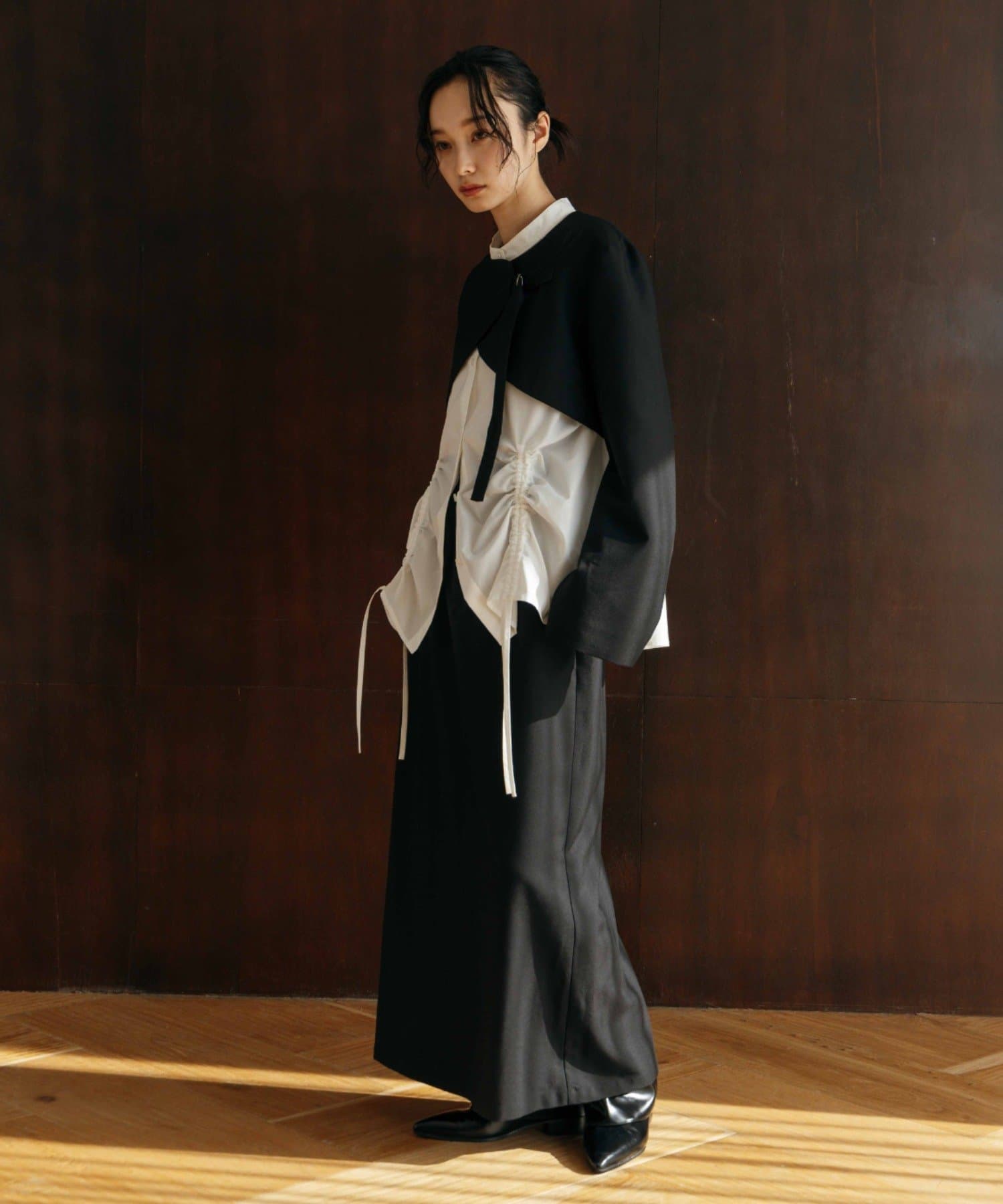 凛とした芯のある女性。 自立した、女性のワードローブをイメージ。洗練されたかっこよさの中に、女性らしさ・かわいさ・セクシーさを持つ。自分自身のスタイル(自分らしさ・個性・生き方・感覚...)を表現できるひとつの手段としての服。肩肘張らない、心地よいリラックス感のあるスタイルを上質な素材、優雅なシルエットで提案。