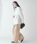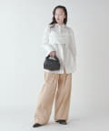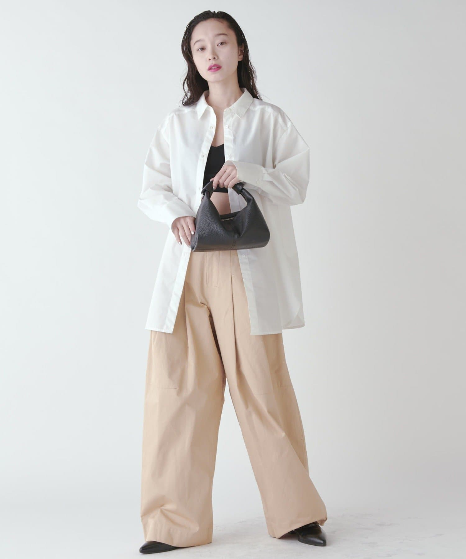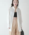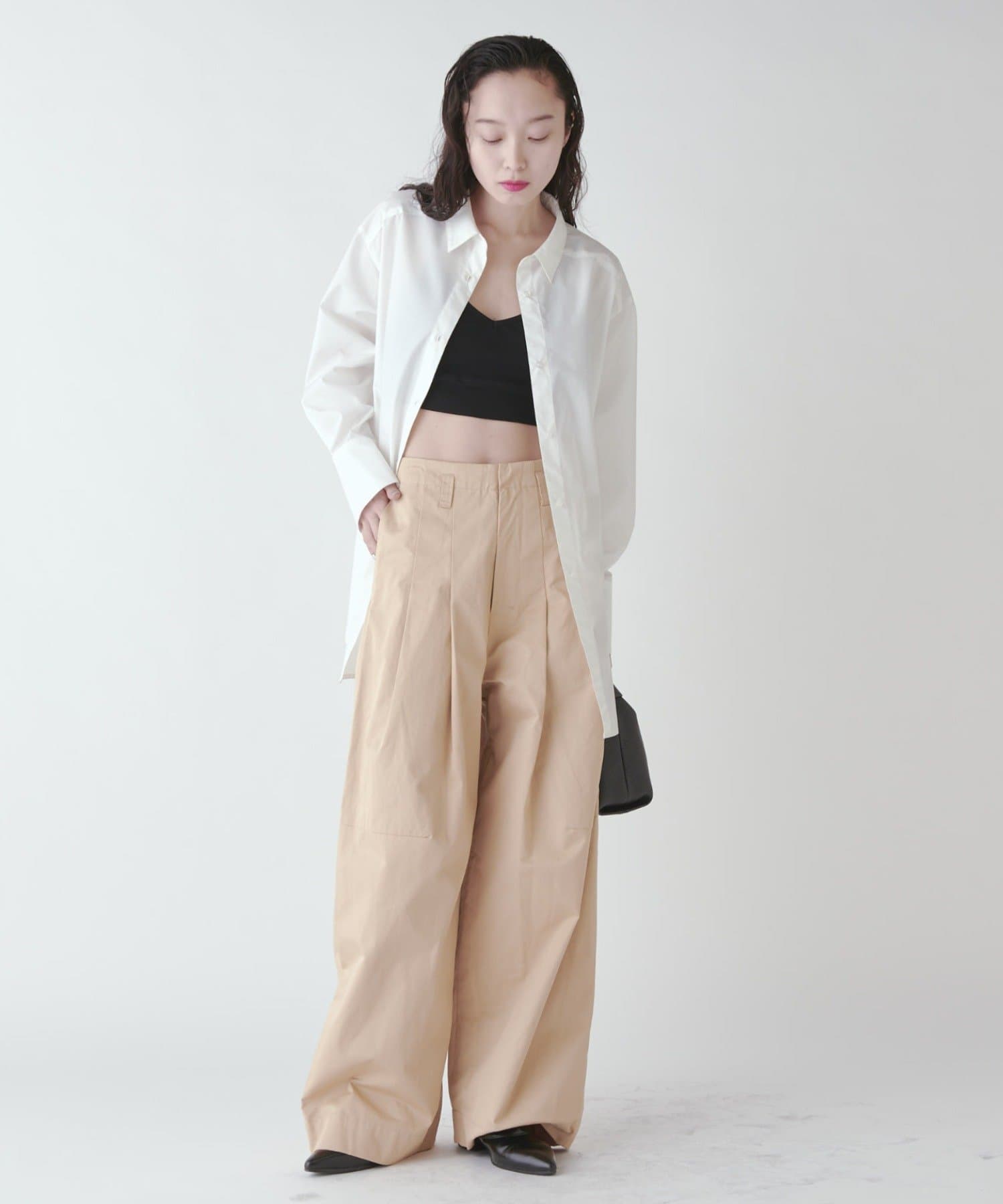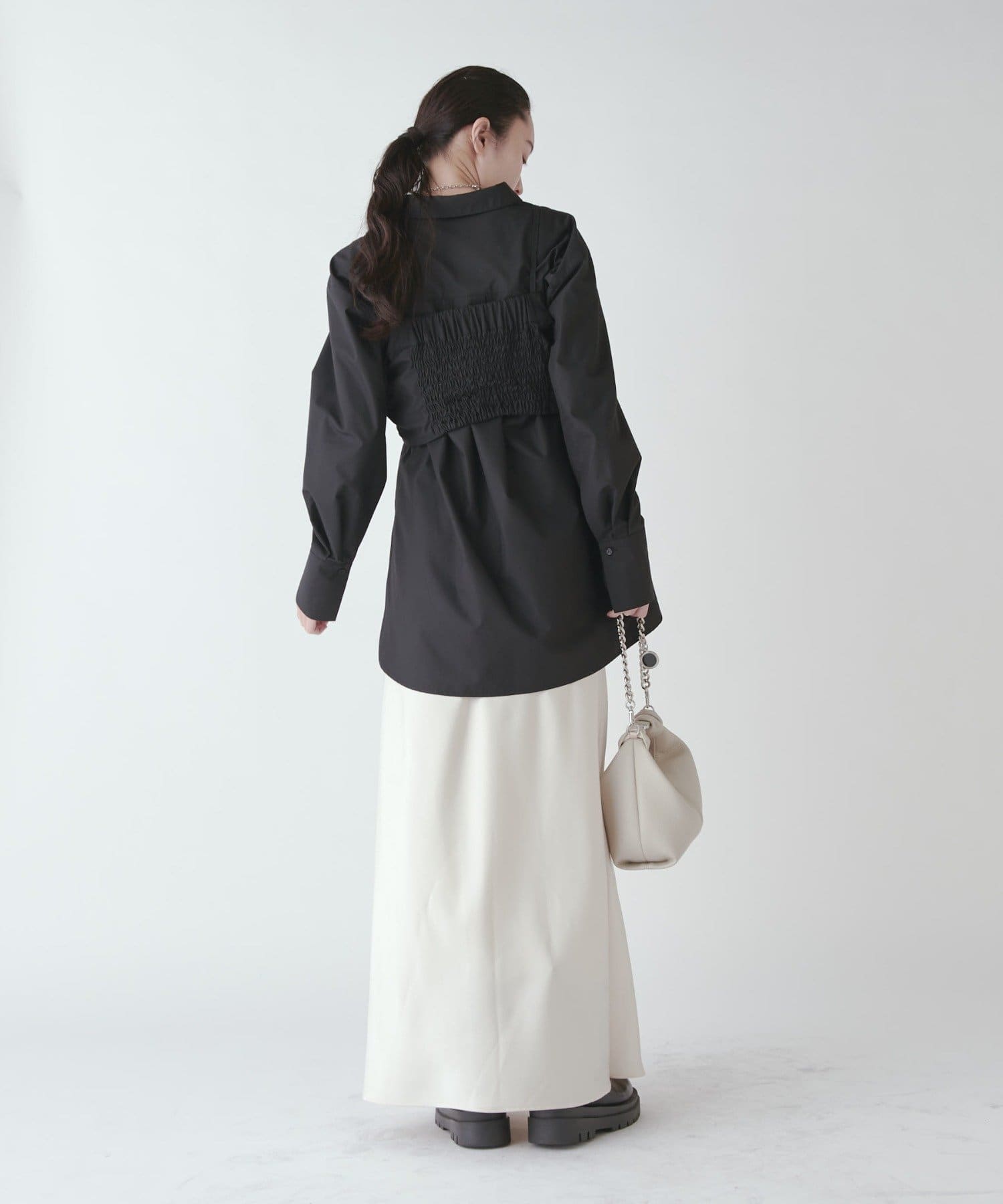 同素材のビスチェトシャツがセットで、クリーンでまとまりのあるスタイリングに。