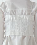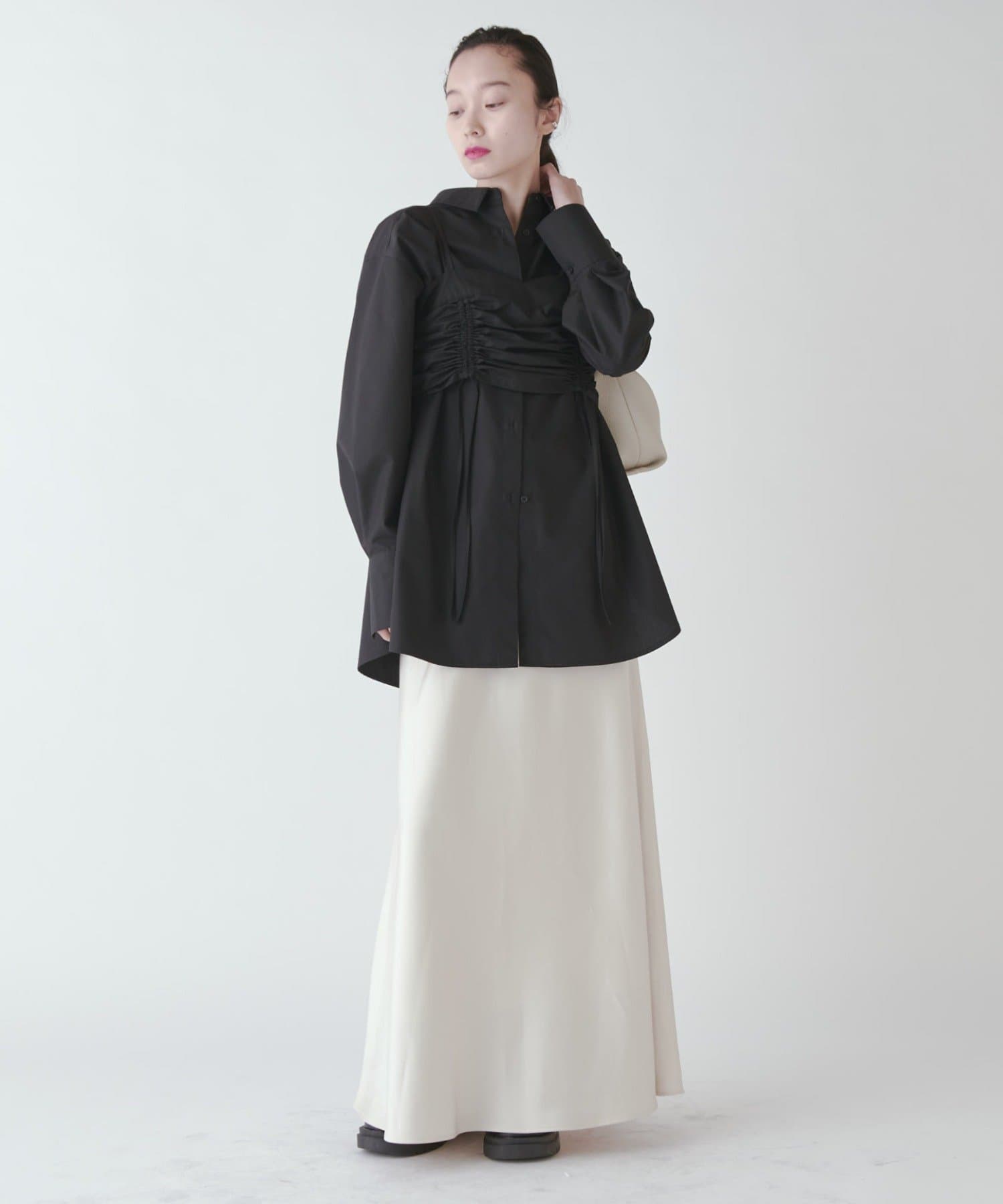 ビスチェはドロスト仕様なので調節で形を変えて着用を楽しめるのもポイントです。