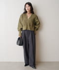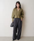 ゆるっとしたシルエットのなかにも、シャープなVネックラインですっきりとした印象に。