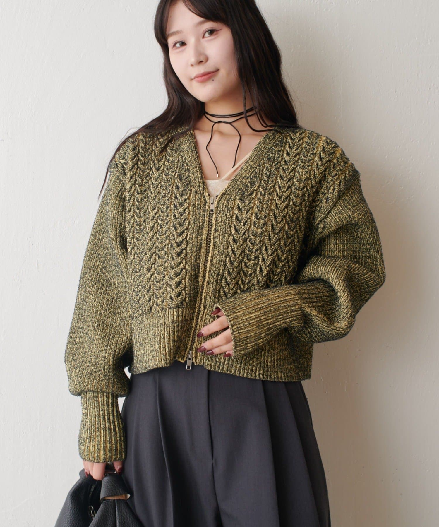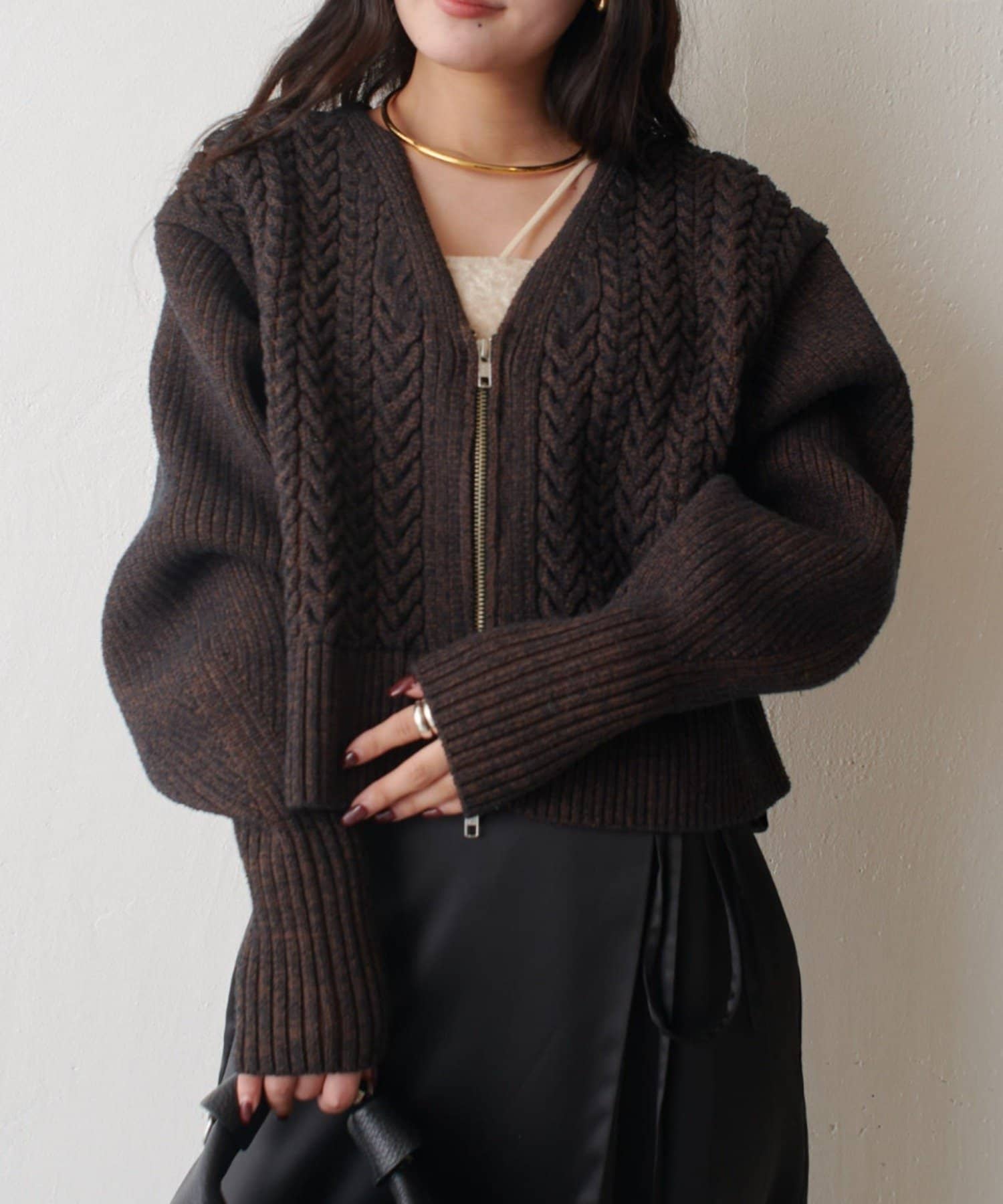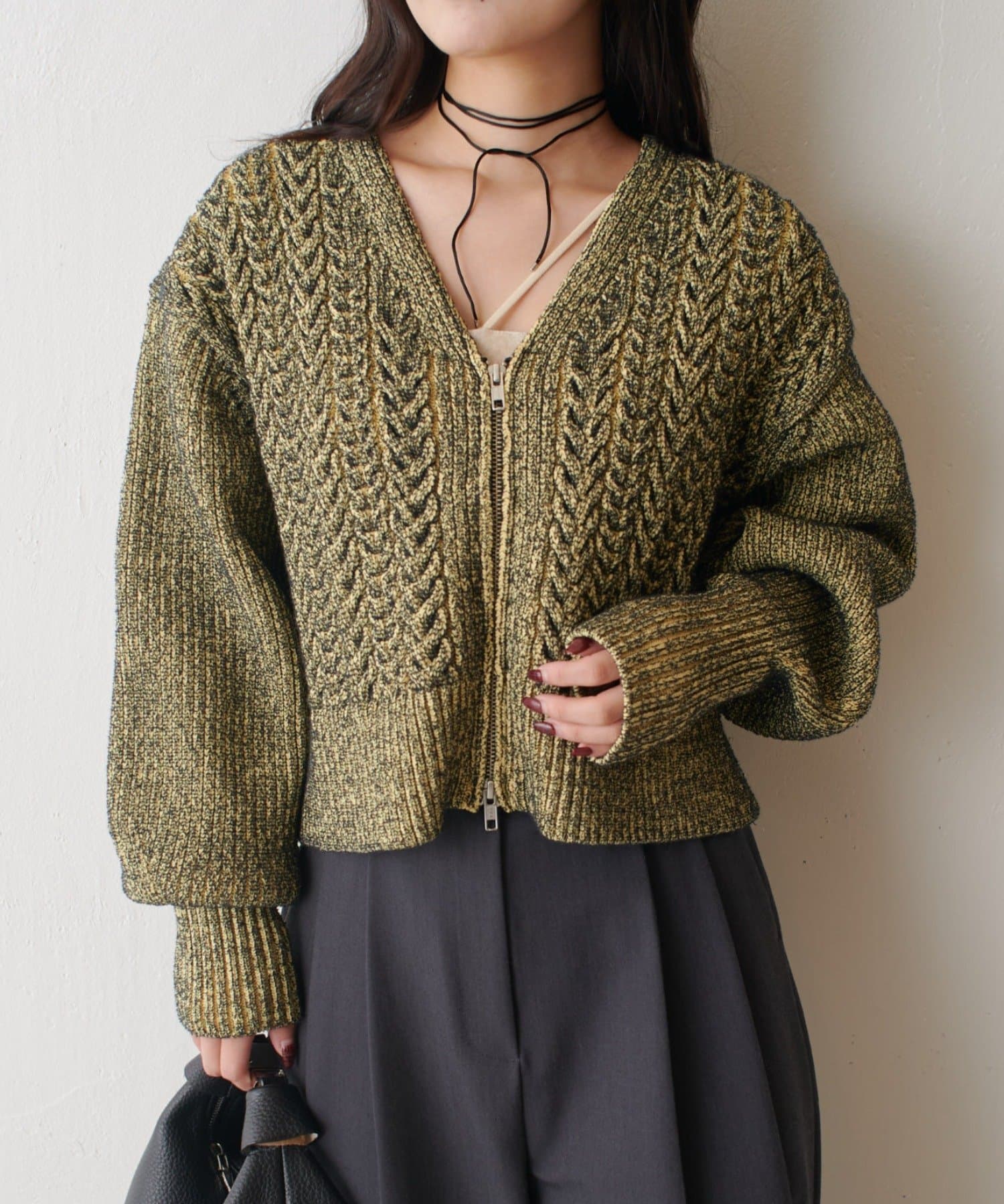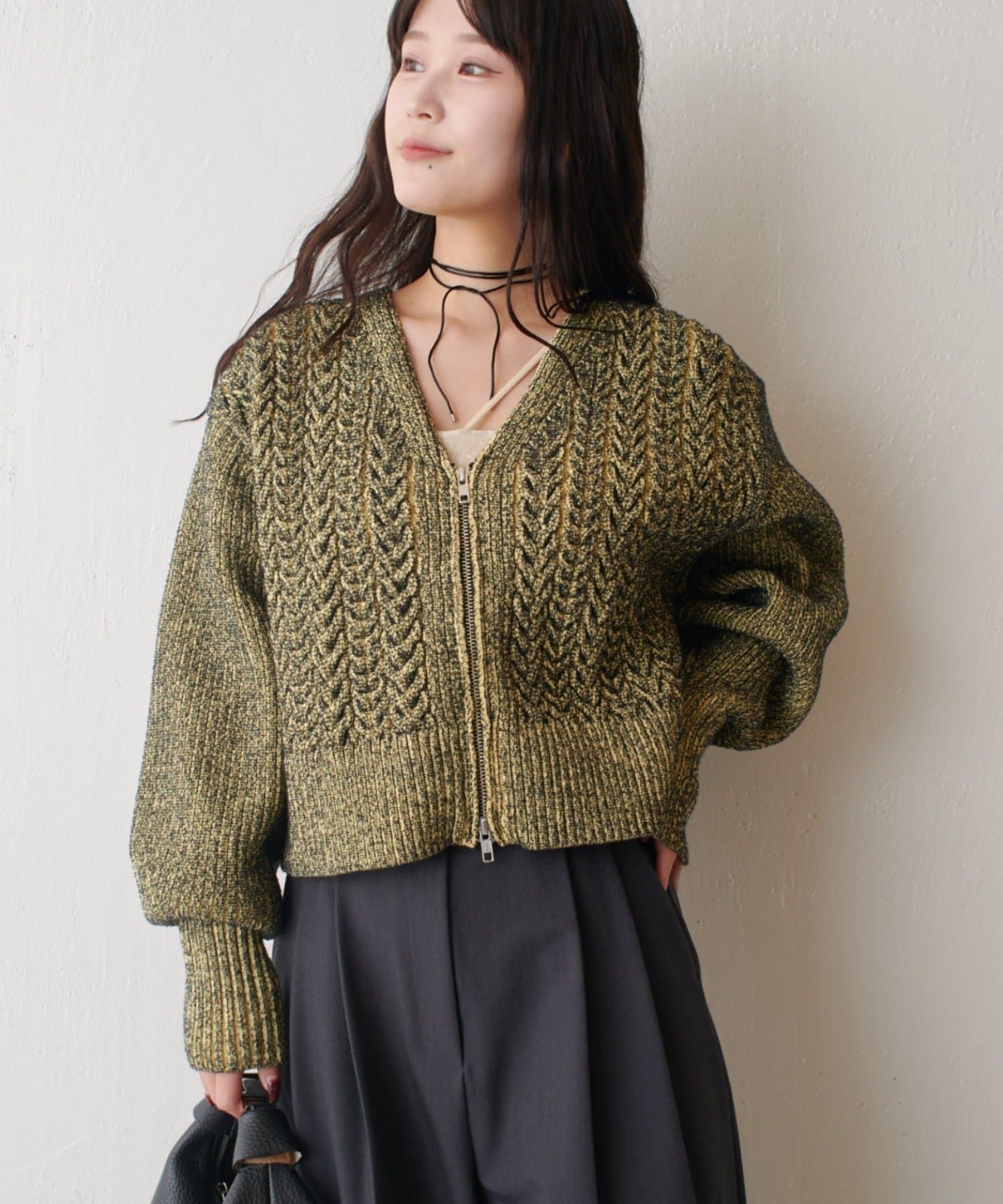 TOP > Lui's > レディース > トップス > カーディガン/ボレロ > ケーブルジップVネックカーディガン