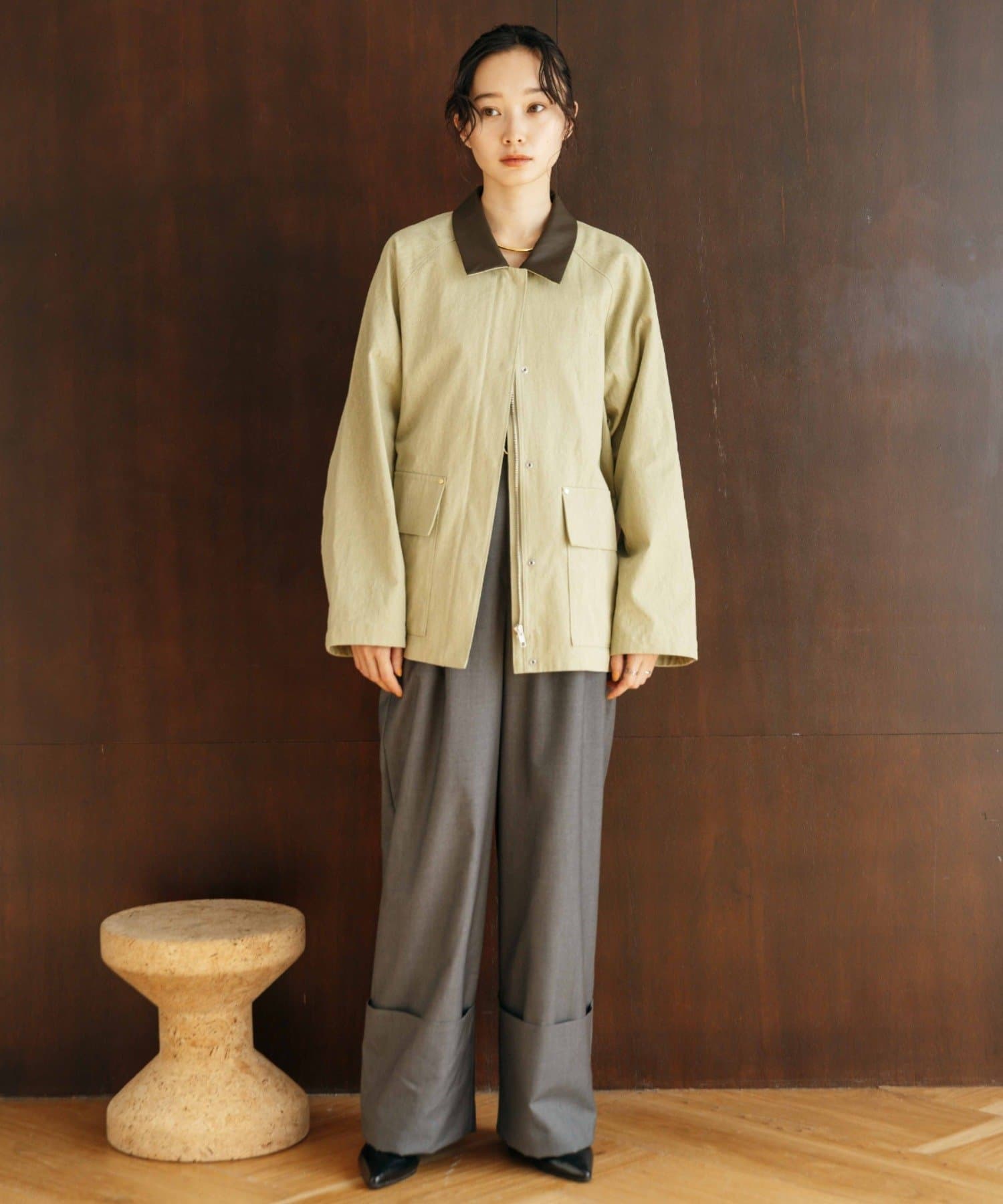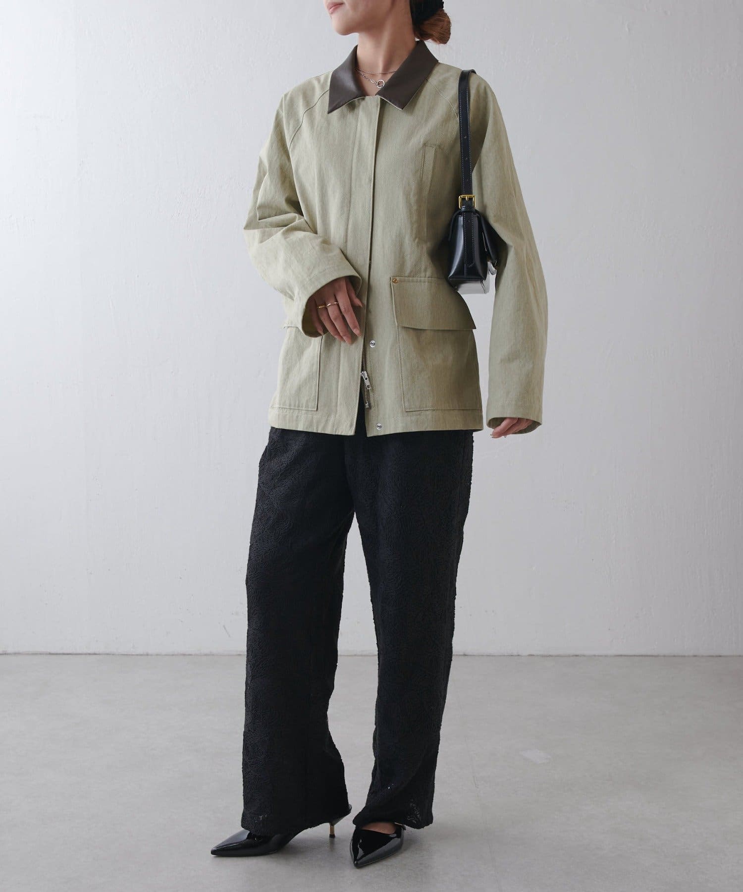 軽さと生地のパリッとした表面の質感で自然なシワ感が演出され、好バランスなキレイめカジュアルを演出します。