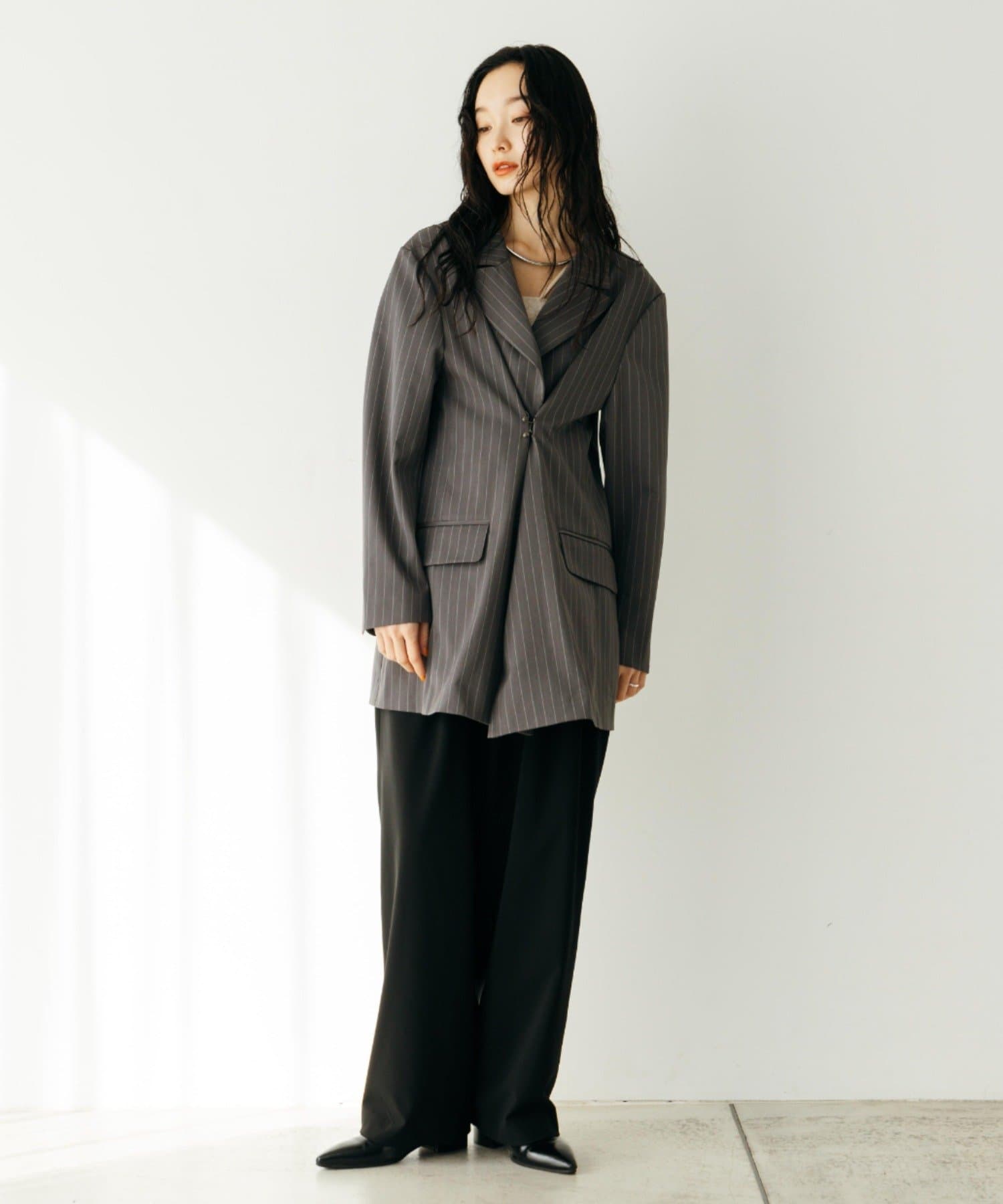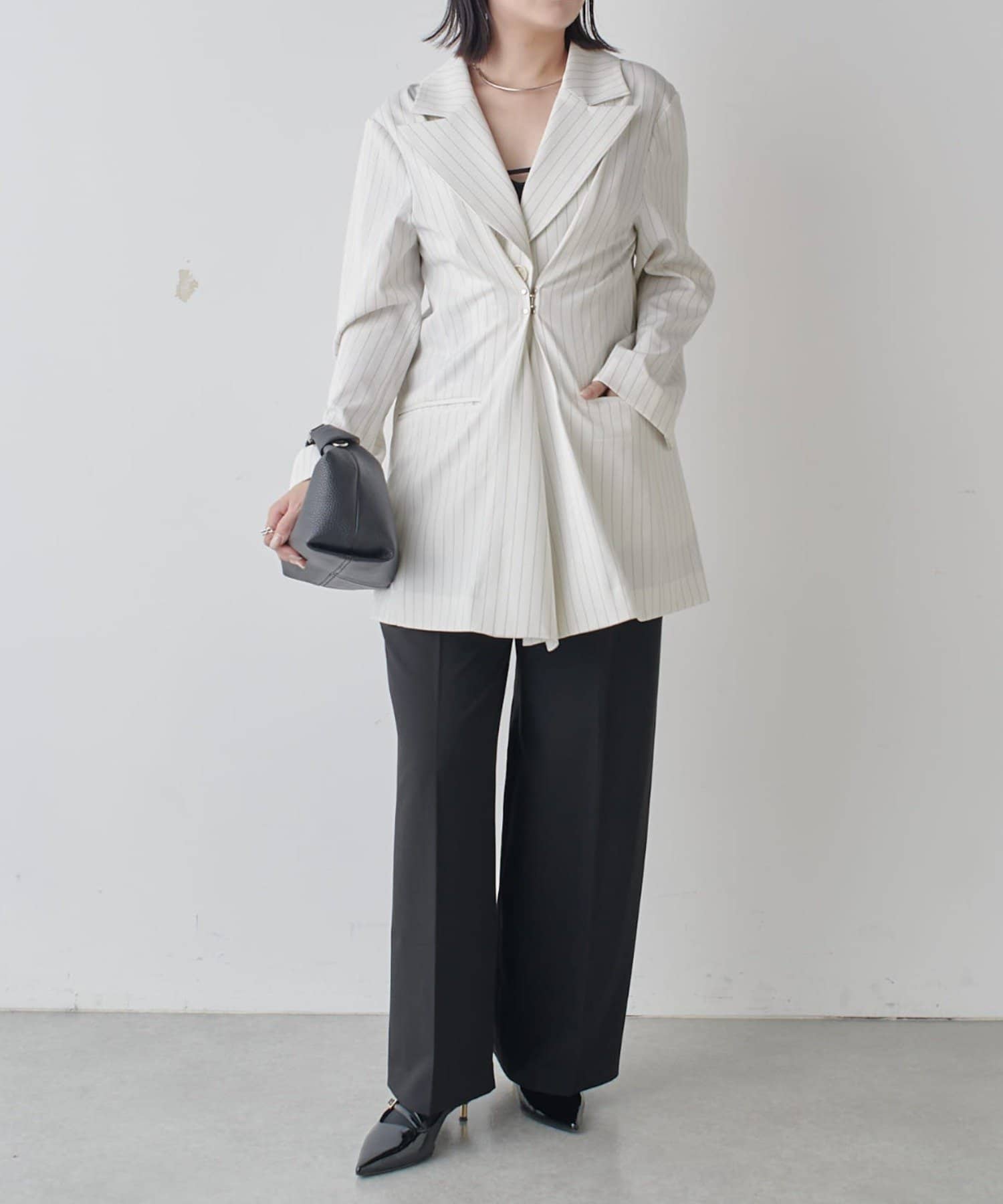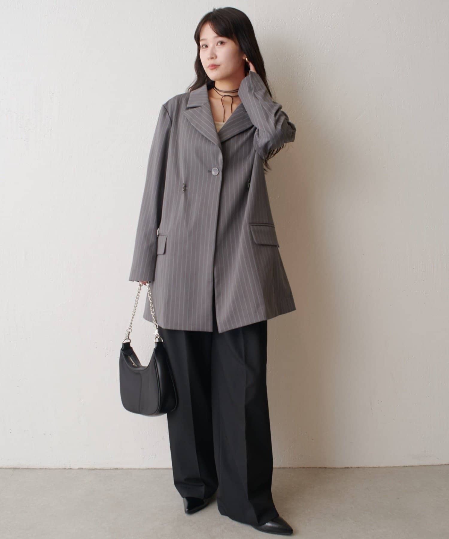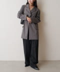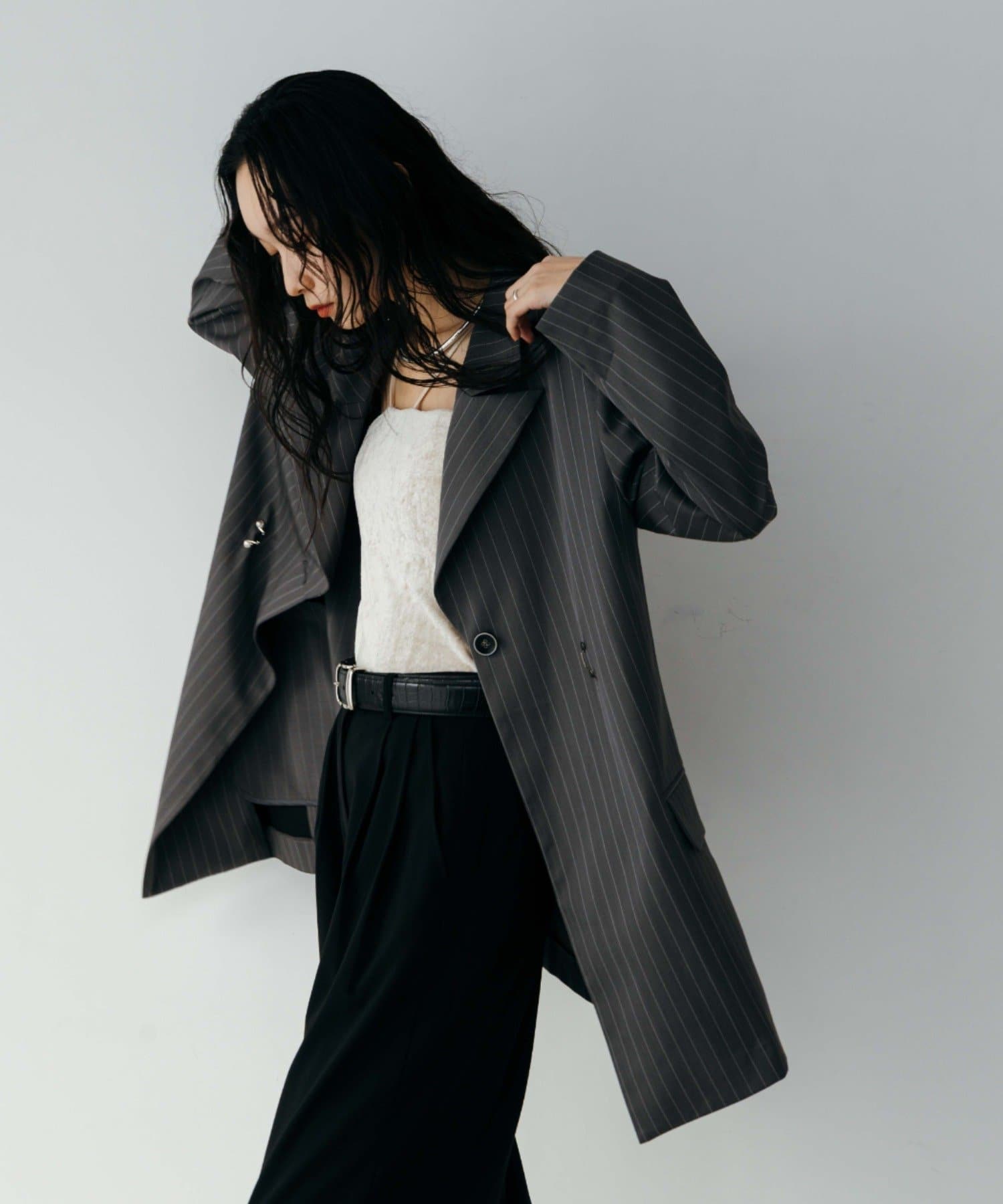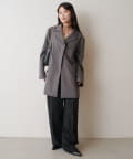 存在感のある大き目のラペルはモードな雰囲気が演出されます。