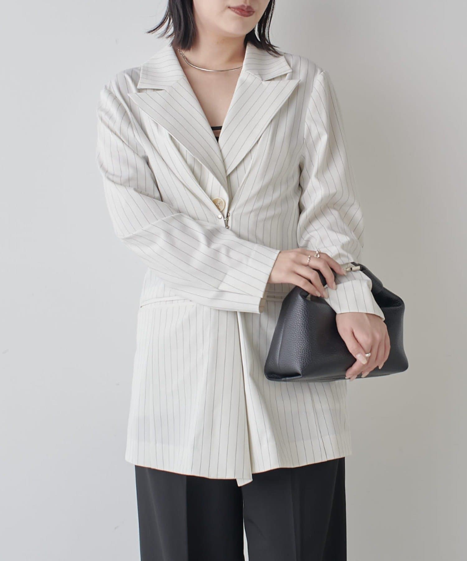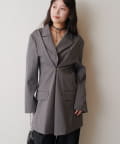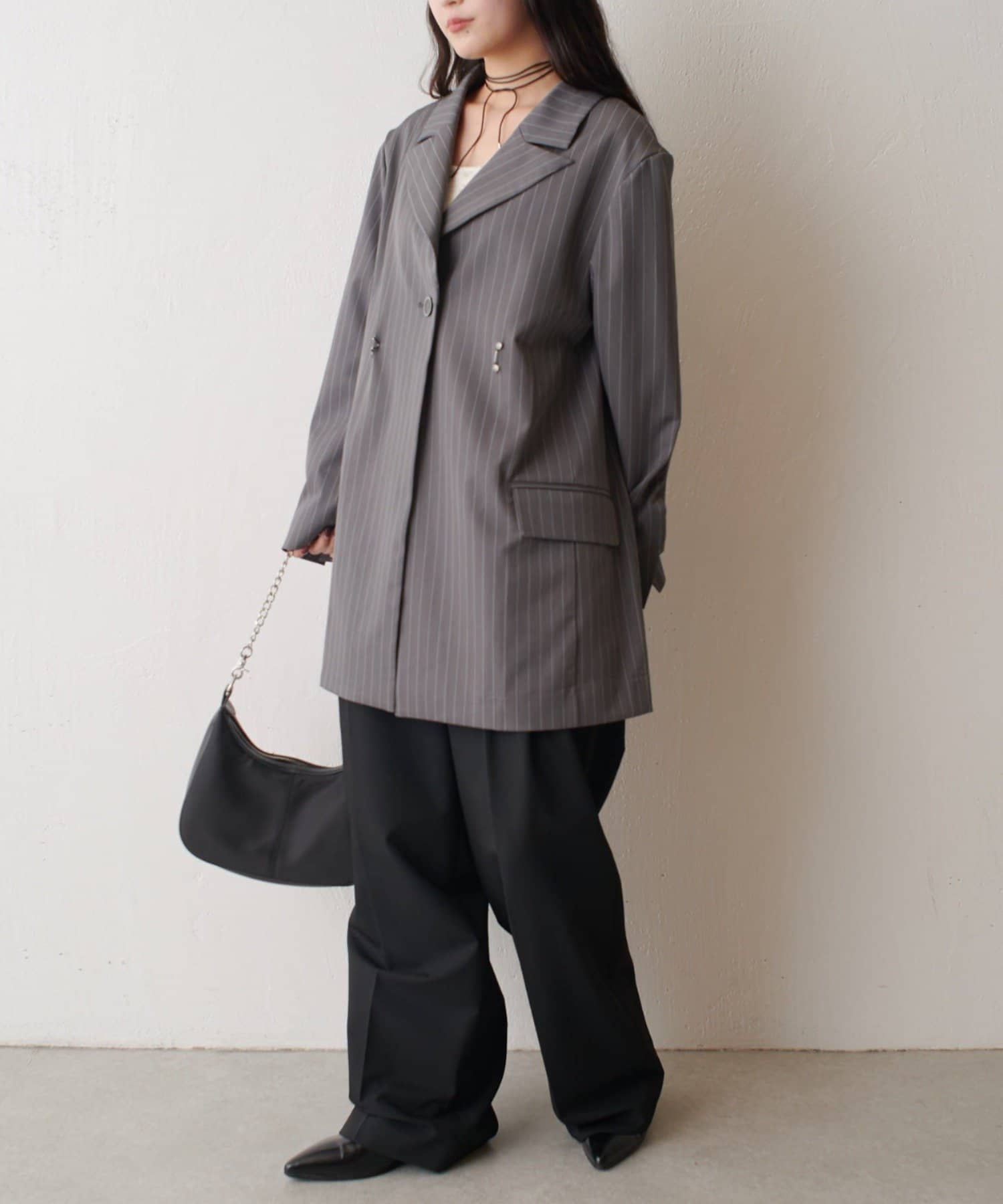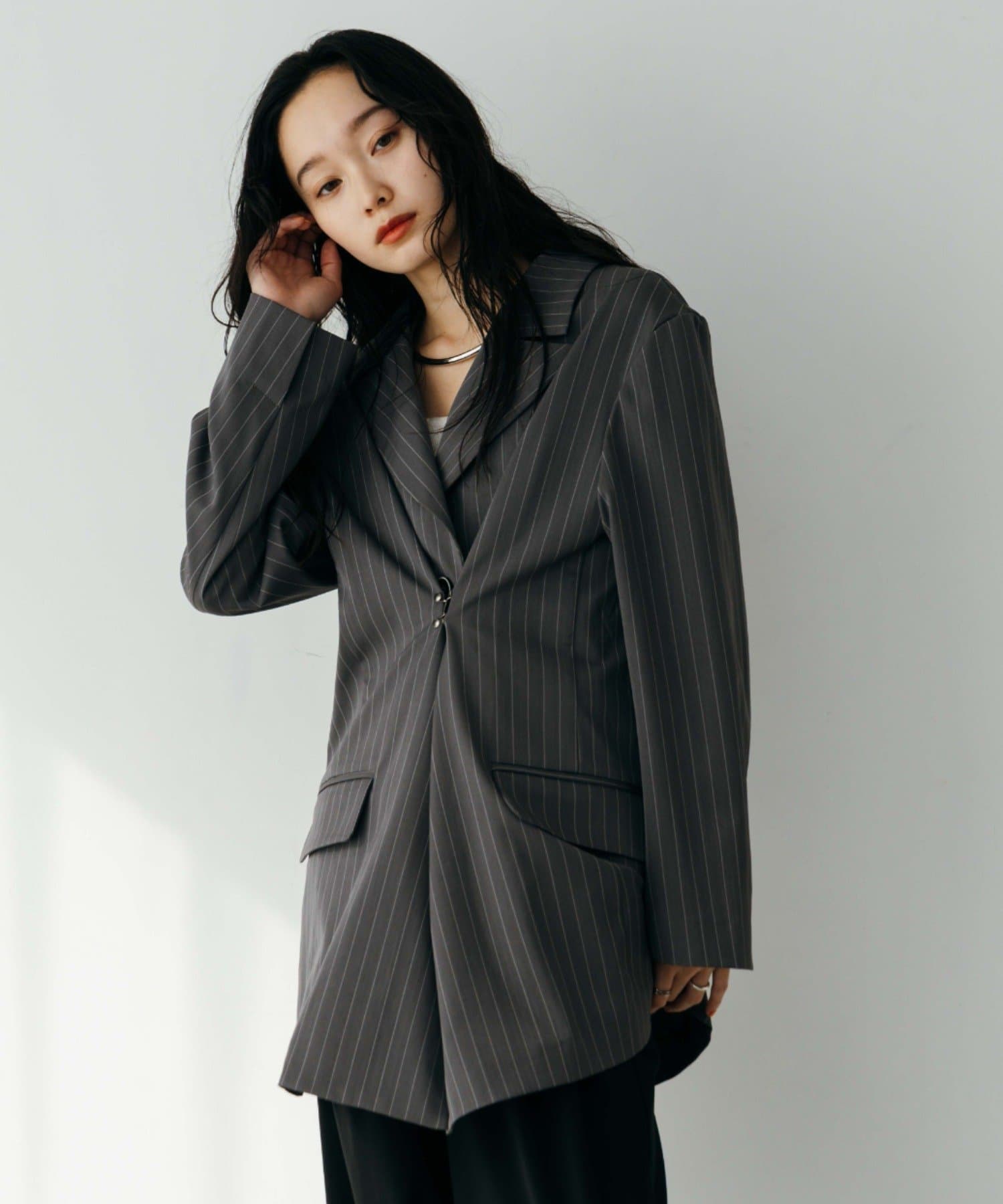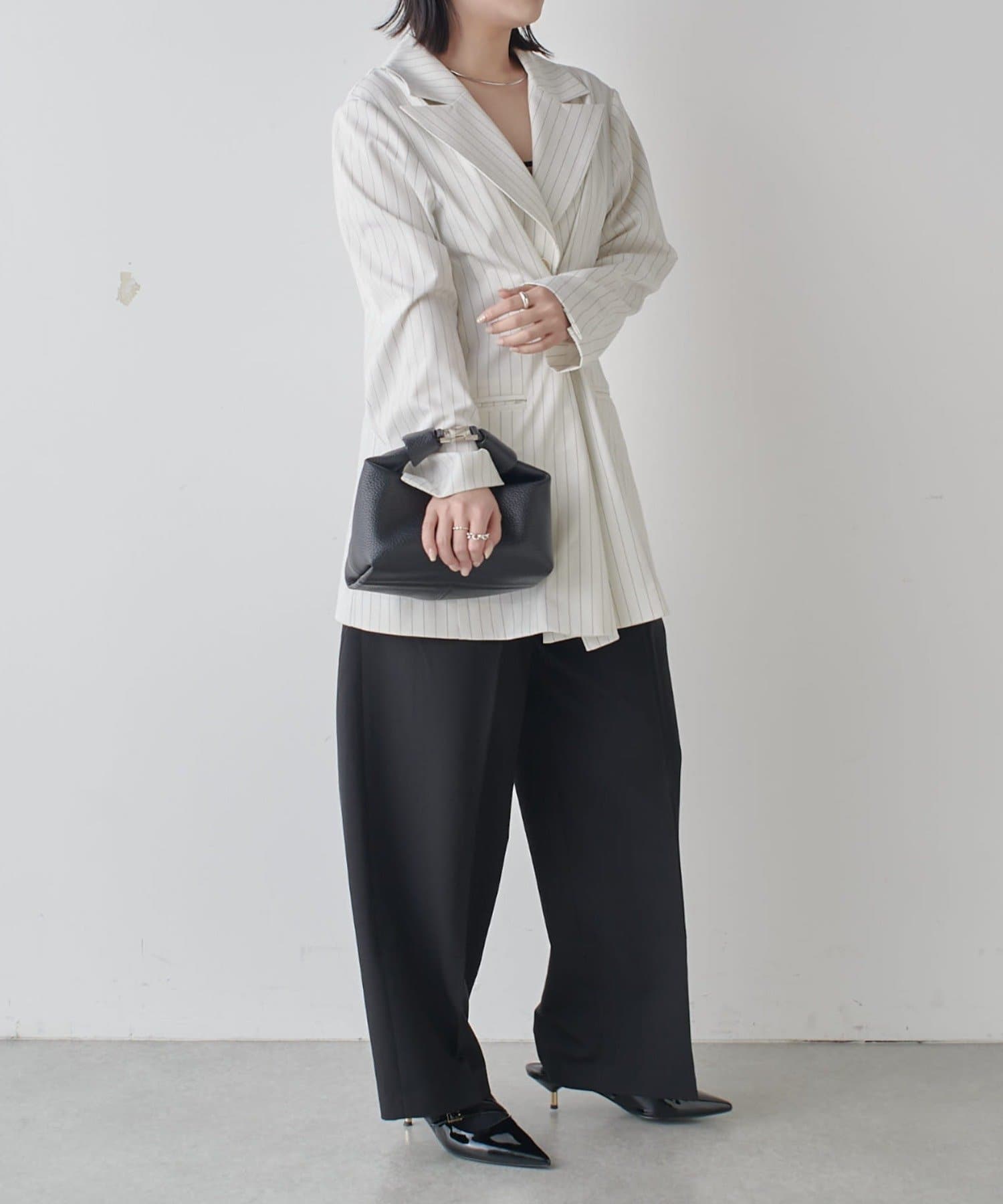 存在感のある大き目のラペルはモードな雰囲気が演出されます。