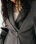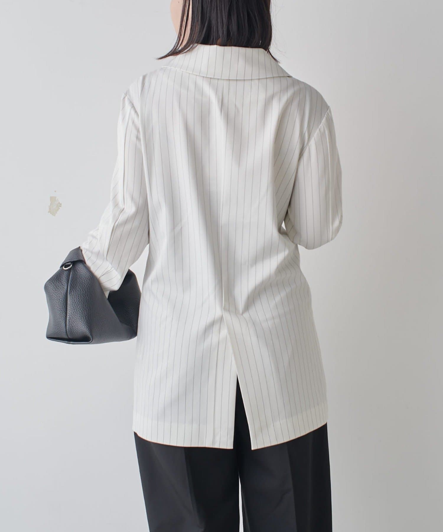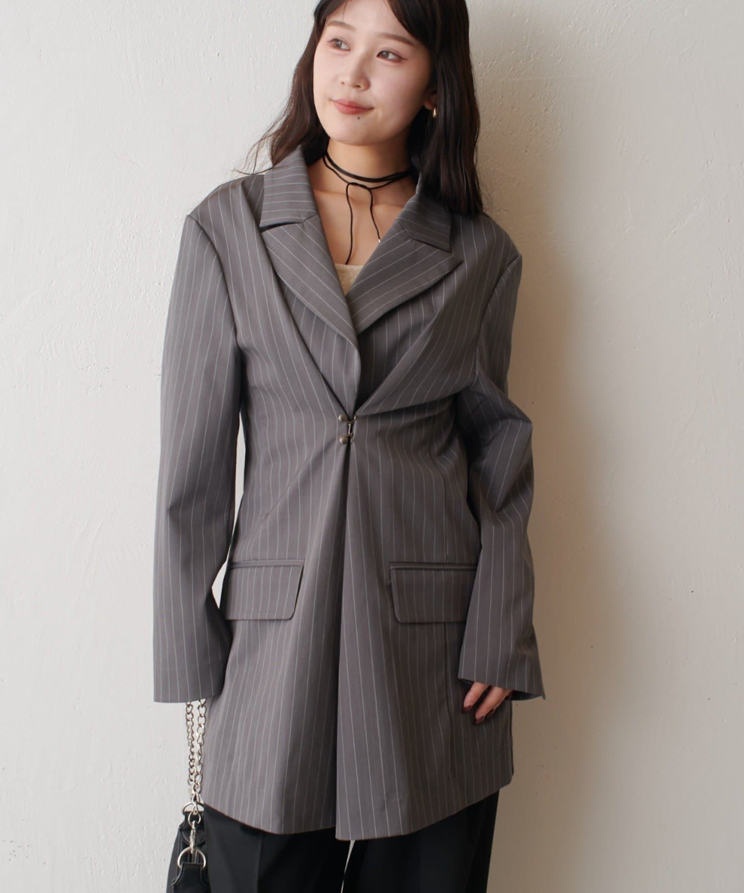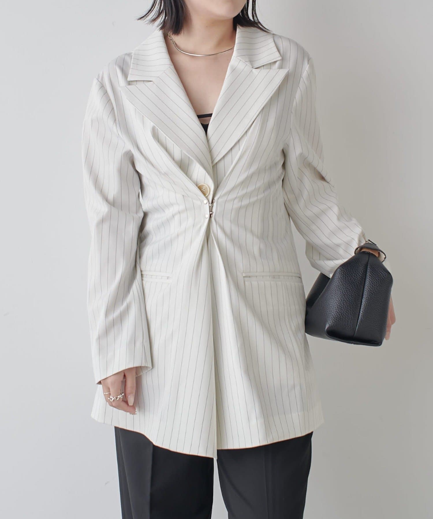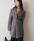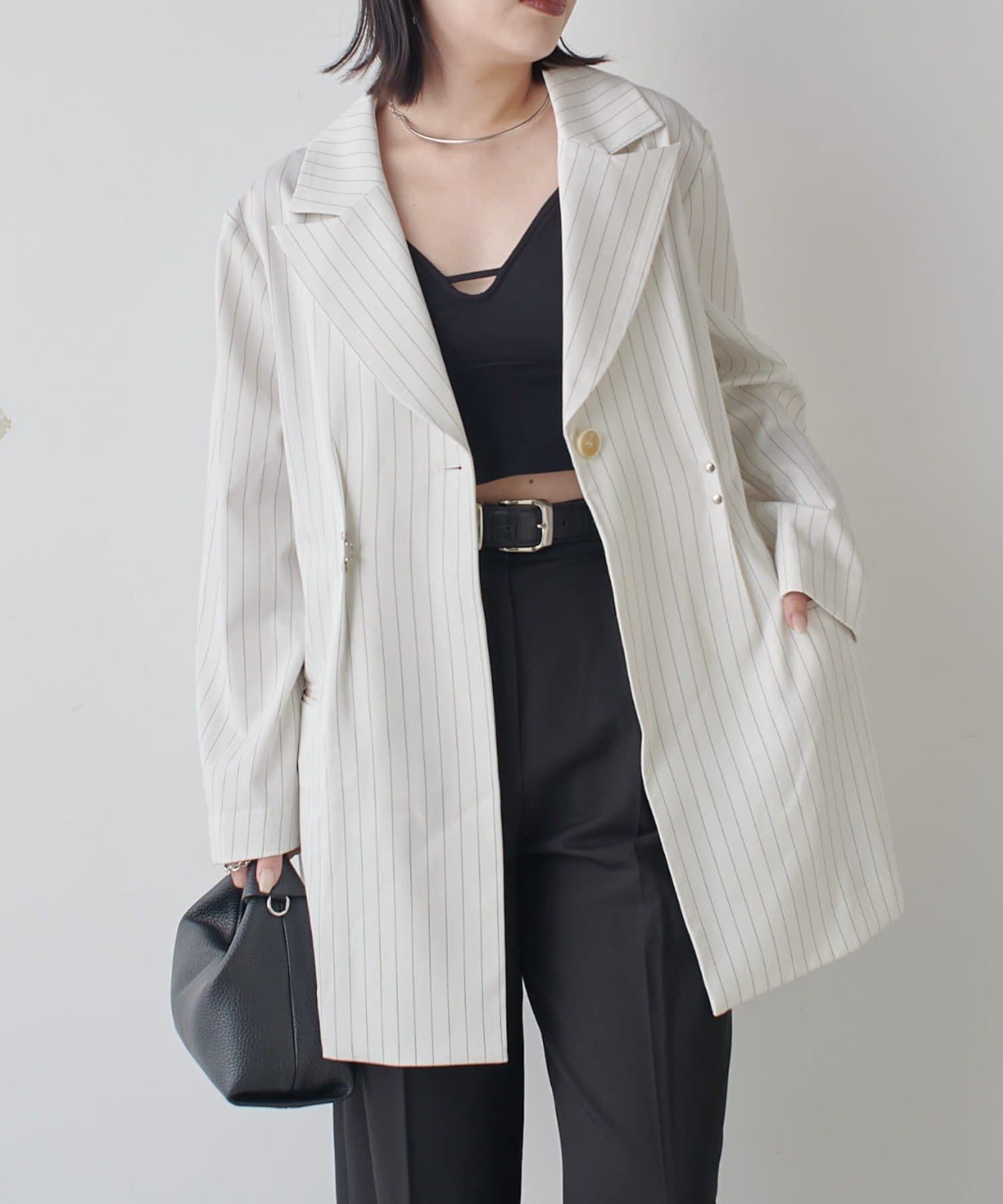 存在感のある大き目のラペルはモードな雰囲気が演出されます。