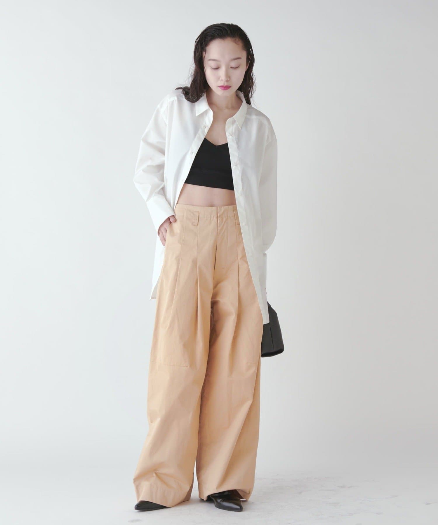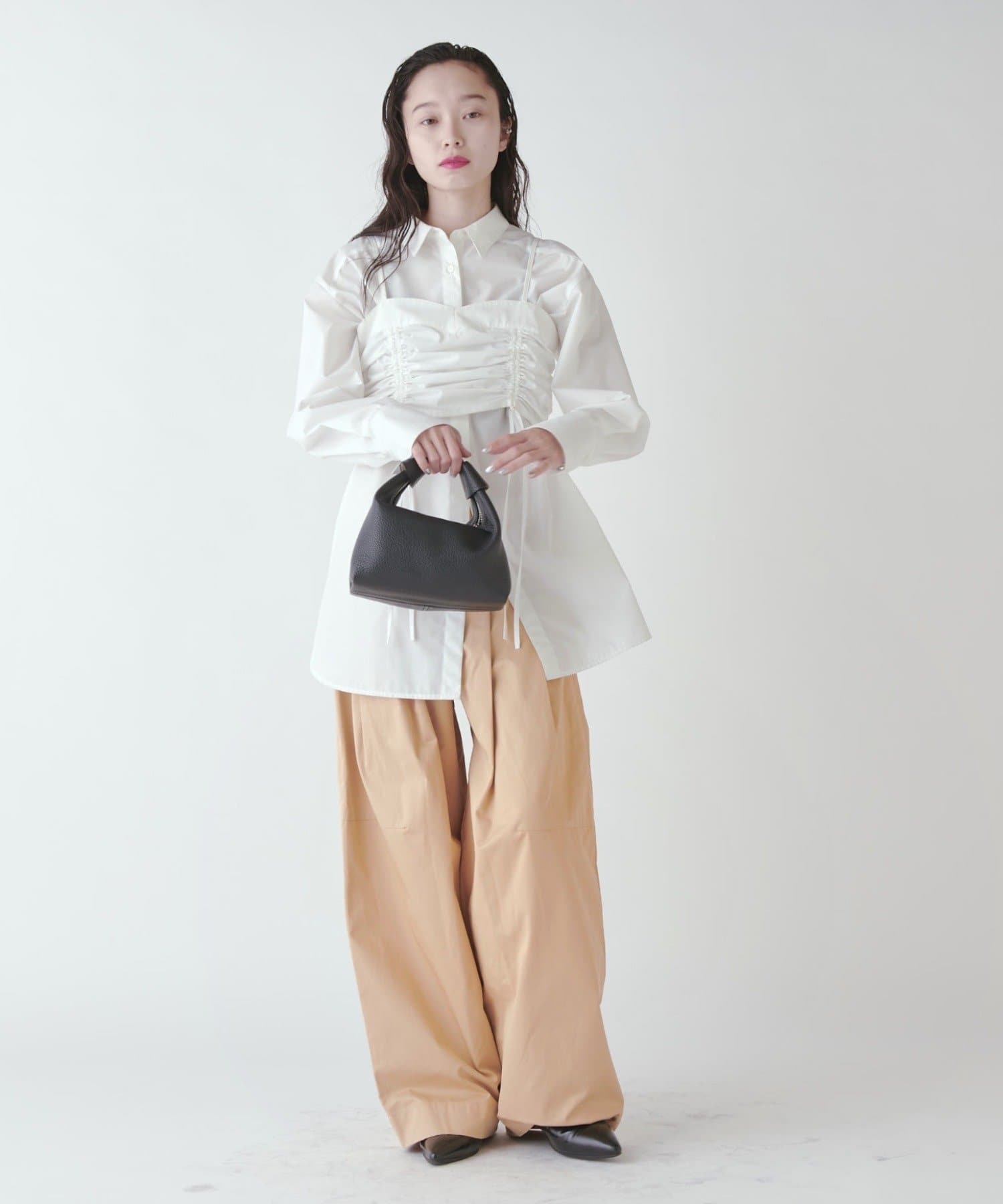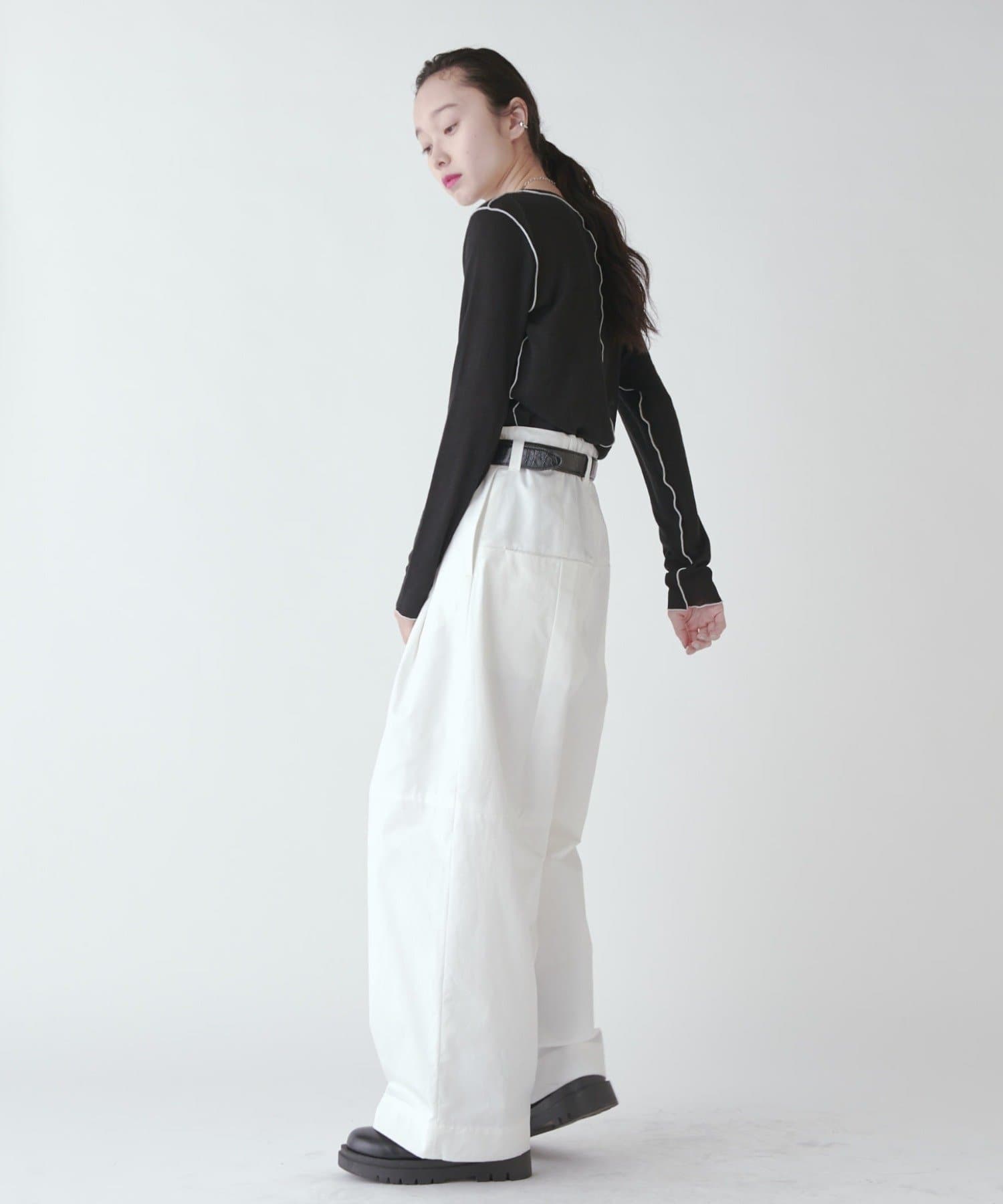 パンツのボリューム感に対してコンパクトなトップスで合わせるのもかわいいですし、