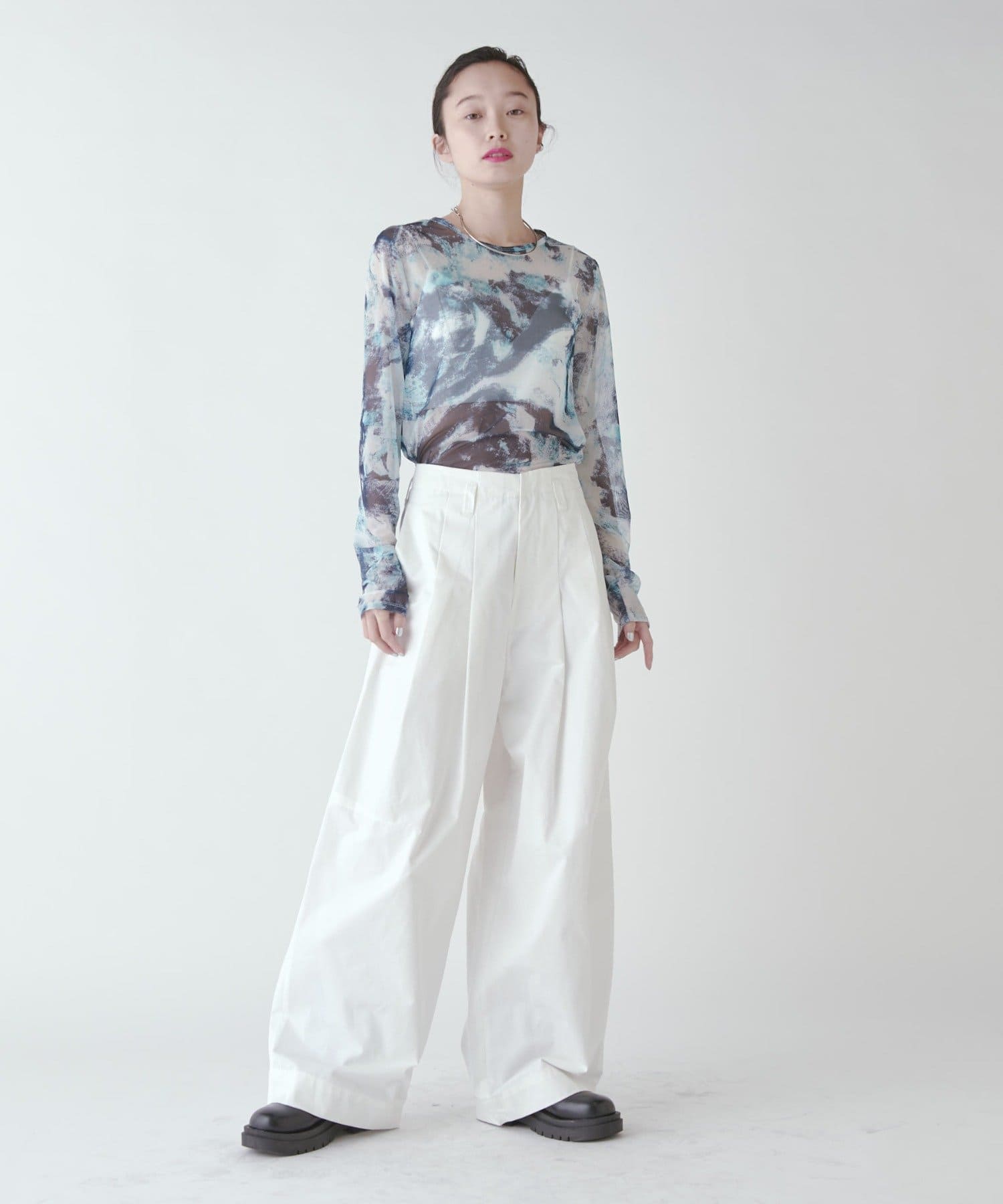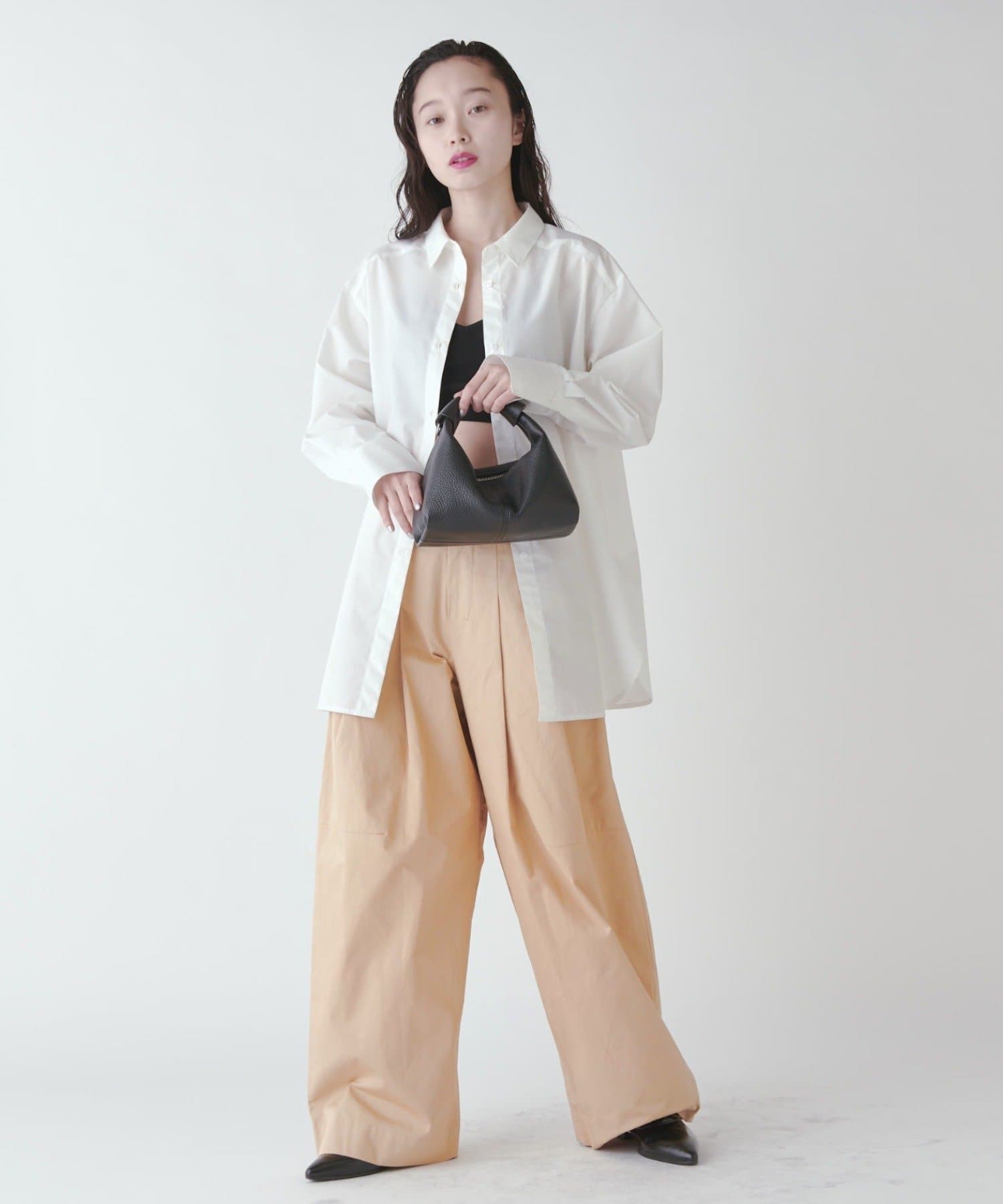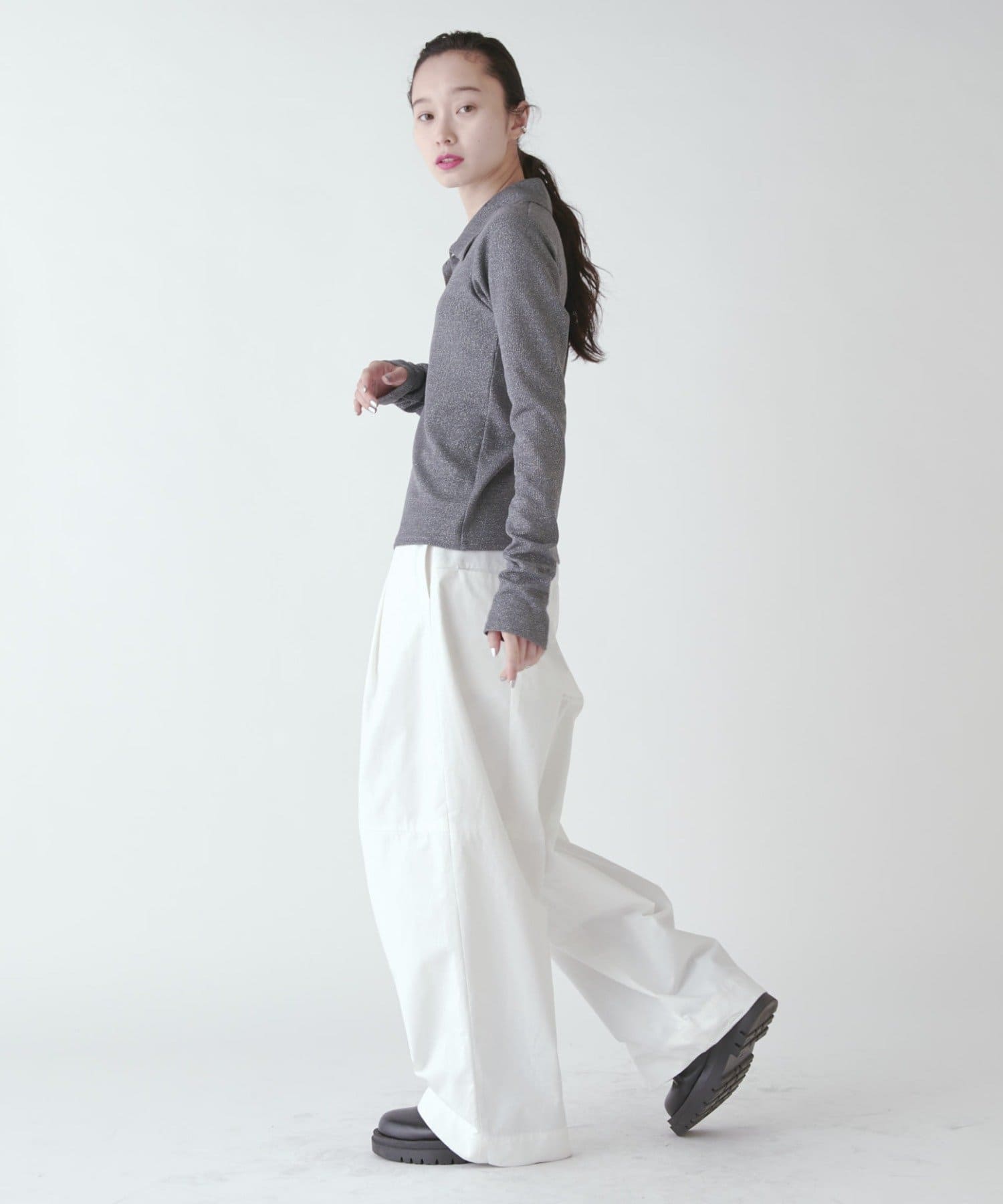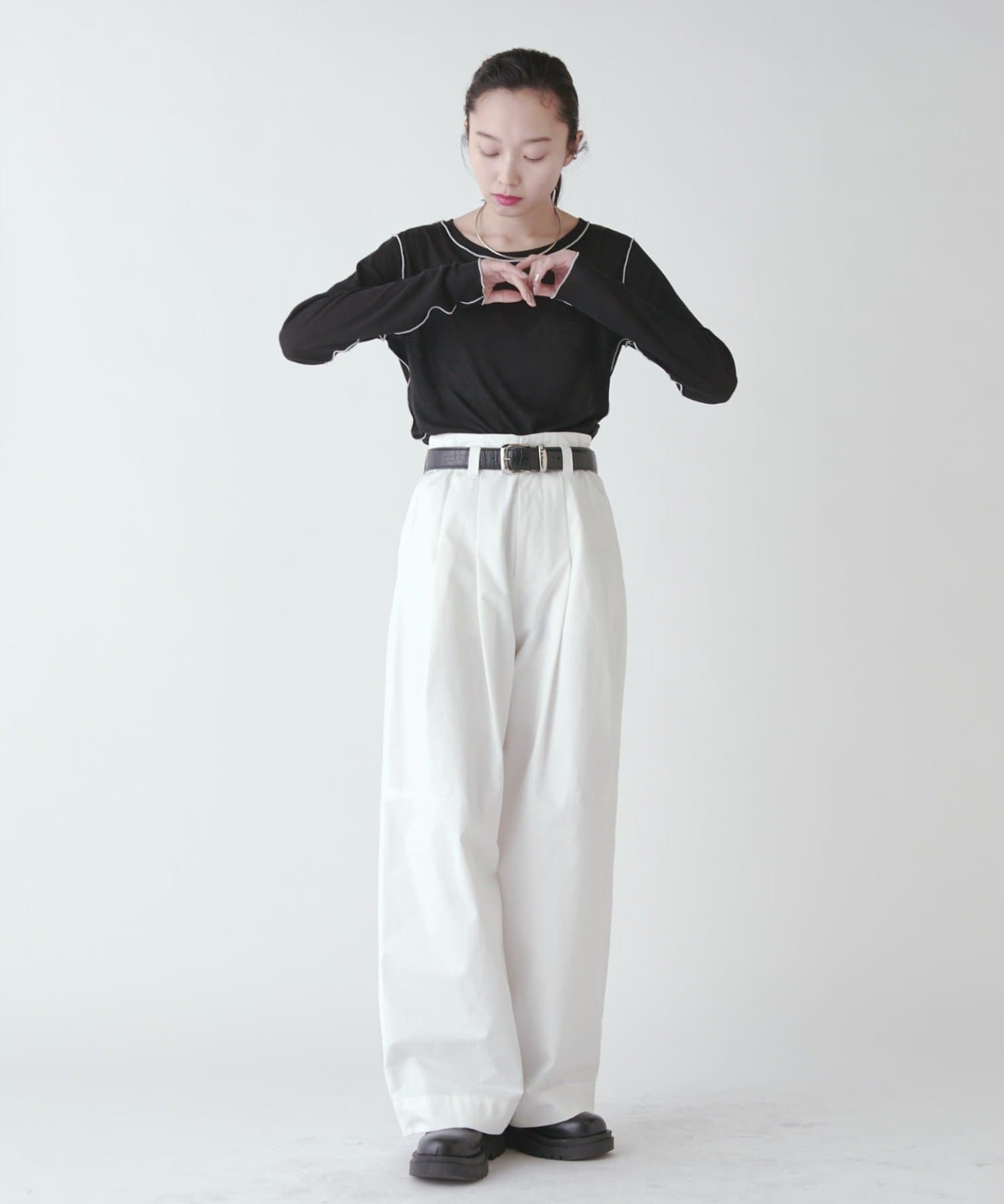 パンツのボリューム感に対してコンパクトなトップスで合わせるのもかわいいですし、