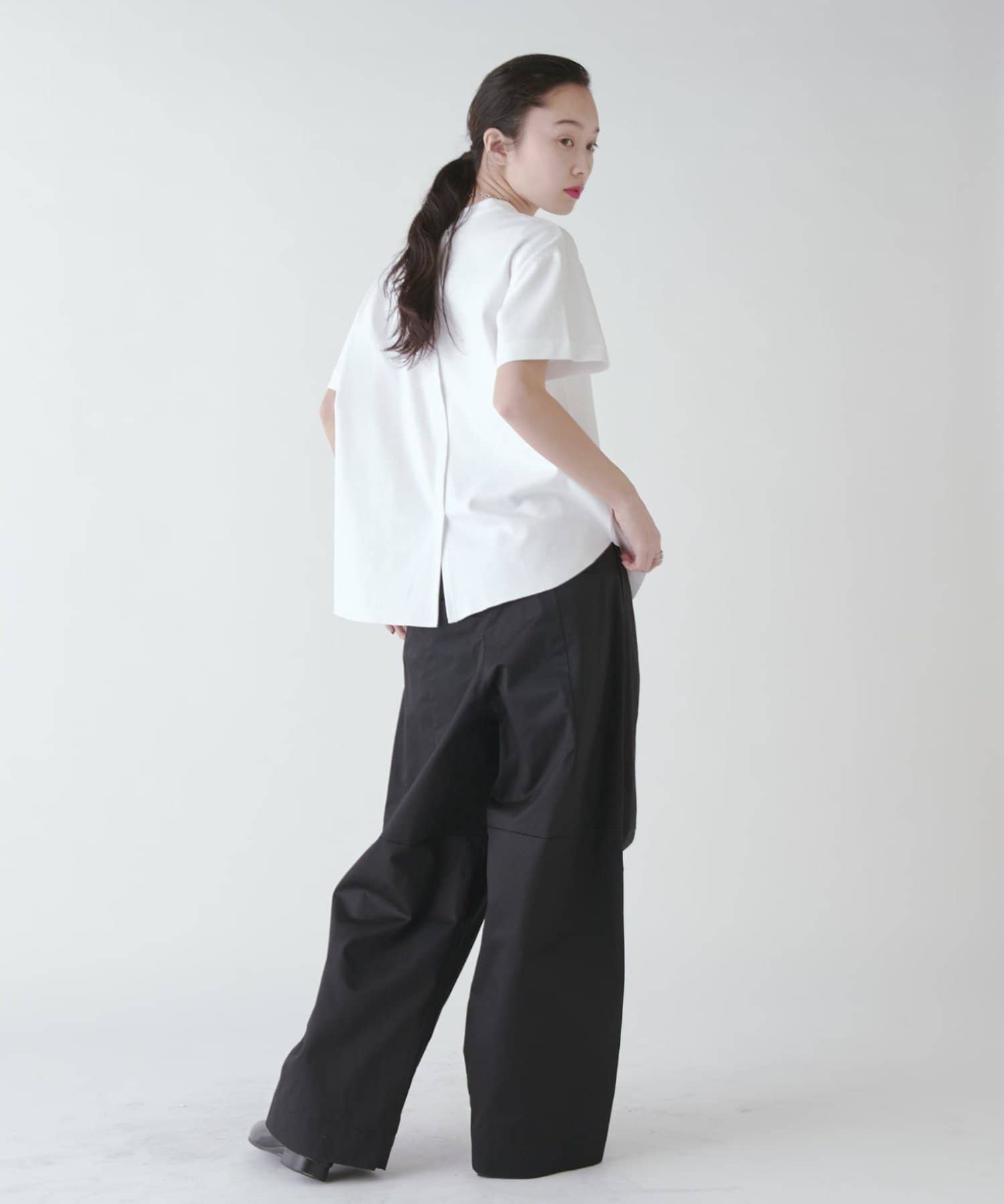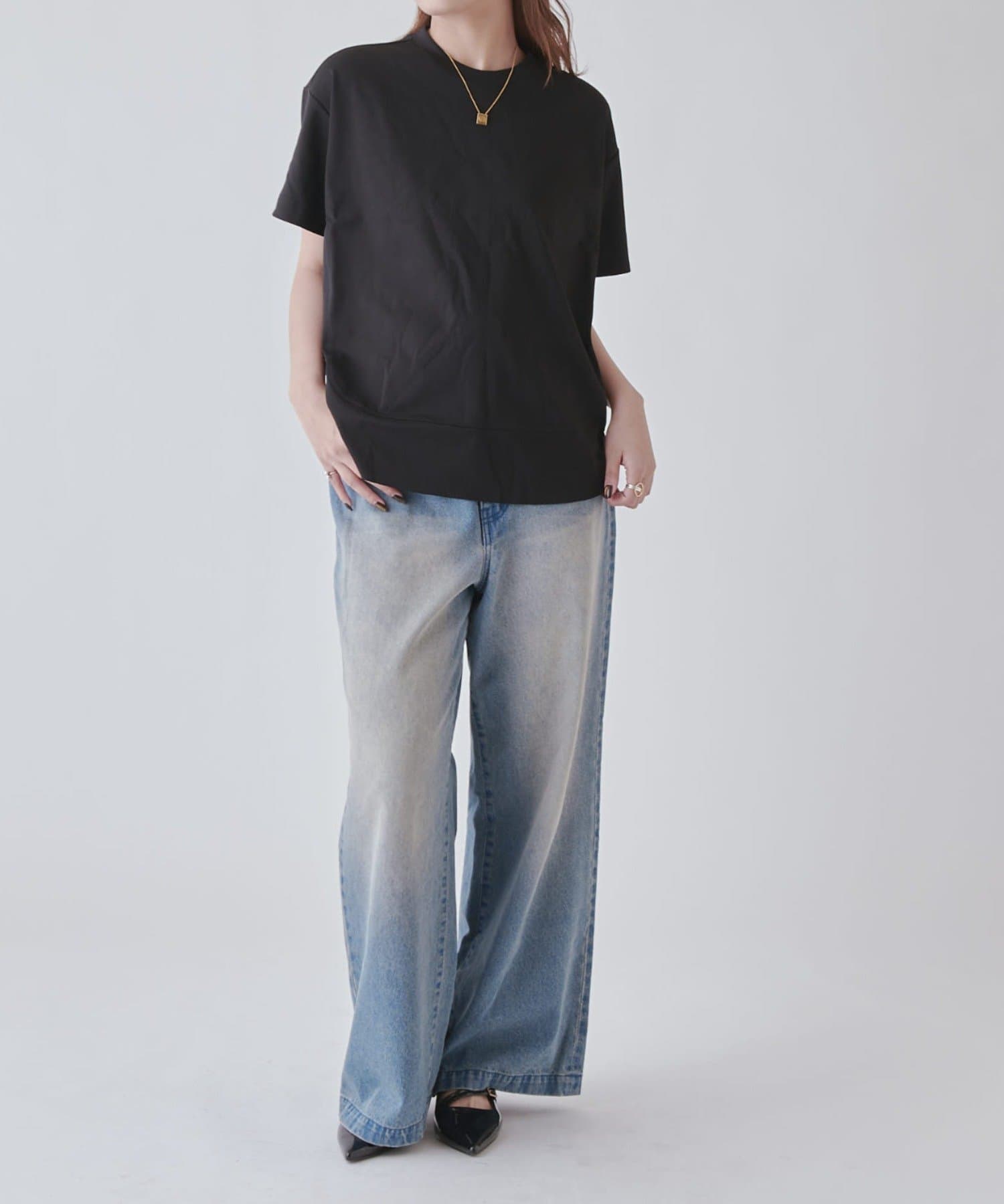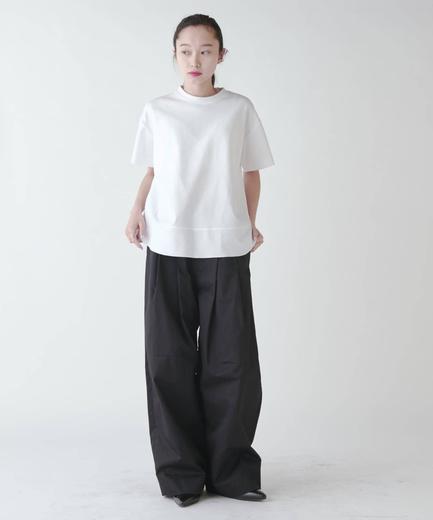 ベーシックながら一枚で着映えするアイテムなのでシンプルにデニムやワイドパンツと合わせたスタイルも◎落ち感のあるパンツや柄もののボトムスとも好相性です!
