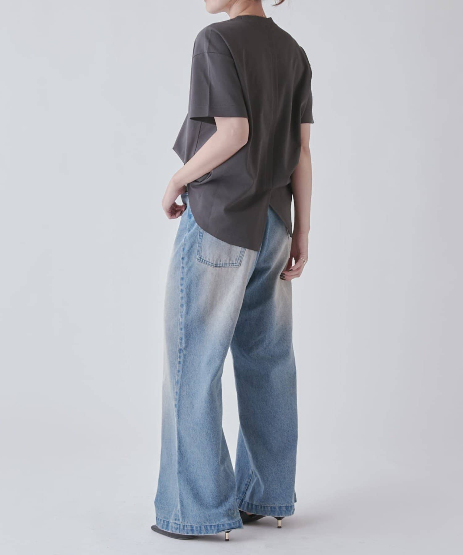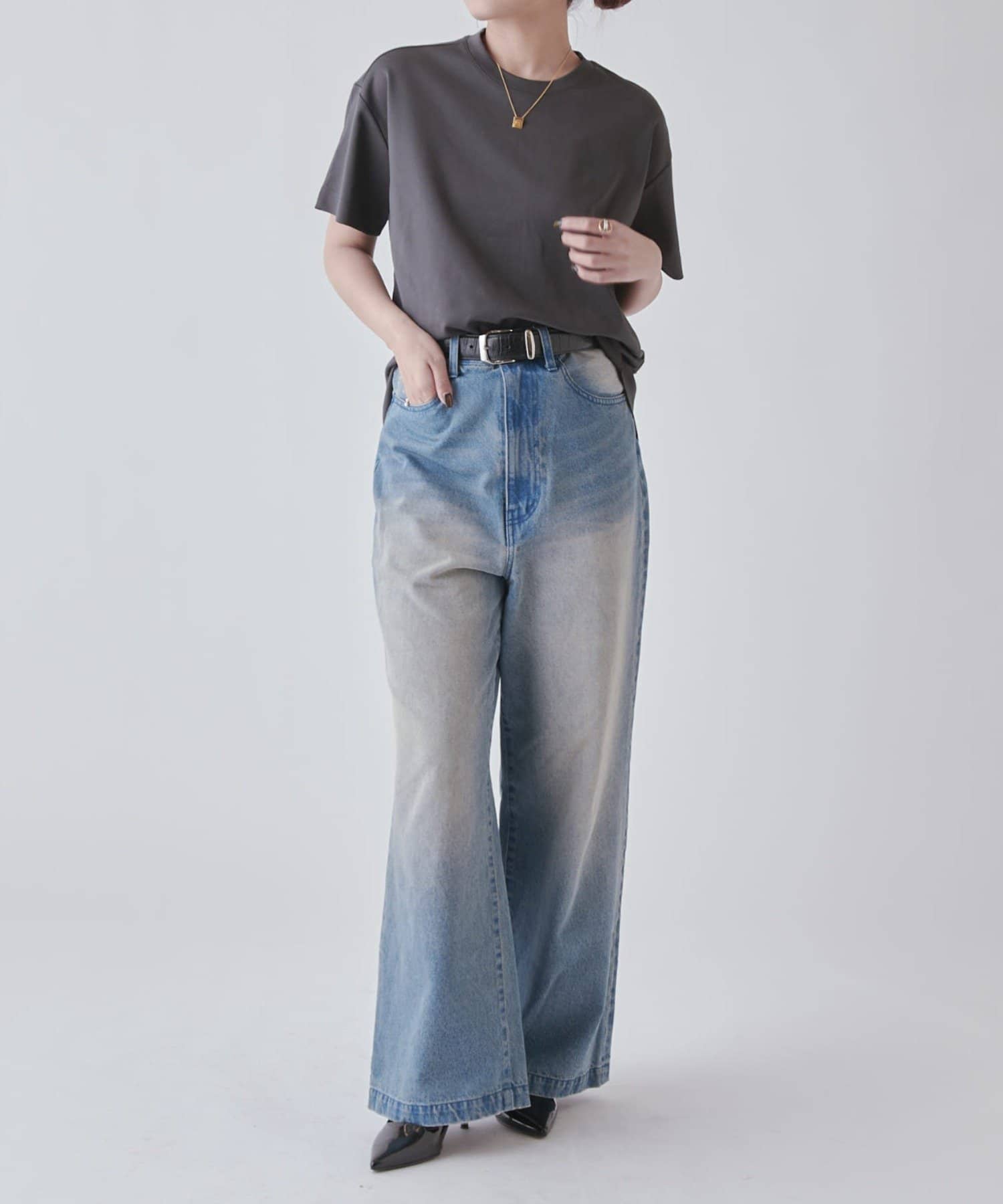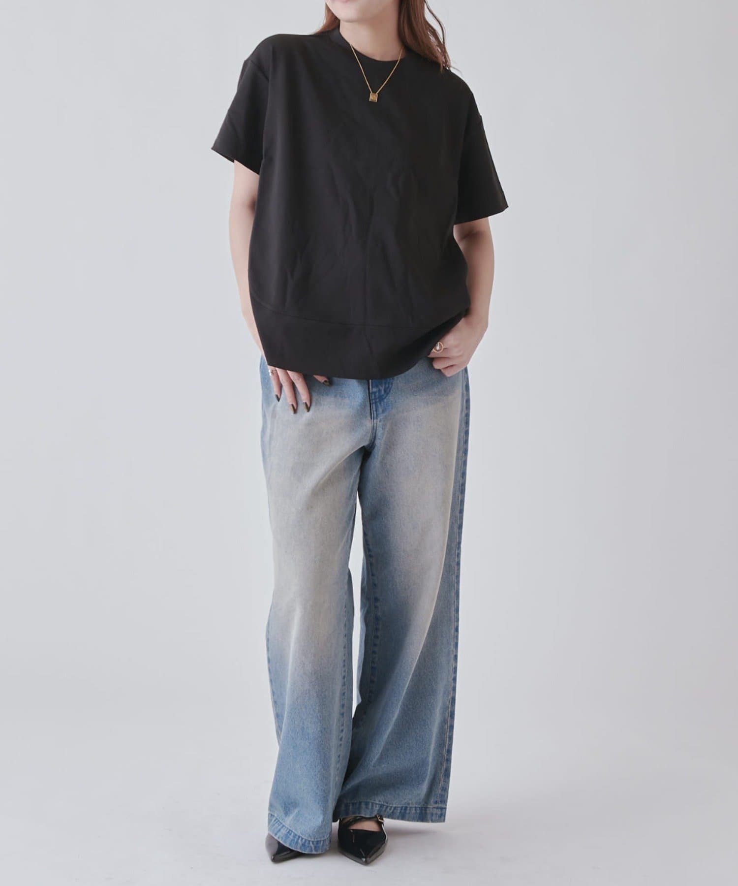 ベーシックながら一枚で着映えするアイテムなのでシンプルにデニムやワイドパンツと合わせたスタイルも◎落ち感のあるパンツや柄もののボトムスとも好相性です!