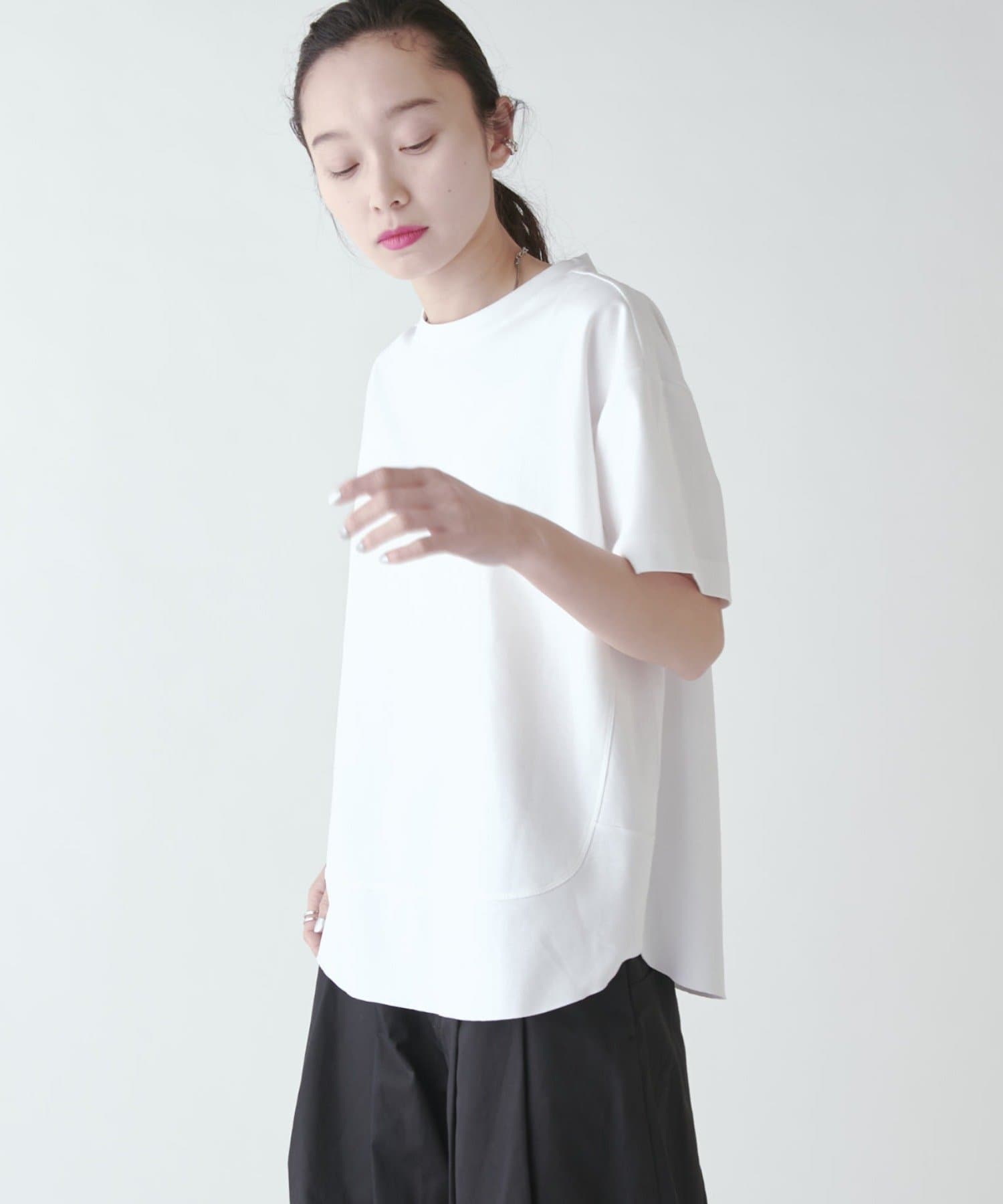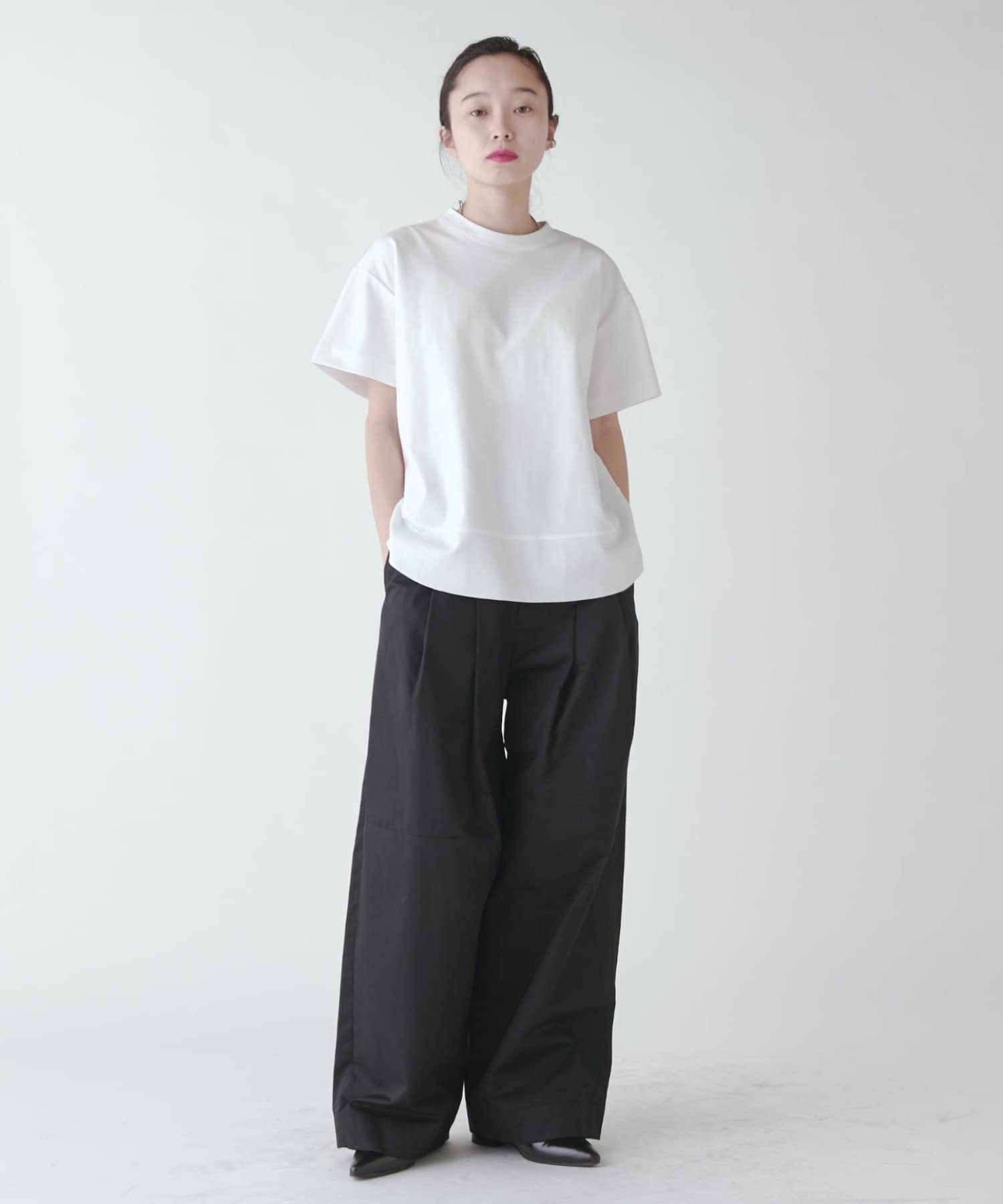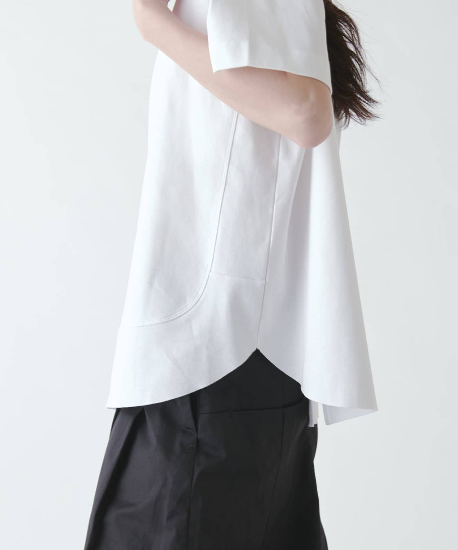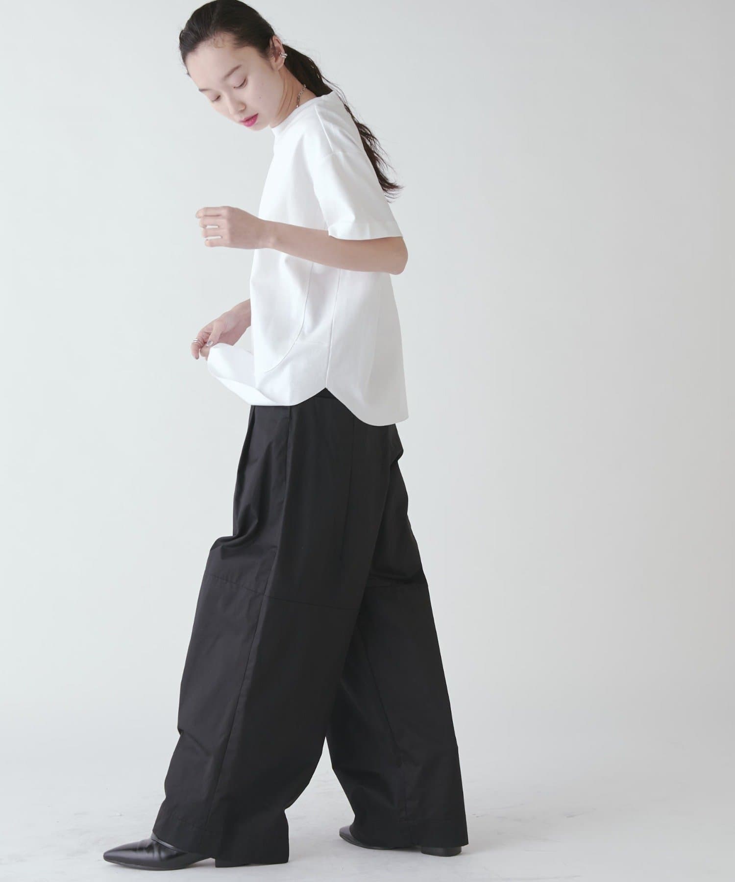シンプルに見えながら、ゆとりをもたせた身幅や脇から裾に施されたさりげない切り替えがポイントに。