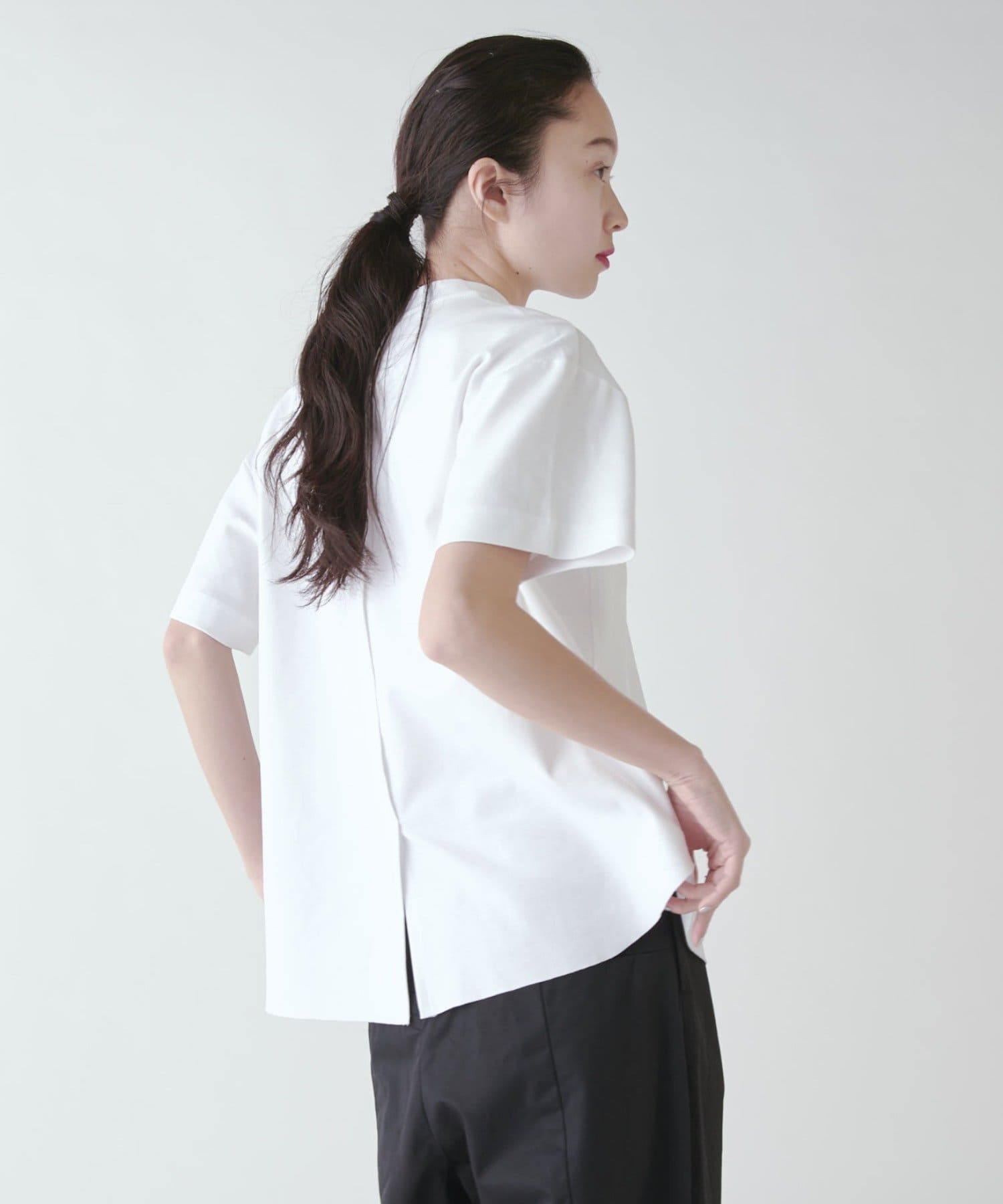 裾のヘムラインやバックスリット、背中の切替えデザインなどこだわりディテールが詰まった一枚。