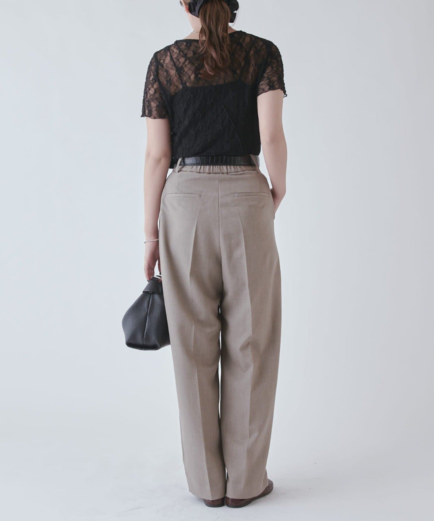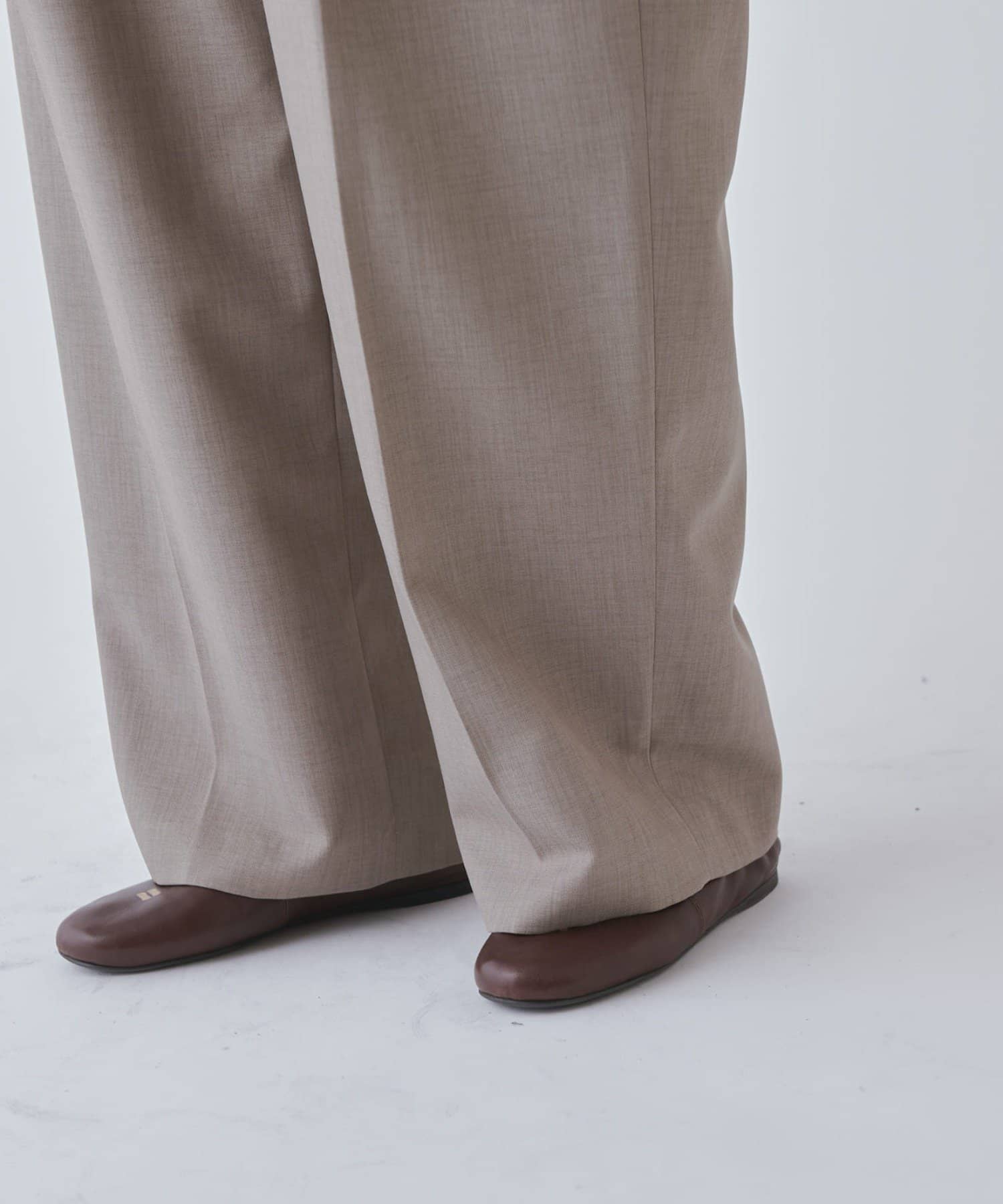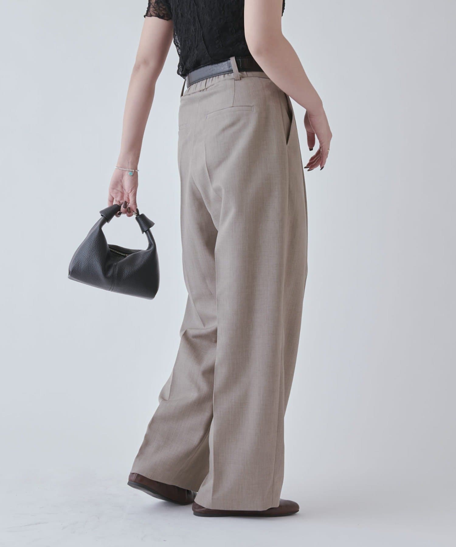 センタープレスがしっかり入っていて、ややカーブしている形のキレイなスラックス。