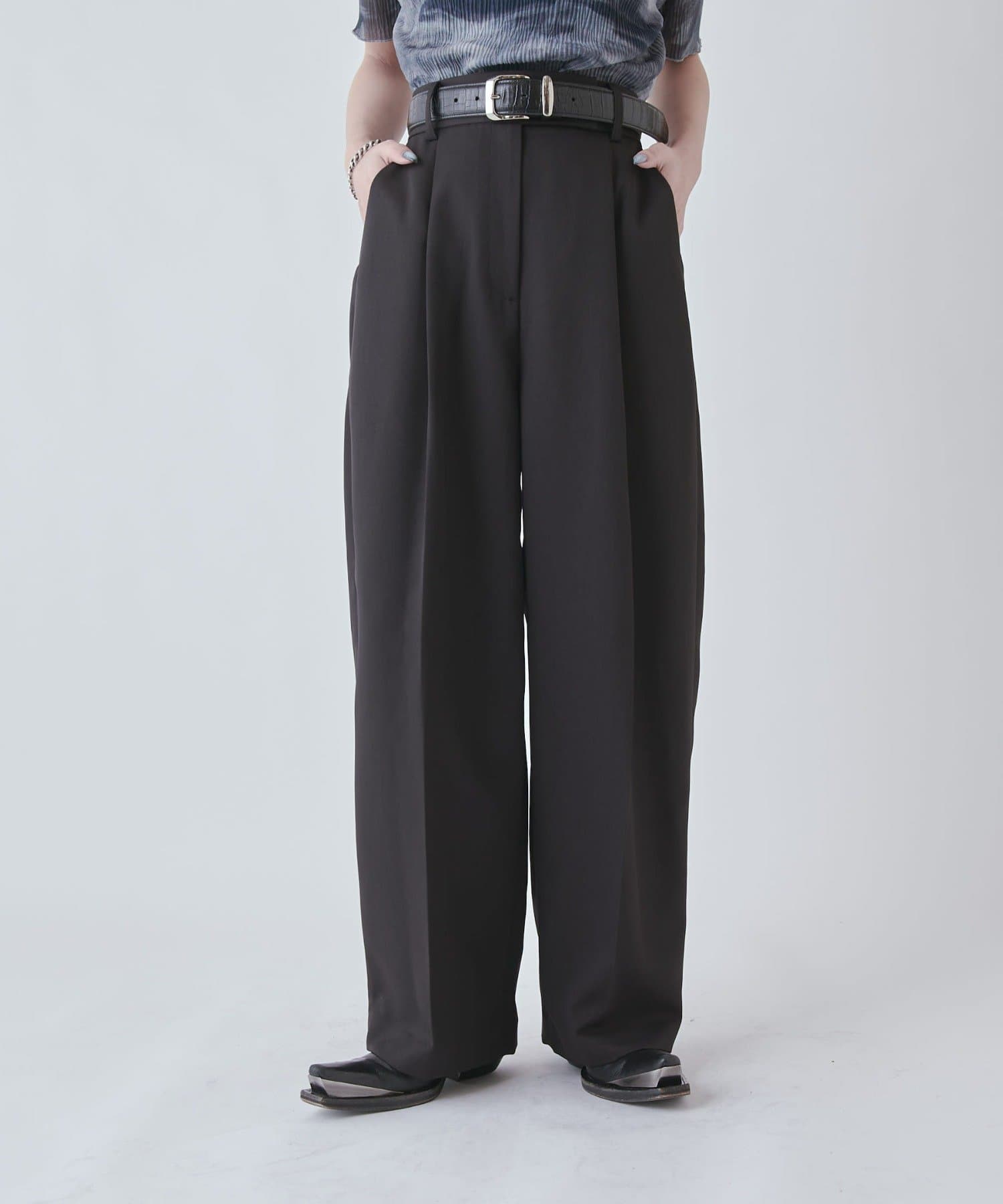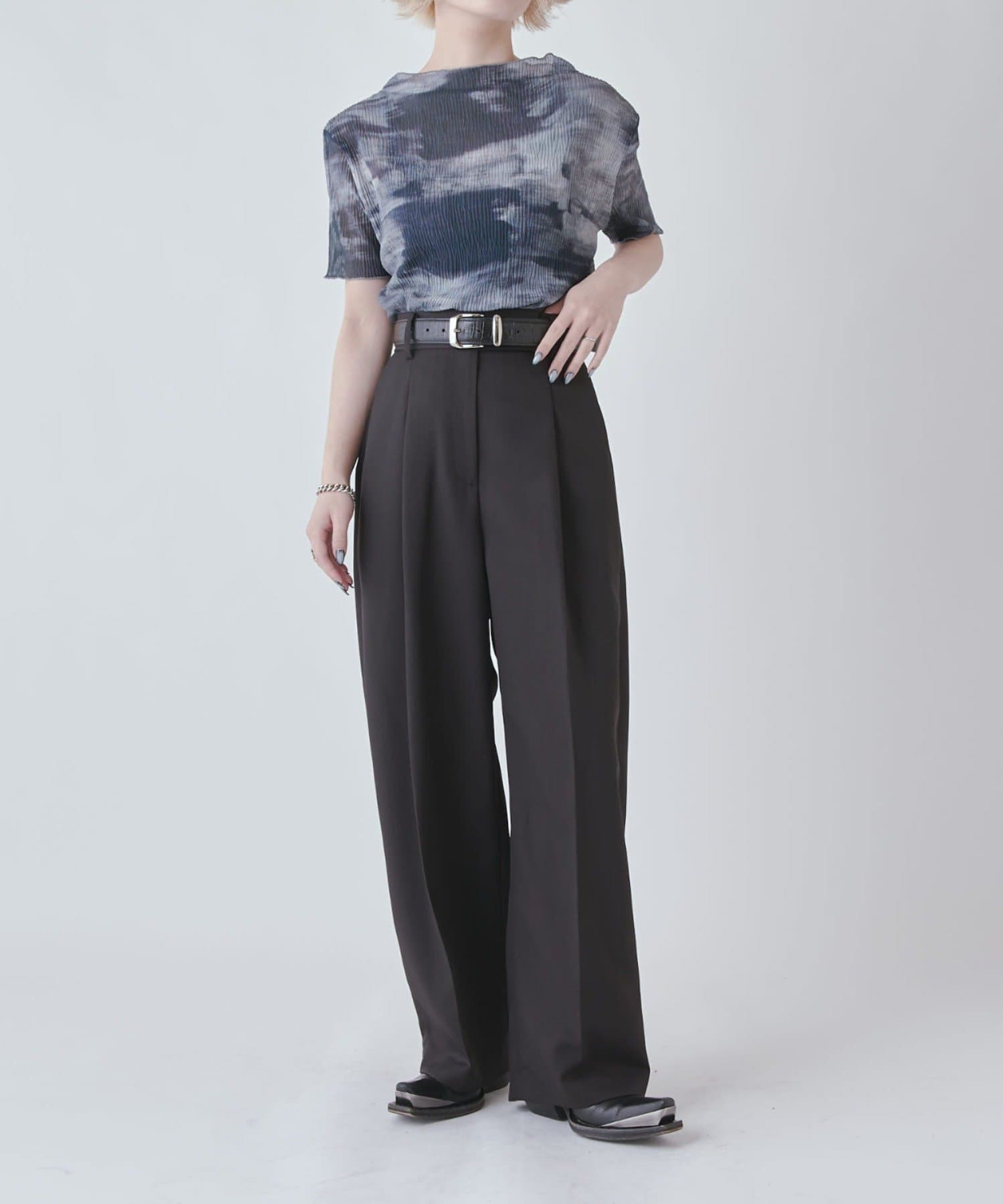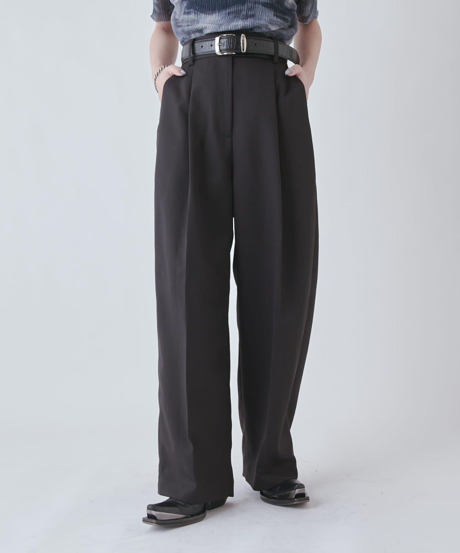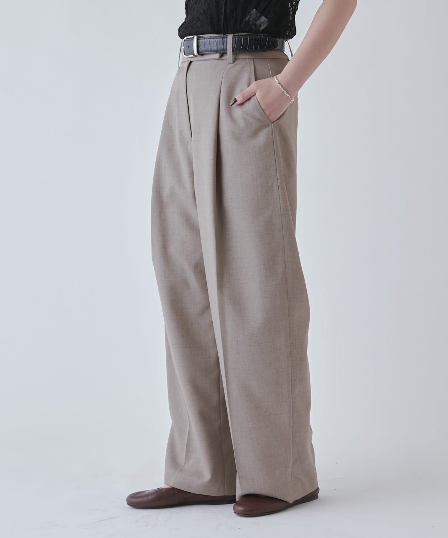 センタープレスがしっかり入っていて、ややカーブしている形のキレイなスラックス。