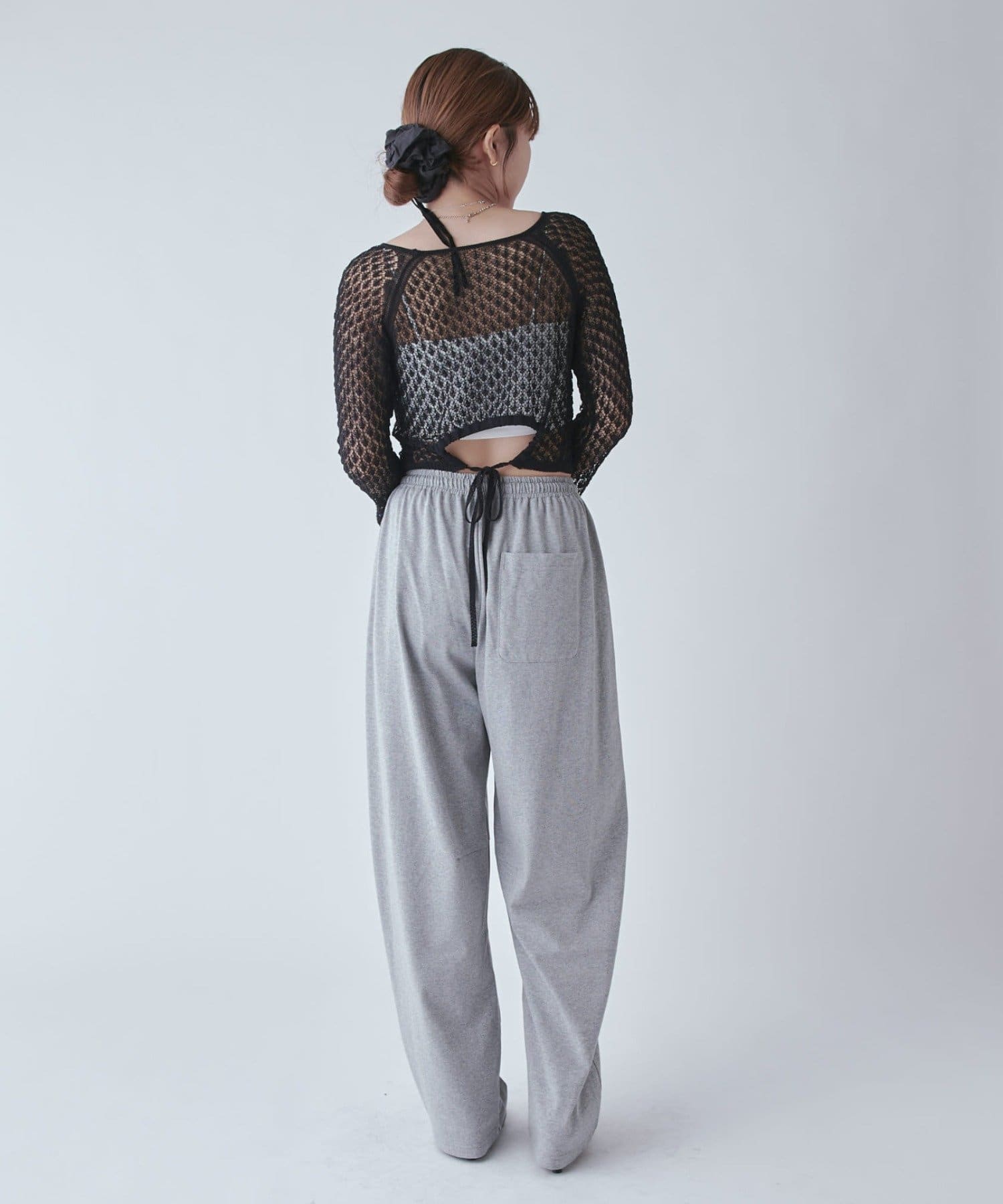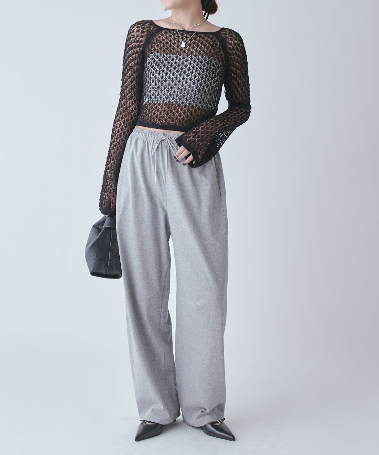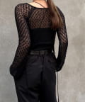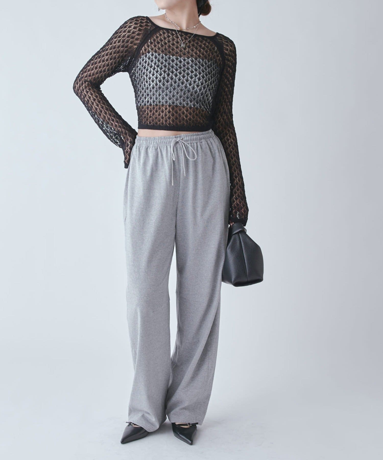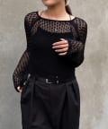伸縮性ある素材で、透かし編みデザインなので涼しく着やすい素材感。