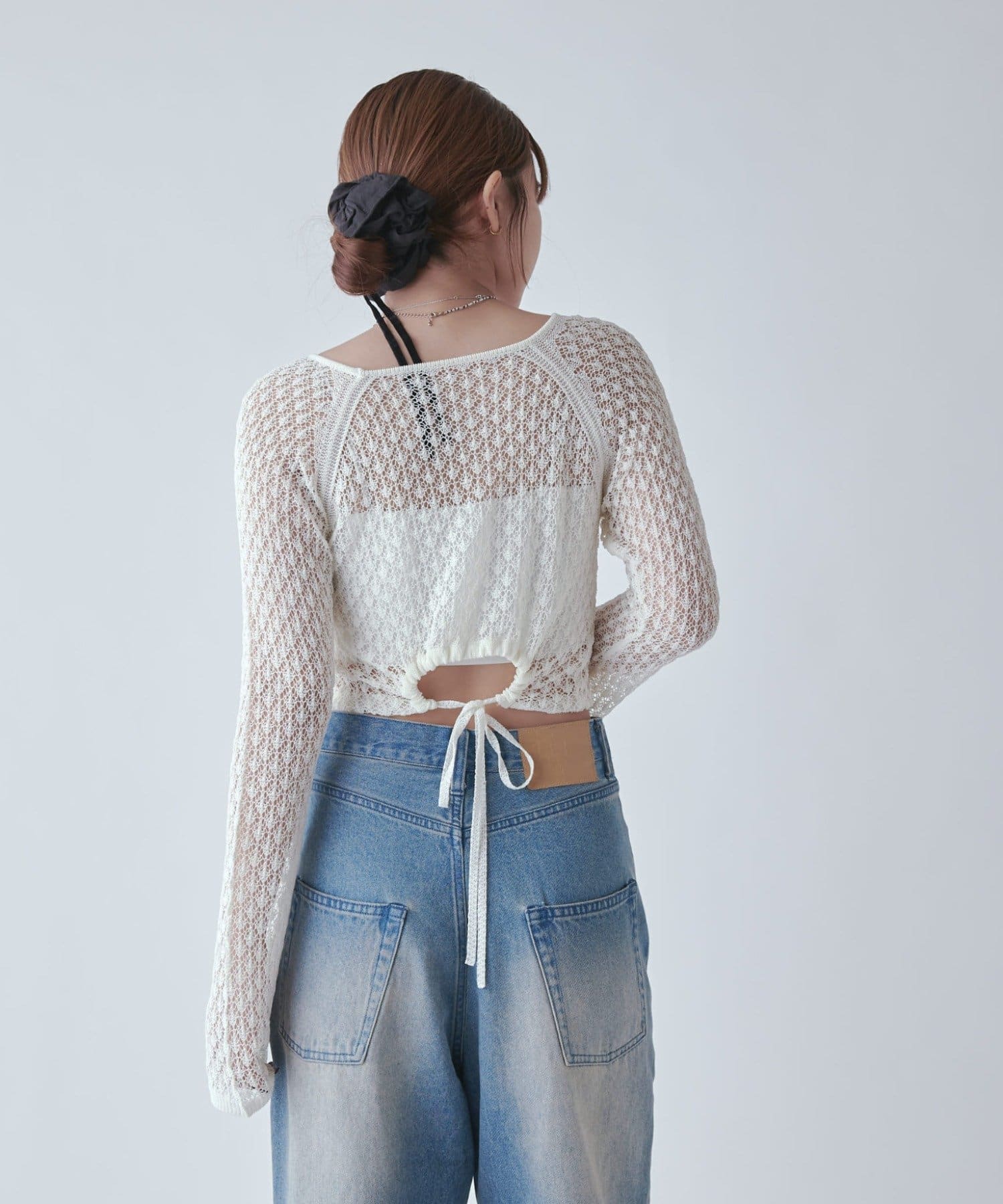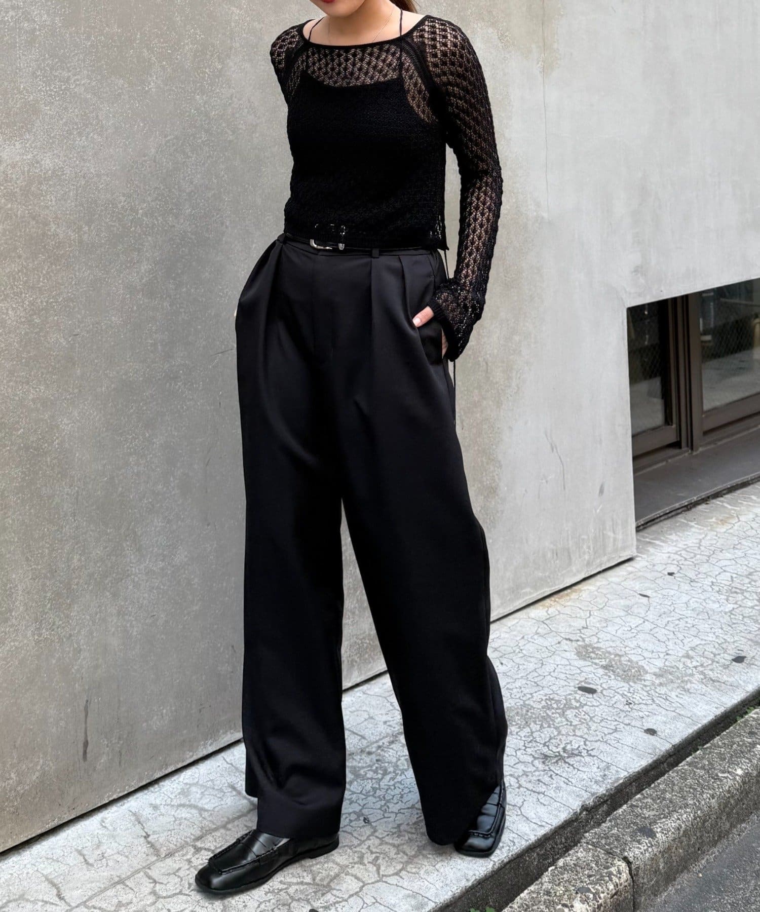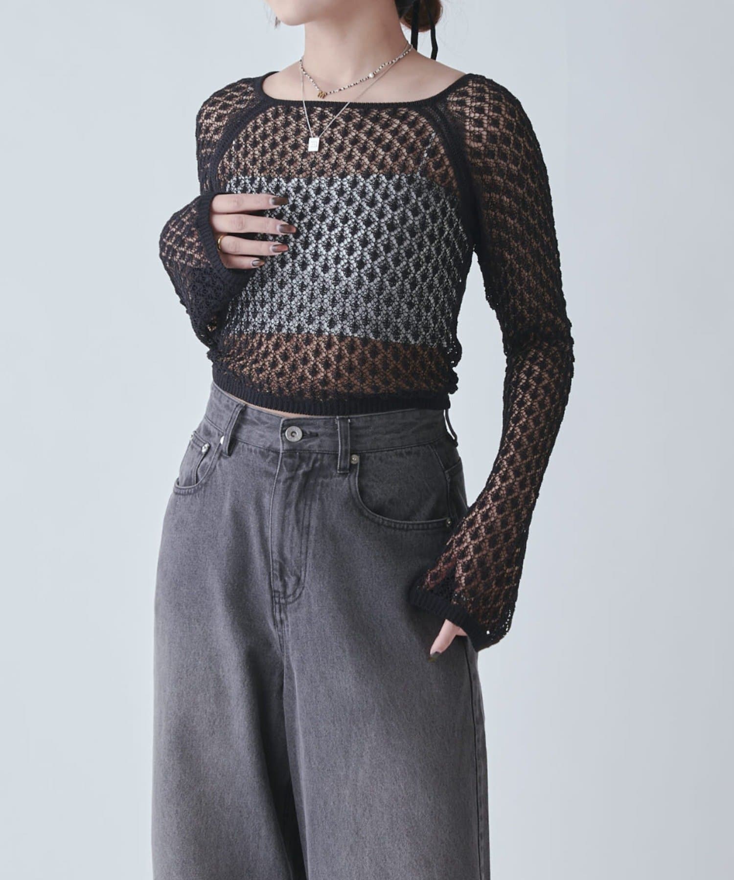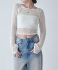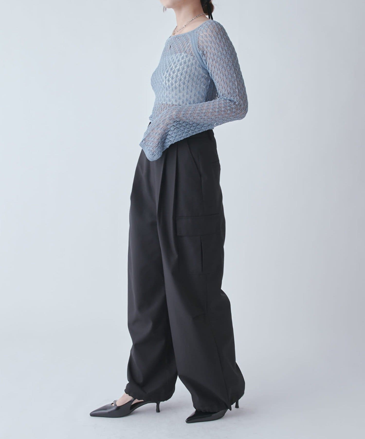 透かし編みデザインが女性らしく、こなれ感を出してくれる一枚。