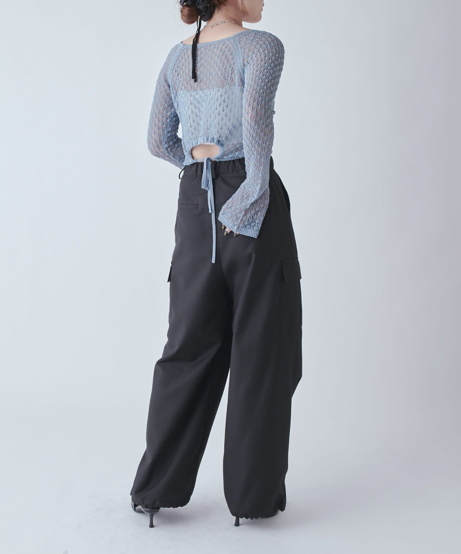 後ろ部分には、ドローコードがついていて大人っぽく肌見せが可能。