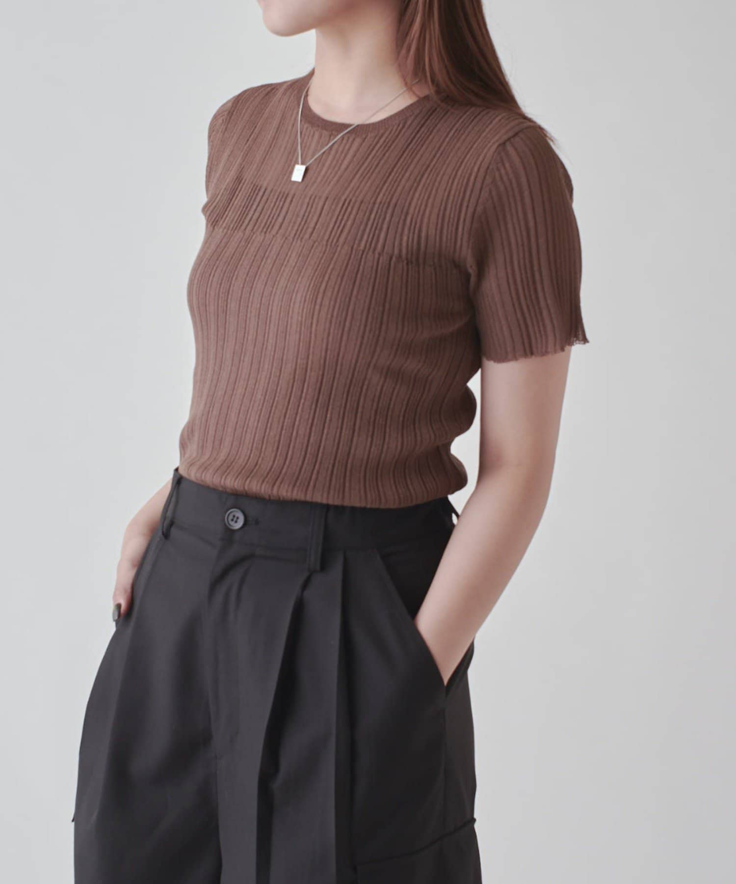 リブデザインが入っているので、シンプルすぎず一枚で決まります。もちろん重ね着でアイテムとしても◎