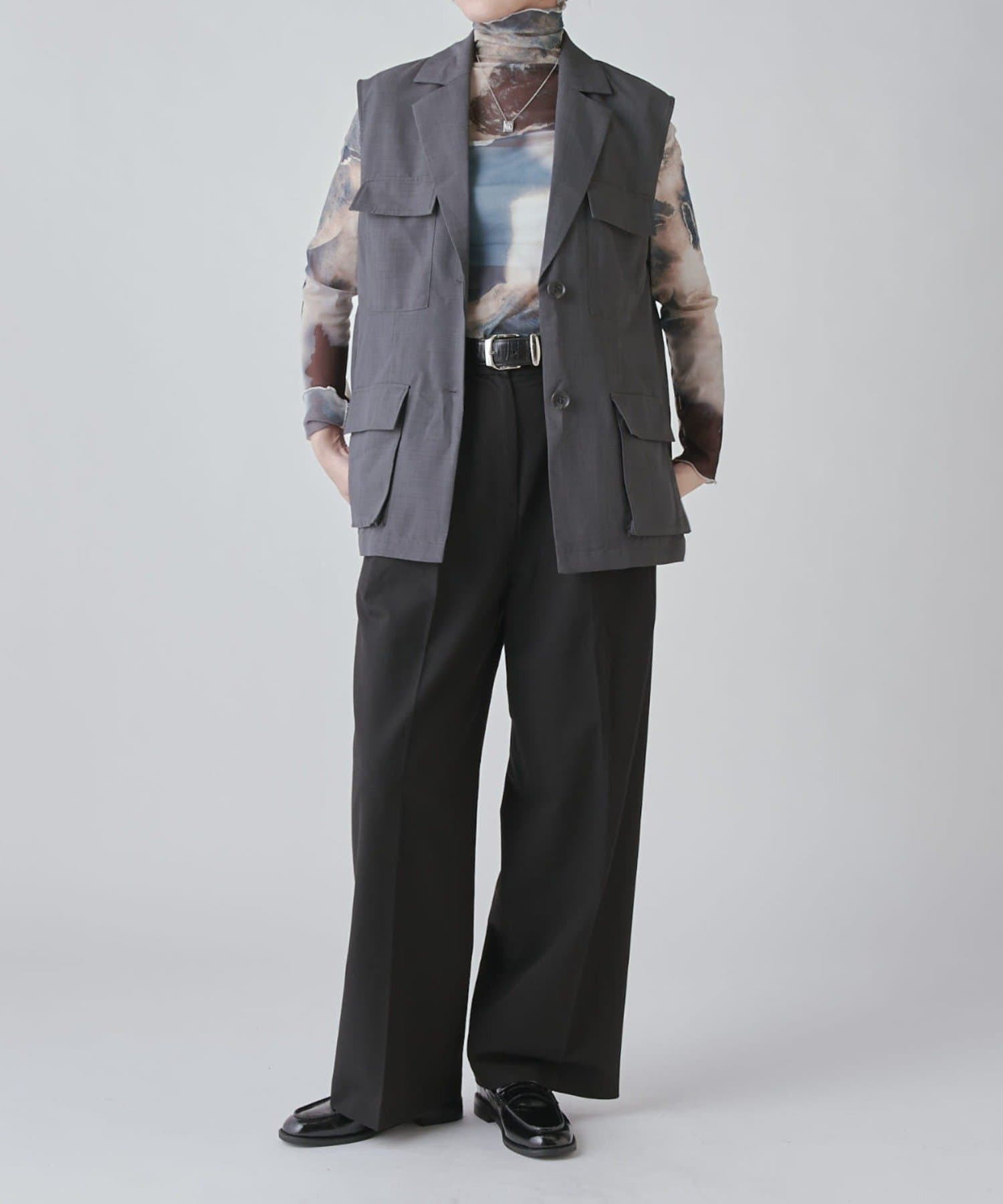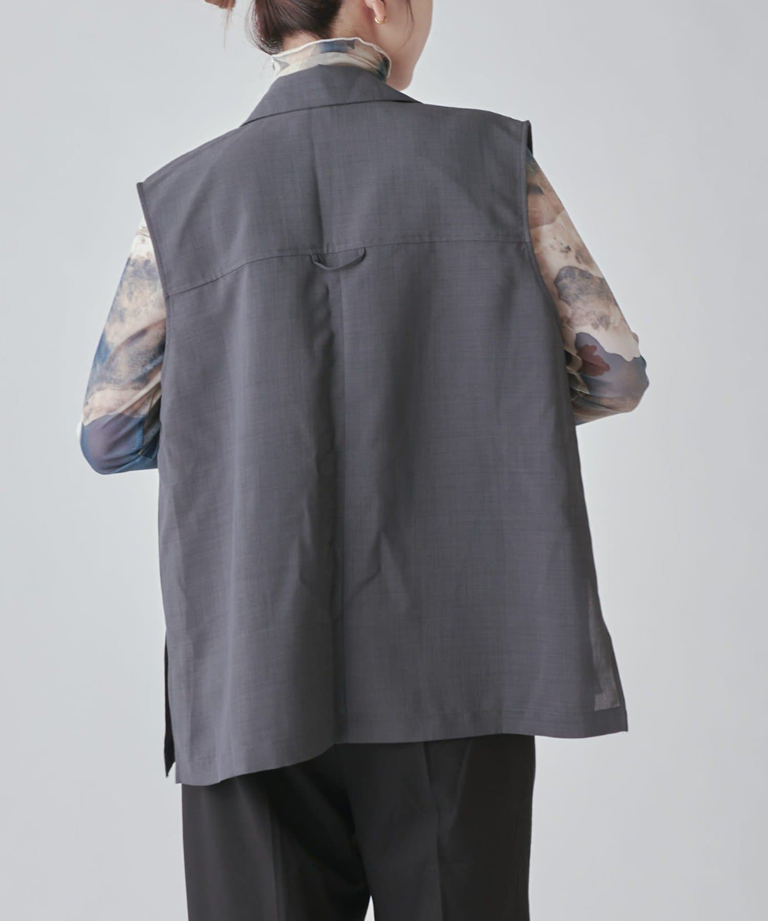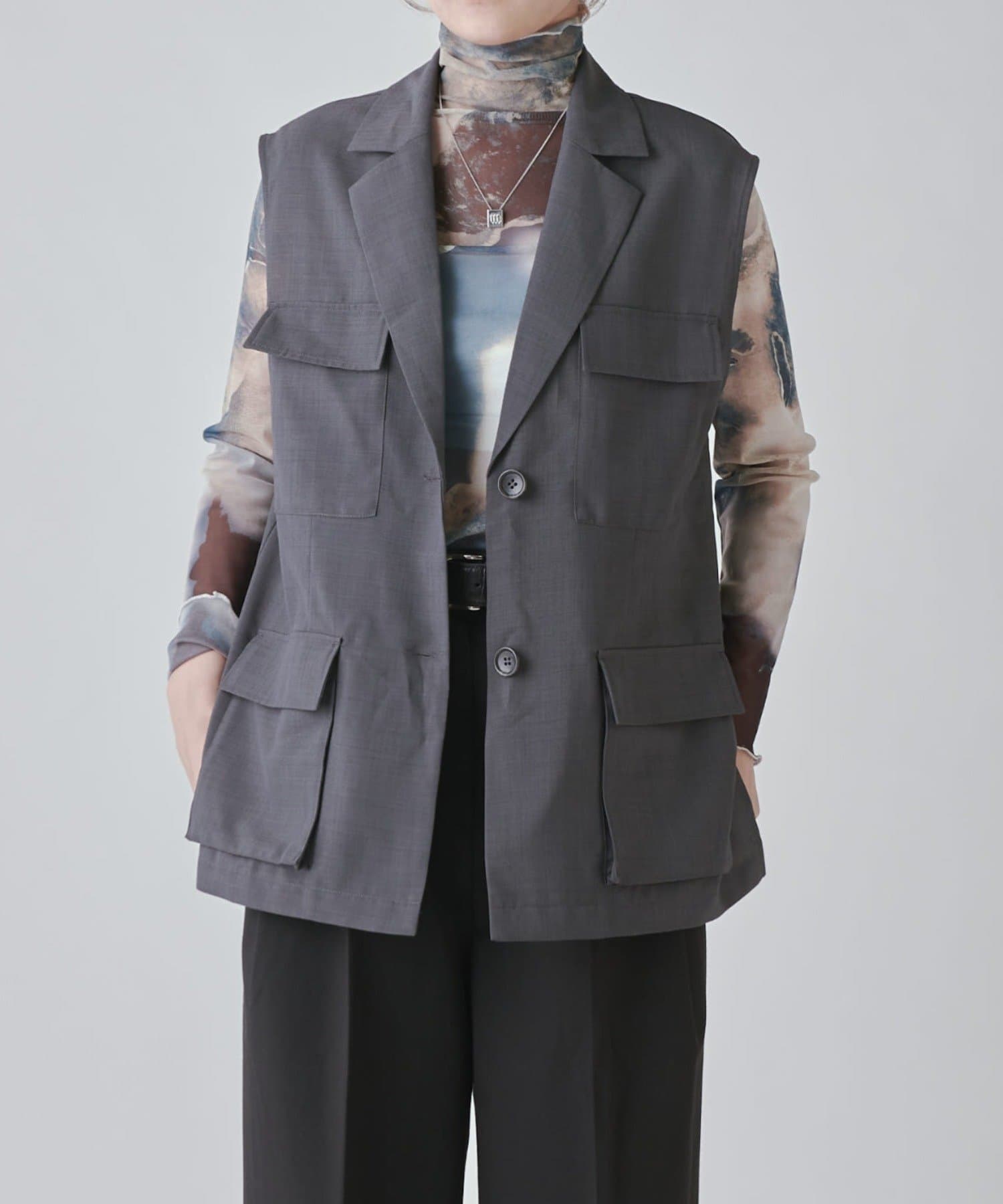 ダブルポケットが特徴的で、薄手で透け感があるので夏も重ね着を楽しめるアイテム。