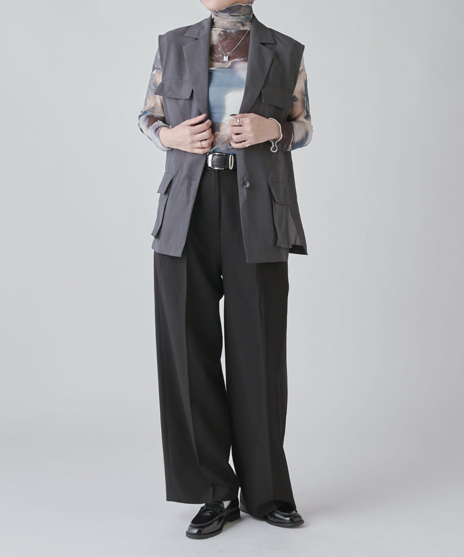 春夏おすすめなのは、シアートップスやタンクトップにさらっと羽織るのが今年っぽい。