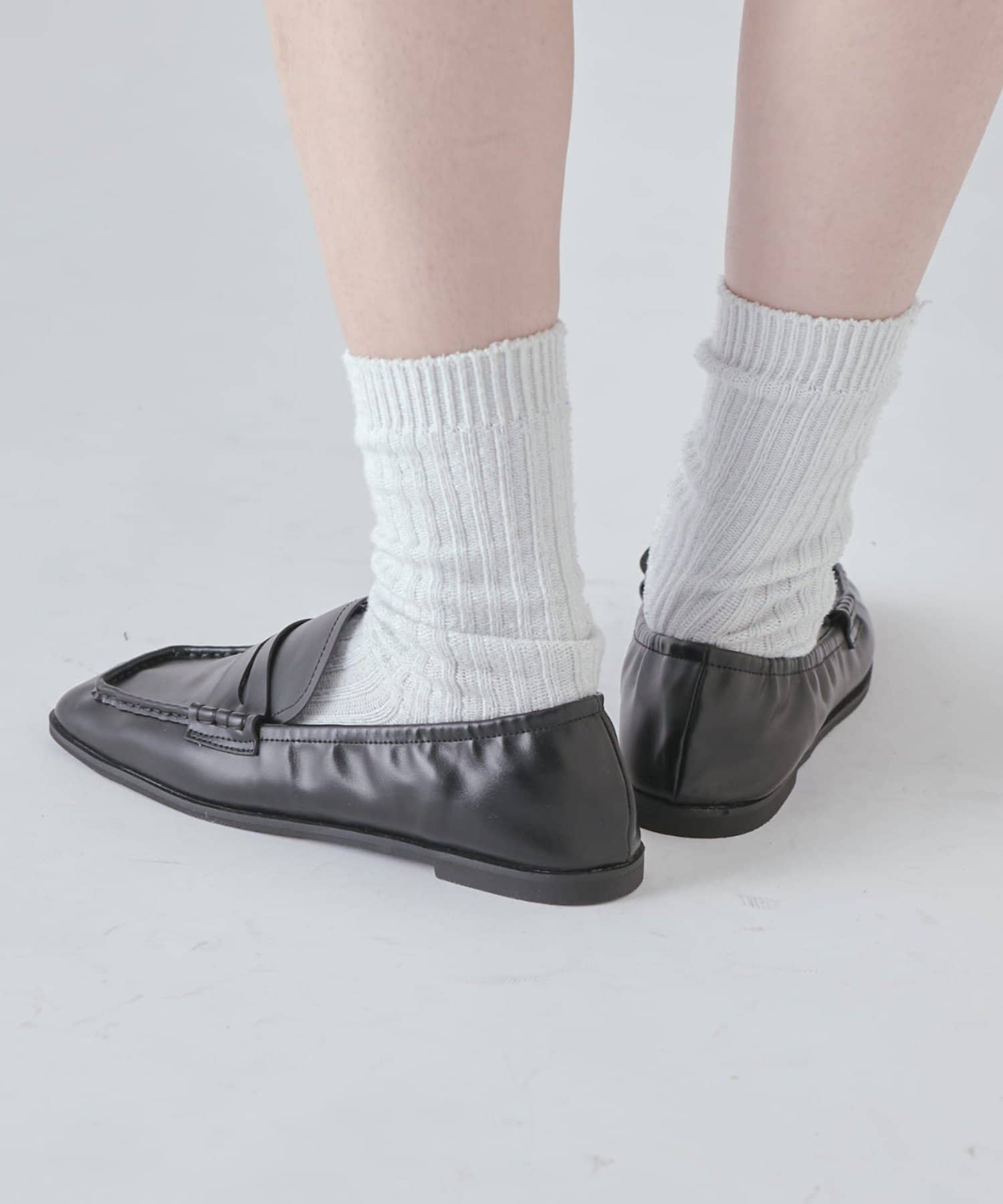 ローファーですが、ミュールのように履いてもラフなスタイリングになり◎