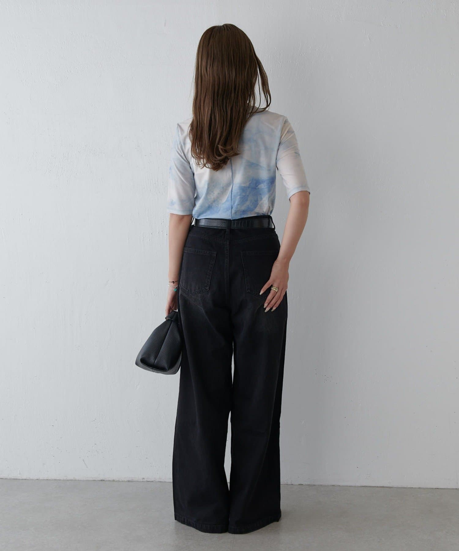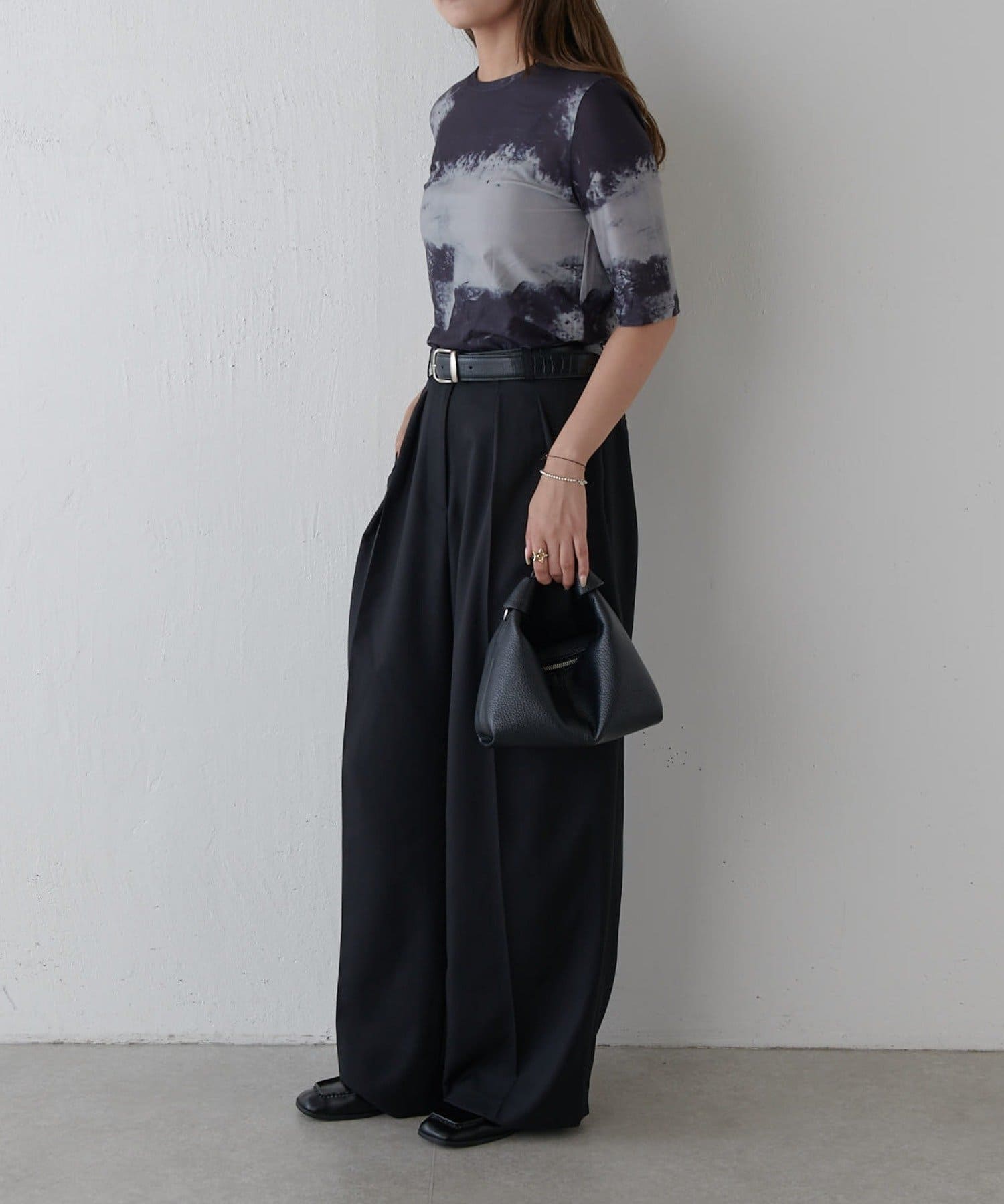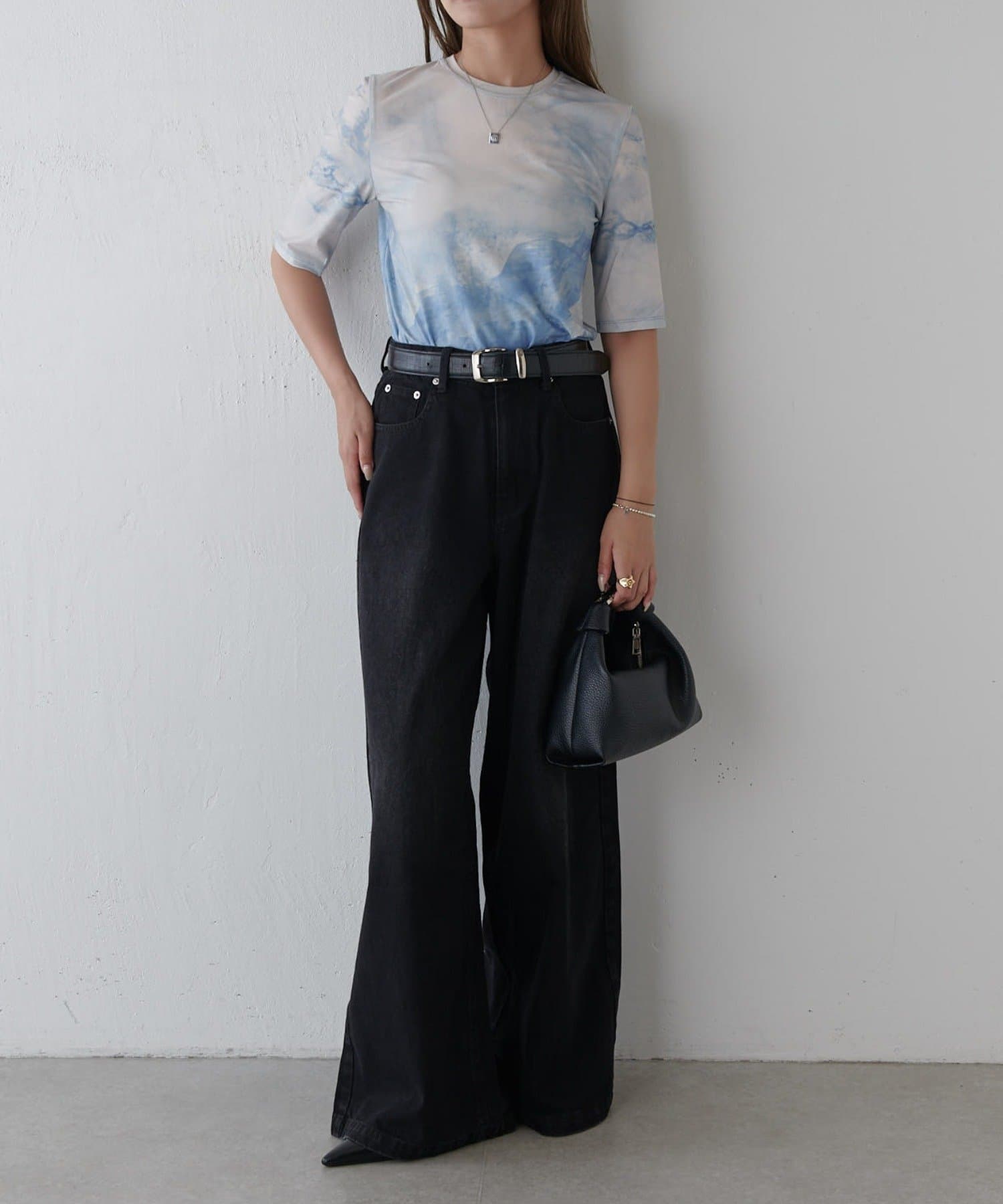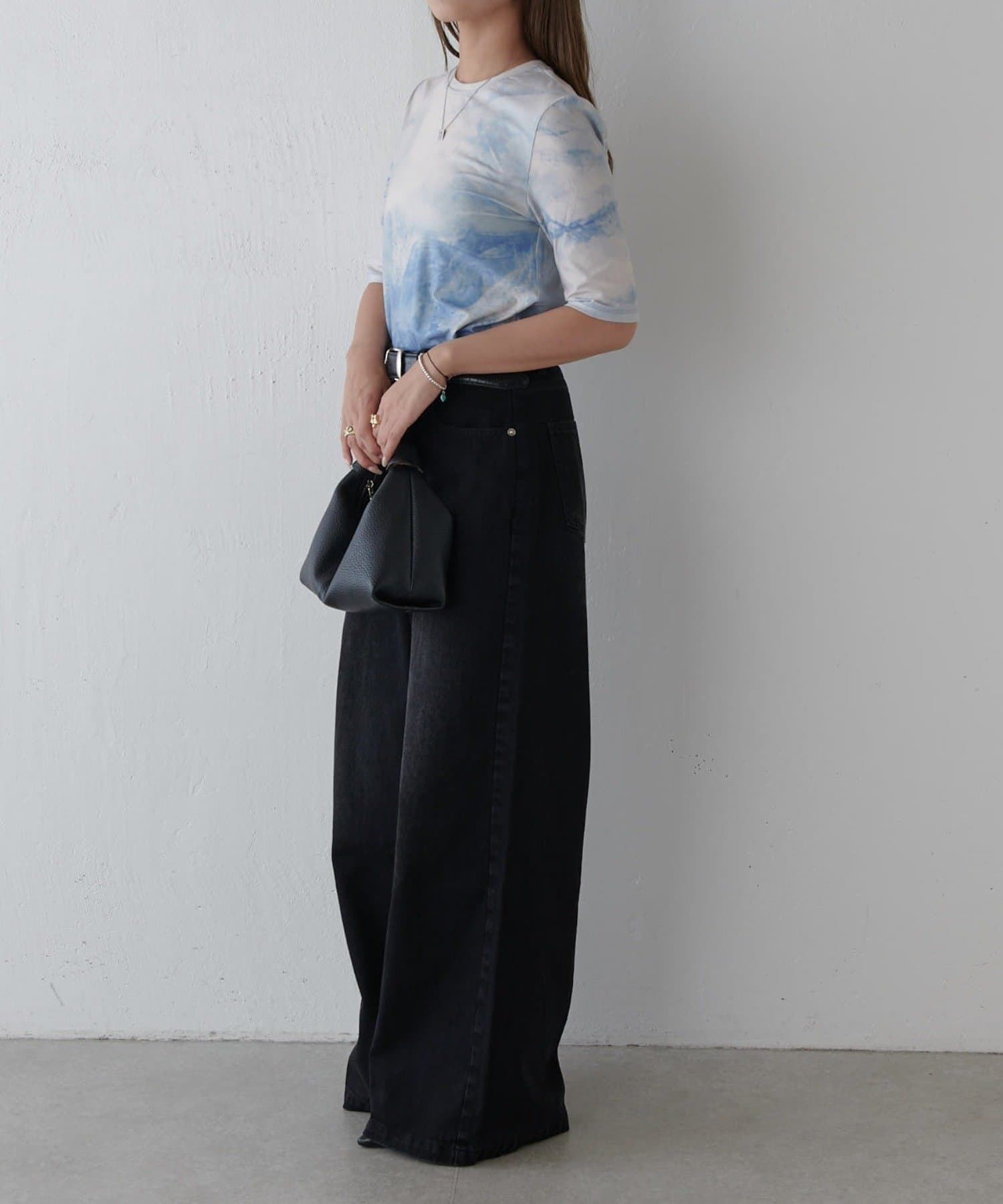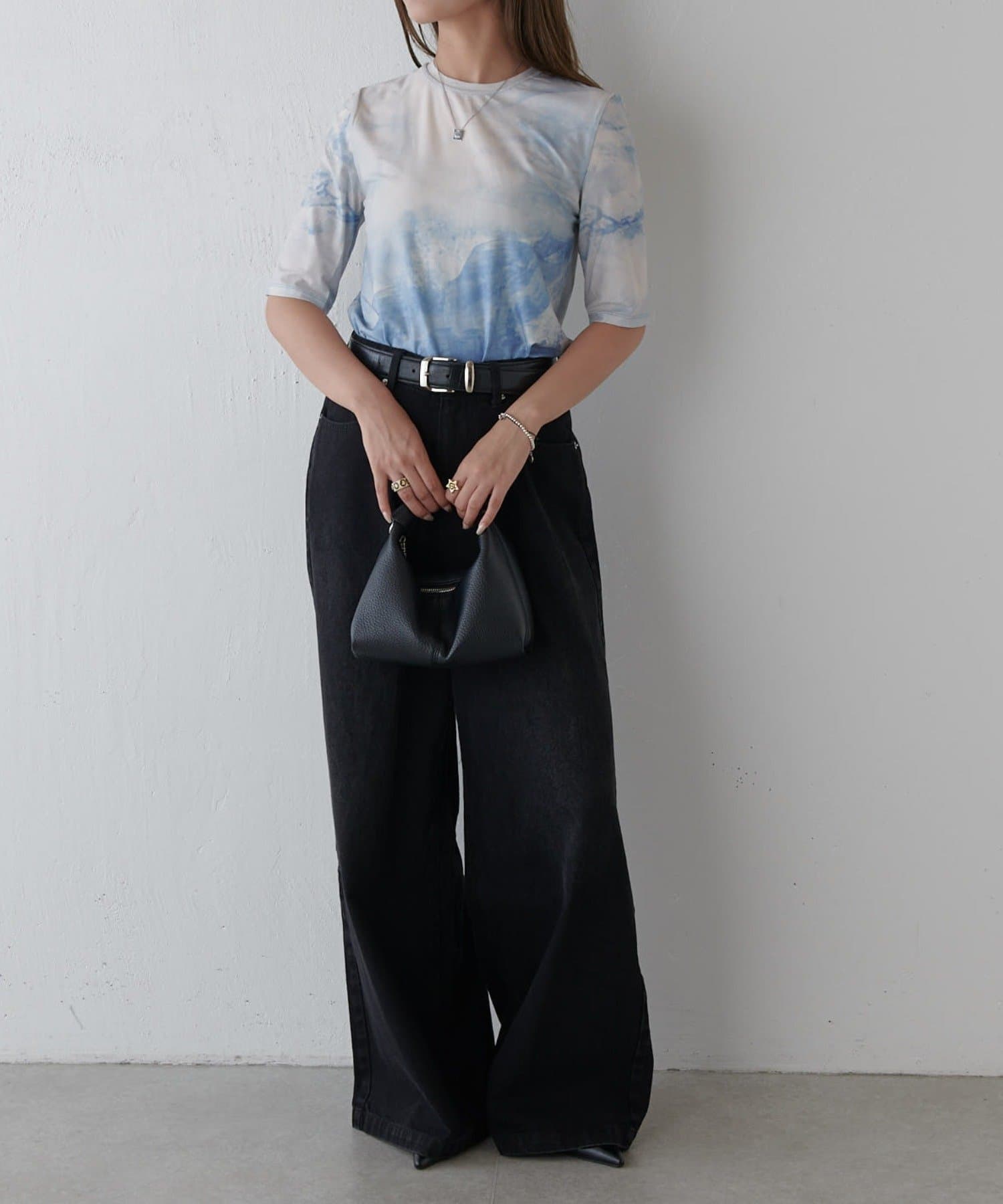 バランスがとりやすいサイズ感なので、ワイドデニムとミュールで大人カジュアルなスタイリングも今年っぽいスタイルに。