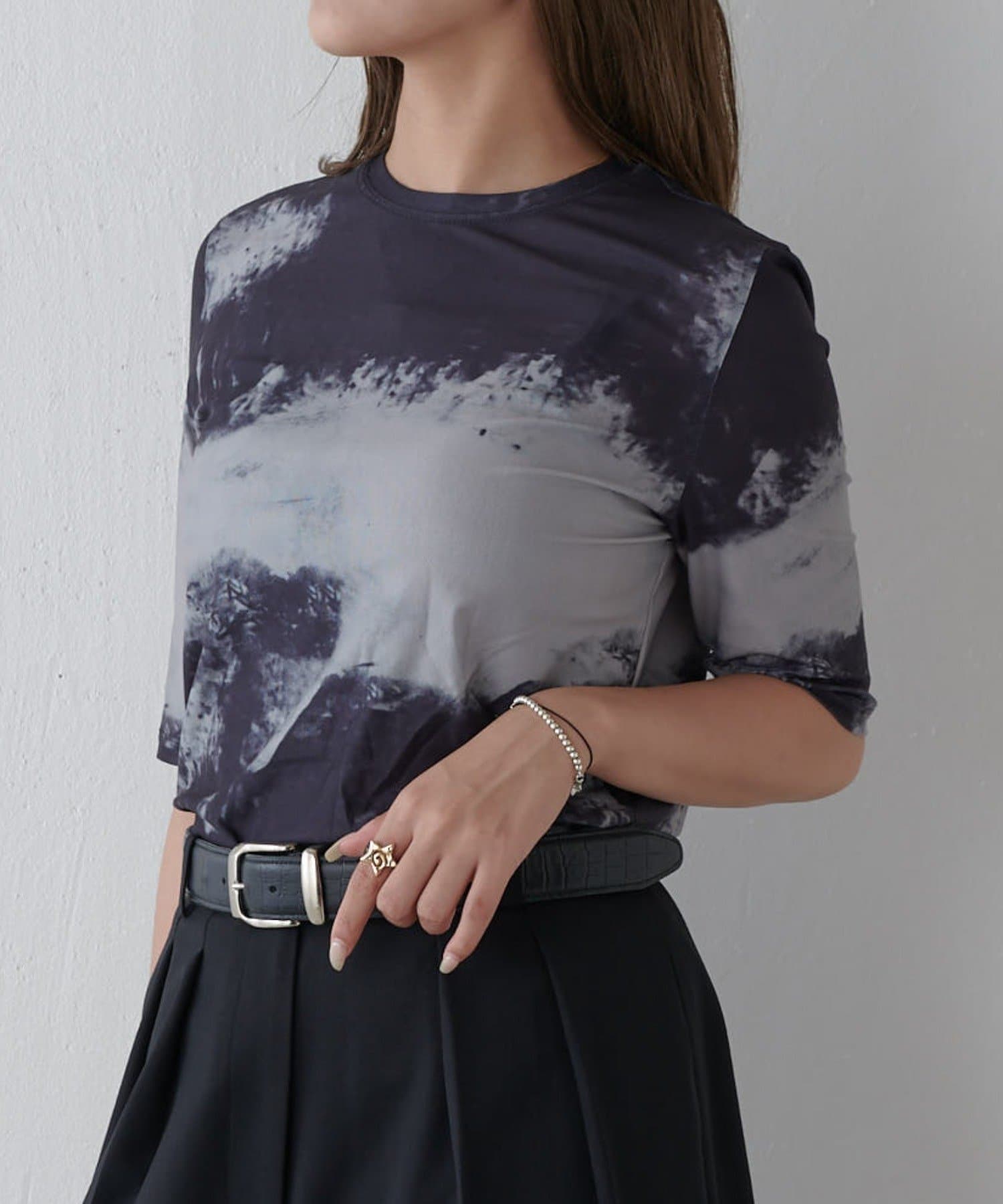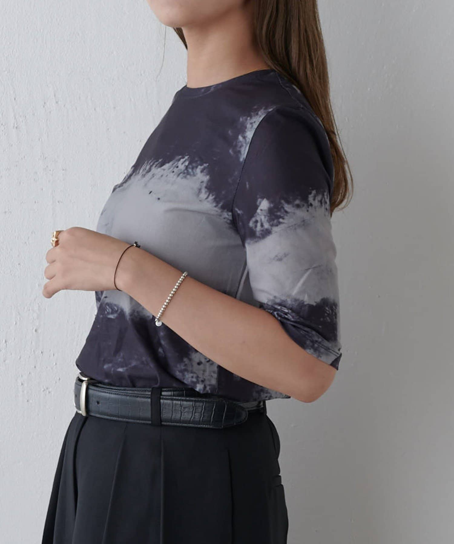 少しコンパクト目でボトムス問わず着れるので、この夏着回しが効くトップスとなっております。